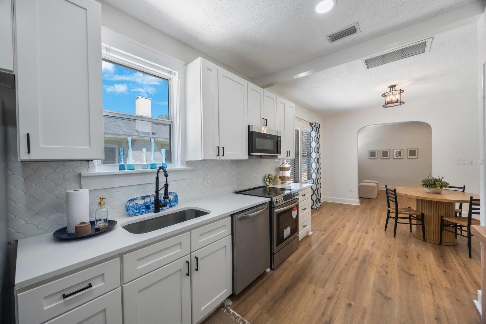 Bem-vindo a este delicioso bangalô de 2 quartos e 1 banheiro no bairro procurado de Magnolia Heights. Com sua planta baixa e tetos altos, esta casa oferece uma sensação arejada e aberta que convida o conforto e o relaxamento. Ao entrar, você será recebido pelas arcos circulares deslumbrantes da casa que adicionam um charme único e atemporal. A espaçosa área de estar é perfeita para a vida cotidiana e divertido, conectando perfeitamente a aconchegante sala de estar à cozinha brilhante e alegre. Apresentando bancadas elegantes de quartzo e armários de estilo shaker, completos com muito espaço para preparação para refeições e uma atmosfera cheia de luz que faz da cozinha uma alegria. Além dos dois quartos, a casa inclui um escritório versátil, sala de leitura ou potencial terceiro quarto - ideal para trabalho remoto, estudo silencioso ou uma família em crescimento. A grande lavanderia oferece uma conveniência adicional, com amplo espaço para armazenamento e todas as suas necessidades domésticas. Saia para o amplo quintal, onde você encontrará um enorme pátio - perfeito para refeições ao ar livre, jardinagem ou simplesmente relaxando em seu oásis particular. O grande quintal oferece inúmeras possibilidades de personalização, esteja você procurando criar um jardim, área de recreação, piscina dos seus sonhos ou apenas aproveitar o ar livre. Esta casa combina caráter, conforto e está convenientemente localizado para tudo o que St. Pete tem a oferecer! Atualizações adicionais incluem telhado (2025), tanque de água quente (2024) e muito mais! Não perca esse bangalô encantador - escasco uma exibição hoje e faça com que seja seu!