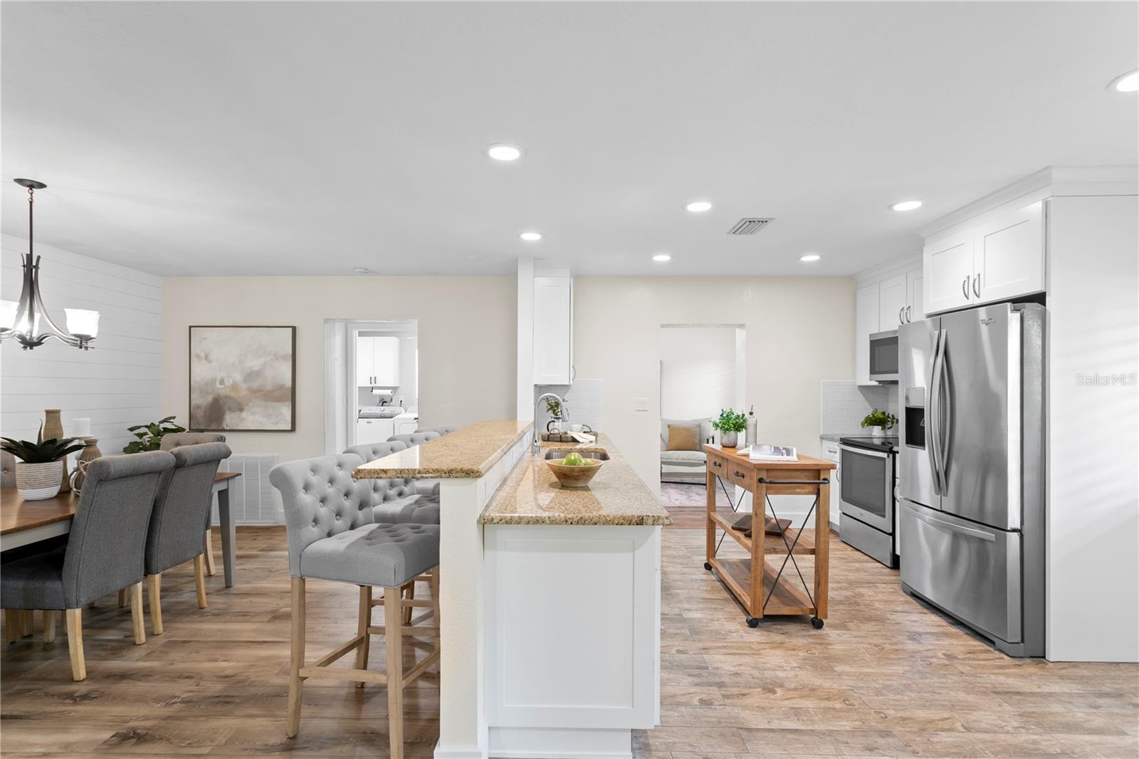 Espaçoso, atualizado e cheio de flexibilidade, esta cama de 3 camas, 2,5 banheiros, no nordeste de St. Pete, oferece mais de 1.900 pés quadrados de espaço para estar, mais uma sala de 400 pés quadrados na Flórida (não incluída em pés quadrados aquecidos). Uma planta baixa com dois espaços flexíveis versáteis: uma grande sala da Flórida na área de estar e uma sala de bônus perto da cozinha (que poderia facilmente se converter em um quarto quarto) e lavanderia interna. A cozinha aberta possui bancadas em granito, utensílios de aço inoxidável e assentos de altura de barra que fluem para a área de jantar e espaço de bônus. A suíte primária é um verdadeiro retiro com um closet com embutidos personalizados e um banho de suíte lindamente atualizado com vaidade dupla e chuveiro fechado de vidro. Dois quartos de hóspedes compartilham um banheiro completo reformado e um meio banheiro separado da sala é perfeito para os hóspedes. Outros destaques incluem tetos abobadados, persianas de plantações, novos pisos de vinil de luxo, uma garagem coberta de 2 carros, calçada circular e um quintal totalmente cercado com área de fogueira, espaço verde e um grande galpão de armazenamento. Atualizações principais do sistema: telhado (2011), hvac (2021), aquecedor de água (2024), janelas/portas (2021). Seguro de inundação apenas US $ 2.375/ano. Localizado a poucos minutos de Coffee Pot e Crisp Park, Publix, Trader Joe's, Whole Foods e Vibrant Downtown St. Pete. Um achado raro neste tamanho e preço!