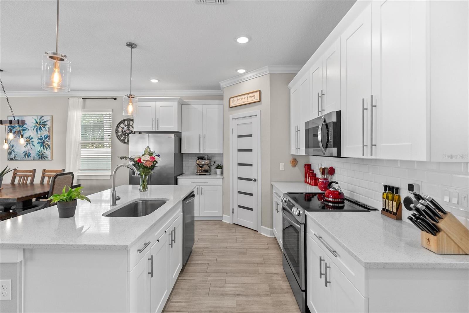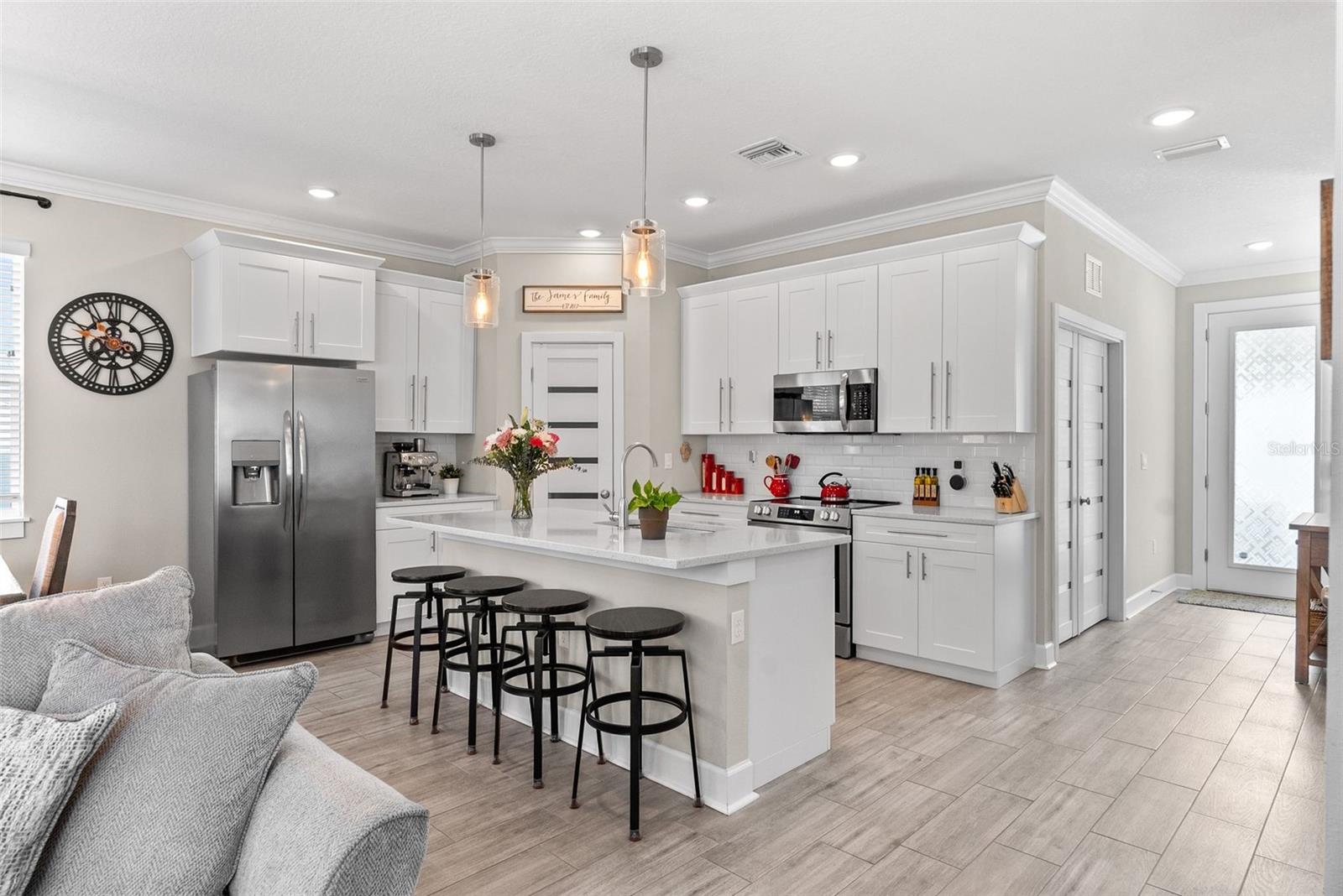 Vendedor oferecendo crédito de $ 15.000 para custos de fechamento do comprador! Construída em 2019, esta casa de 2 andares lindamente conservada está localizada em um terreno de esquina em uma zona NÃO INUNDANTE, sem taxas de HOA e vem equipada com venezianas contra furacões - oferecendo tranquilidade e proteção prática nos próximos anos. Ao chegar, você ficará satisfeito com o belo paisagismo e a atratividade do meio-fio. Passe pela porta da frente e você ficará instantaneamente impressionado com os acabamentos elegantes: piso de cerâmica de madeira falsa, sancas, tetos altos e um layout de conceito aberto que é ideal tanto para a vida diária quanto para entretenimento. A cozinha é realmente o coração da casa - com bancadas de quartzito, eletrodomésticos de aço inoxidável, armários com fechamento suave, uma ilha espaçosa, respingos de azulejos de metrô e um armário arrumado. É um design impecável que parece elegante e funcional. No andar de cima, a suíte principal é um verdadeiro retiro com proporções generosas, um grande guarda-roupa e um banheiro tipo spa com azulejos elegantes, chuveiro com box de vidro, pias duplas e WC separado. Os dois quartos adicionais estão escondidos em um charmoso banheiro Jack-and-Jill, com azulejos brilhantes, uma combinação de banheira/chuveiro e pias duplas. O armário de utilidades interno acomoda uma lavadora e secadora empilháveis. A varanda protegida oferece um local tranquilo para o chá da manhã ou o vinho da noite, com vista para o exuberante jardim com muito espaço para uma piscina e um galpão para armazenamento adicional. O quintal tem um belo paisagismo com palmeiras e bordos e é mantido sem esforço por um sistema de irrigação completo. Esta casa perfeitamente posicionada, você desfrutará de acesso rápido às vibrantes lojas, restaurantes e orla marítima do centro de St. Pete, a poucos minutos das praias do Golfo e a um acesso direto ao aeroporto de Tampa e TPA pela I-275. Além disso, Whole Foods, Trader Joe’s e muitos cafés locais estão logo ali, tornando a vida cotidiana conveniente e agradável. Agende sua visualização privada hoje mesmo!