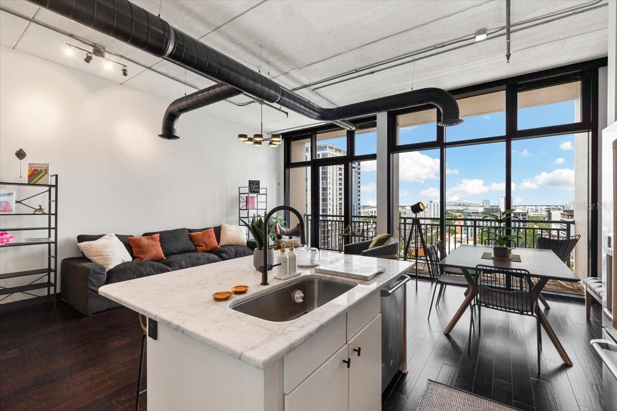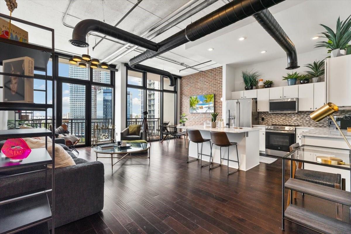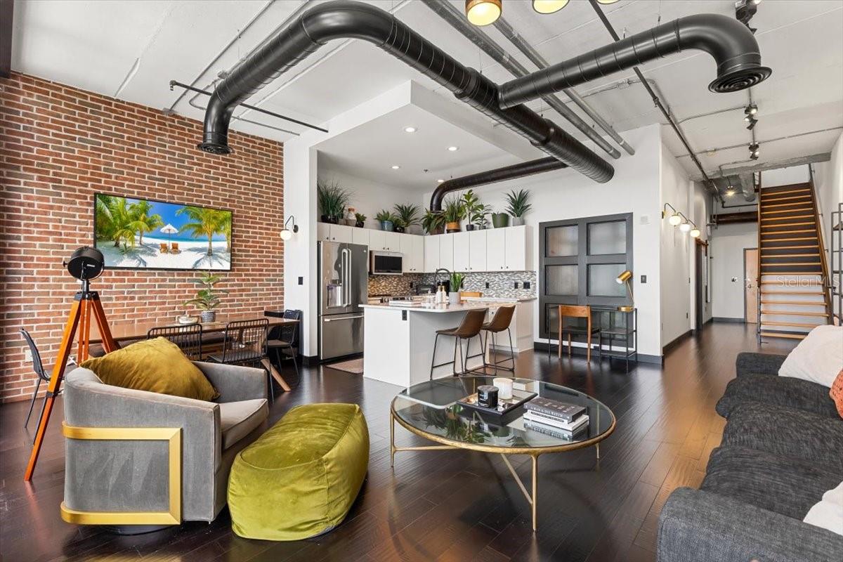 Incrível loft de ponta de duas andares. Enorme terraço de 22x14. Vista da cidade incrível e pôr do sol fabuloso! Os Lofts estão 5 andares acima de uma garagem de 4 andares. Sua unidade vem com 2 vagas cobertas de estacionamento na garagem. As portas deslizantes que levam ao quarto 1 foram substituídas por uma parede sólida para obter mais privacidade. Há uma pilha W&D adjacente ao banho principal. O quarto no andar de cima oferece cômoda e peito no espaço original do armário e está aberto para a sala. Esta sala pode ser usada como um segundo espaço, escritório ou quarto de hóspedes, pois há um banho completo nesse nível. O nível do solo do McNulty oferece um centro de fitness, sala de reuniões, área de TV e mesas para festas ou reuniões informais. Desfrute do centro da cidade que vive da melhor maneira possível. Passável para todas as atividades do centro e adjacente a restaurantes, bares, galerias e museus! Oportunidade rara de possuir em McNulty! Não perca este!