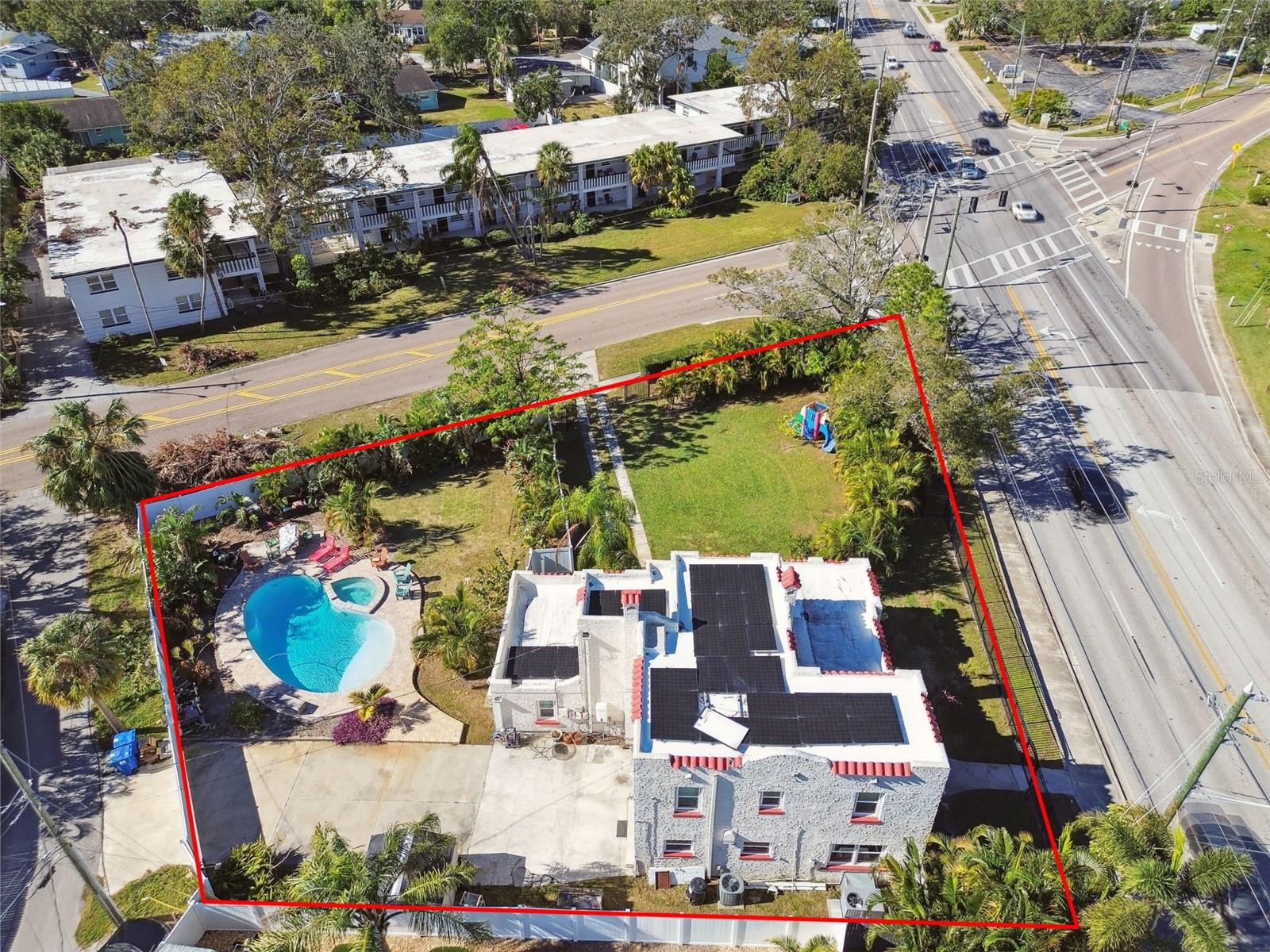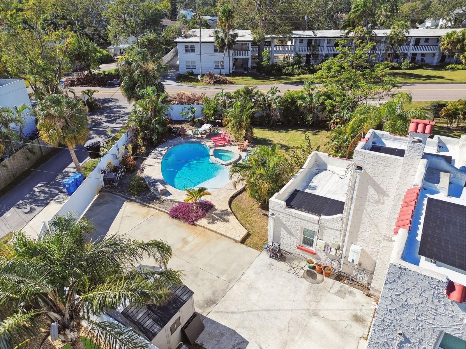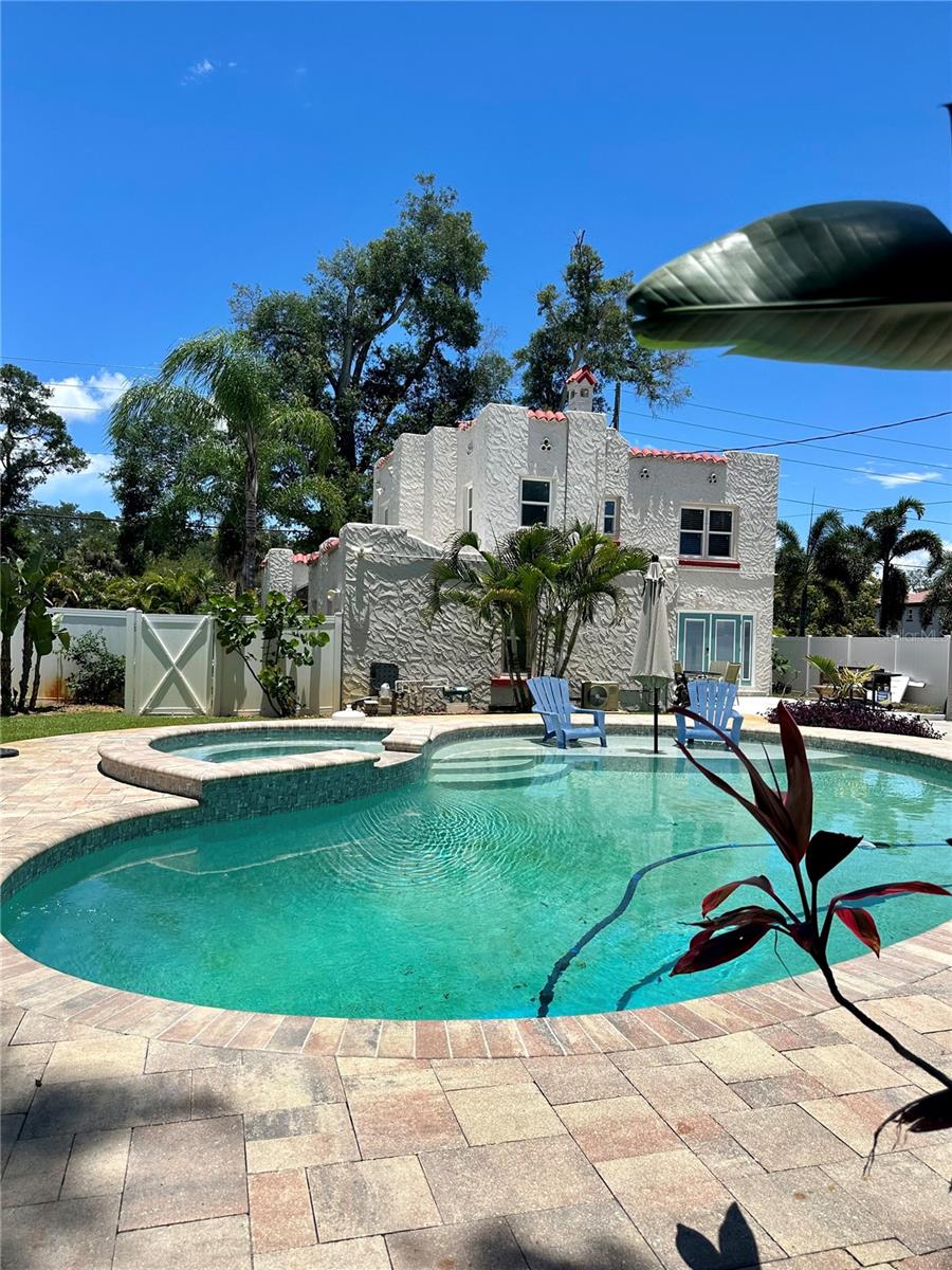 Belo castelo de estilo espanhol em um enorme lote duplo com uma piscina aquecida e na banheira de hidromassagem moída! Esta casa incrível é linda por dentro e por fora, com Três quartos e dois banheiros no segundo andar, além de dois quartos adicionais e 1,5 banheiros no primeiro andar. Os dois Quartos e um banho podem ser usados como um apartamento separado em Law e a lavanderia/meio banho pode ser facilmente convertida em um adicional quarto. Esta casa foi reformada em 2016 com novas janelas, portas, uma cozinha espetacular e um novo teto. Painéis solares adicionados em 2019 e são pago. As pavimentadoras foram adicionadas ao redor do convés da piscina em 2021. Este é um lote duplo gigante com um grande cercado no pátio lateral e separado em traseiro quintal com piscina e banheira de hidromassagem. A Areca Palms, em todo o jardim da frente, oferece privacidade e o quintal tem belo paisagismo tropical. O A propriedade é dividida em NTM-1 e a cidade de St. Pete disse que pode ser desenvolvida para 11 moradias.