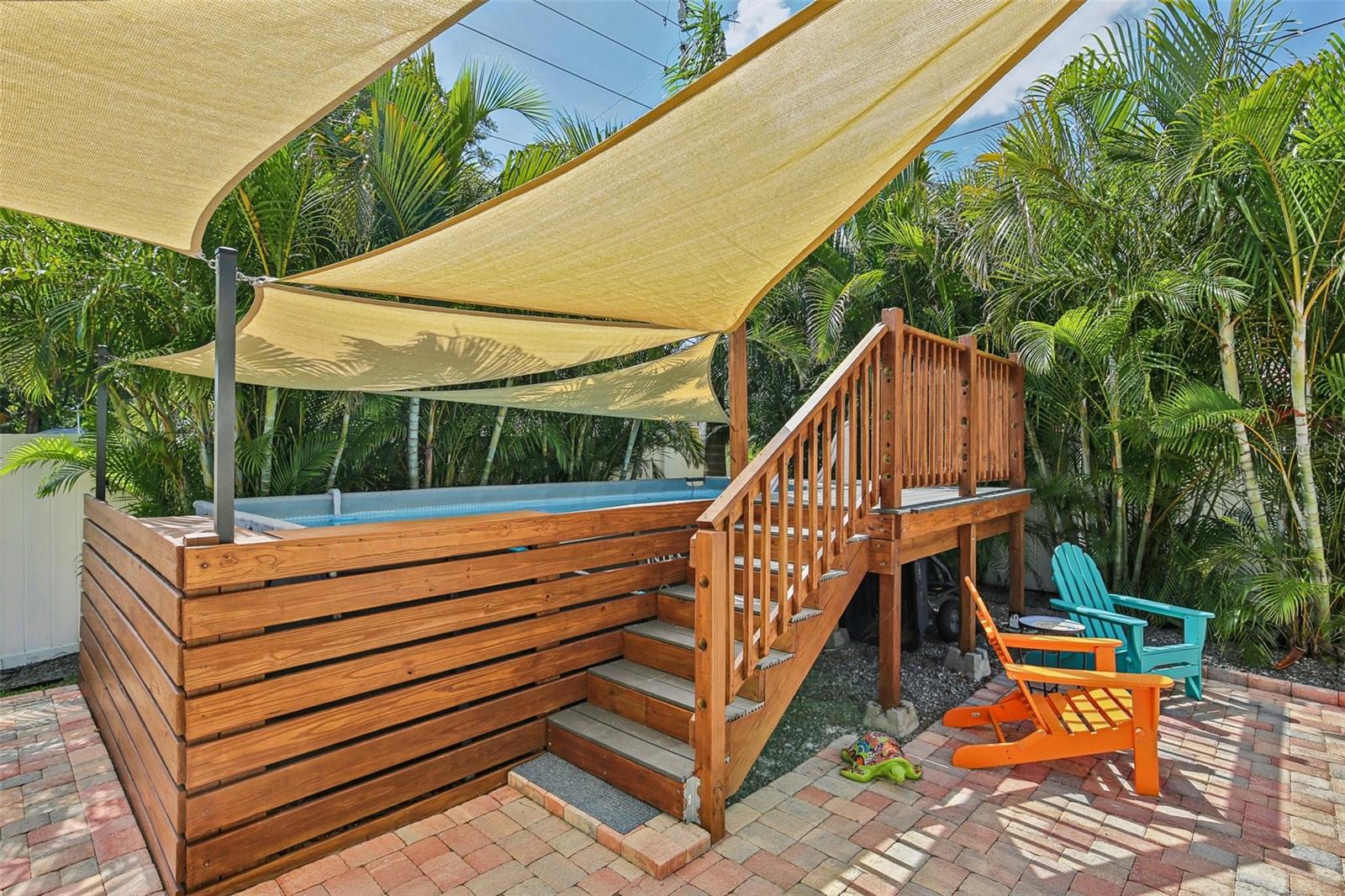 Iluminação, outro chuveiro ao ar livre, calçada, armazenamento