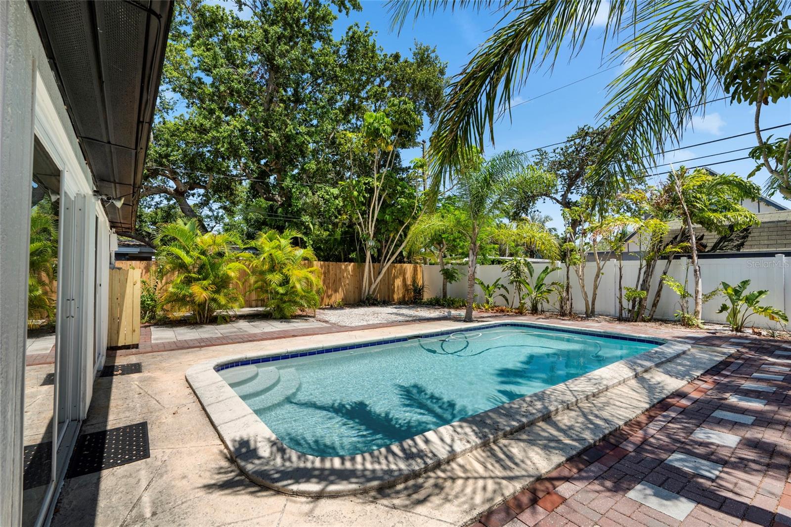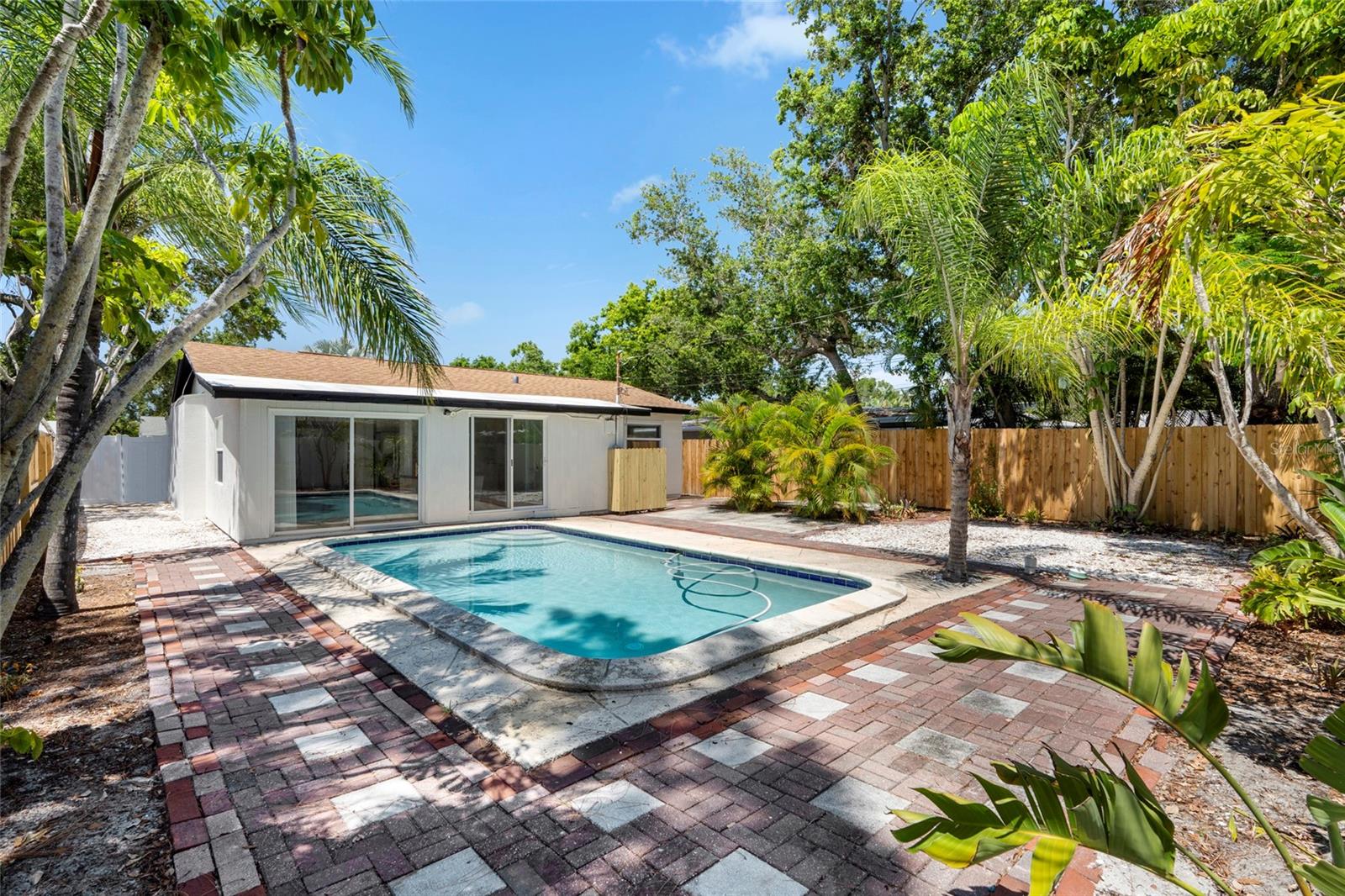 Bem-vindo ao 8020 24th Ave N! Situado na área altamente desejada do Jungle Terrace. Esta casa com 2 quartos, 1 banheiro e PISCINA é ALTA E SECA! Localizado em uma zona NÃO INUNDANTE e não sofreu nenhum dano durante os furacões mais recentes. Entre na charmosa casa e observe uma espaçosa sala de estar que vai direto para a cozinha e área de jantar. A cozinha possui muitos armários/armazenamento, eletrodomésticos mais novos (fogão, exaustor e geladeira) e uma conveniente barra de café da manhã. A garagem foi parcialmente convertida para aumentar a área interna da sala e resta um armazenamento seco 6 x 10 para sua comodidade! Passe pelas portas deslizantes de vidro para um retiro tropical isolado, completo com uma piscina cintilante no solo e um elegante pátio pavimentado. Quintal privativo totalmente cercado. Ambos os quartos apresentam piso laminado mais recente e o banheiro também foi atualizado. As atualizações recentes no interior da casa incluem: NOVO A/C (2025), interior recém-pintado, novas luminárias e ventiladores de teto, novas portas internas e novas persianas. As atualizações recentes na parte externa da casa incluem: exterior recém-pintado, novo revestimento de madeira - na frente e atrás, entrada de automóveis recentemente recapeada, piscina recentemente recapeada, nova bomba e equipamento de piscina, palmeiras vibrantes no jardim da frente e novos portões e cercas. Localização privilegiada e central, com muitas lojas e restaurantes, a 5 minutos de carro do Tyrone Shopping Plaza, a 10 minutos de carro da Praia da Ilha do Tesouro e a 20 minutos de carro do centro de St Pete. Não perca a chance de chamar de sua a casa dos sonhos!