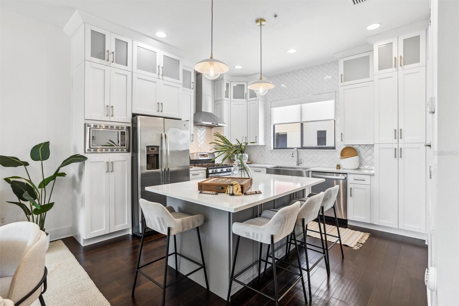 Audacioso. Moderno. Centro da cidade. Bem-vindo ao seu estilo de vida de próximo nível no coração do centro de St. Pete-onde o design elegante, a vida inteligente e as vibrações do telhado colidem em um endereço inesquecível. Escondido em um condomínio fechado, esta impressionante cidade de quatro andares é mais do que um lugar para morar-é uma declaração. Desde o momento em que você atravessa a porta, é recebido por interiores modernos e frescos, recém -repintados do teto ao chão, definindo o tom da vida elevada que aguarda. O coração da casa-uma cozinha gourmet recentemente renovada-atrai você com sua ilha prolongada, armários brancos de empilhamento duplo, pia da fazenda, utensílios de aço inoxidável com fogão a gás e microondas embutidas. Esteja você hospedando jantares ou bebendo seu café da manhã, esse espaço de conceito aberto flui sem esforço para a área de estar, criando o cenário perfeito para entretenimento e a vida cotidiana. O Mohawk Wood Flooring guia seus degraus, pois a luz natural entra de janelas do chão ao teto. O layout atencioso continua no andar de cima, onde a suíte primária oferece não um, mas dois armários espaçosos, uma vaidade dupla e um chuveiro de vidro com um banco embutido-seu retiro pessoal após um longo dia. A casa está equipada com tecnologia inteligente a cada turno, incluindo fechaduras inteligentes, alarme ADT, câmera de campainha de vídeo e persianas motorizadas - todas projetadas para uma vida perfeita e segura. Mas a jóia da coroa desta residência? O terraço privado na cobertura. Imagine relaxar sob a pérgola, grelhar com amigos, misturar coquetéis no bar molhado no telhado ou pegar o jogo na sua TV - tudo com o horizonte da cidade como pano de fundo. Esse espaço não é apenas uma comodidade, é o seu oásis urbano no céu. Uma garagem privada de dois carros oferece facilidade e segurança, com a opção de incluir uma configuração de academia em casa do PRX Performance para quem deseja permanecer ativo sem nunca sair de casa. No mesmo nível do quarto principal, há um espaço de lavanderia dedicado com pia e lavadora e secadora de carregamento dianteiro empilhável, tornando as tarefas diárias uma brisa. Localização, é claro, é tudo. E com uma pontuação de 93 anos, você está morando no coração de tudo. A apenas dois quarteirões dos movimentados restaurantes, cafeterias e butiques da Central Avenue. Um curto passeio até parques à beira-mar, píer e museus de classe mundial. E quando você estiver pronto para uma mudança de cenário, as areias brancas de St. Pete Beach e os terminais dos aeroportos de Tampa e Clearwater estão a apenas 15 minutos. Isso é mais do que um condomínio-é o seu assento na primeira fila para tudo o que o centro de St. Pete tem a oferecer. Agende sua turnê privada hoje e experimente a energia, a elegância e a facilidade da sua próxima casa.