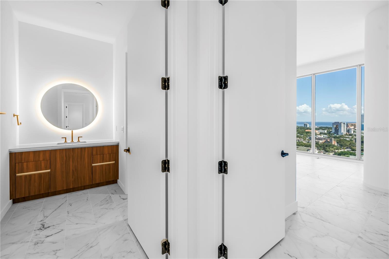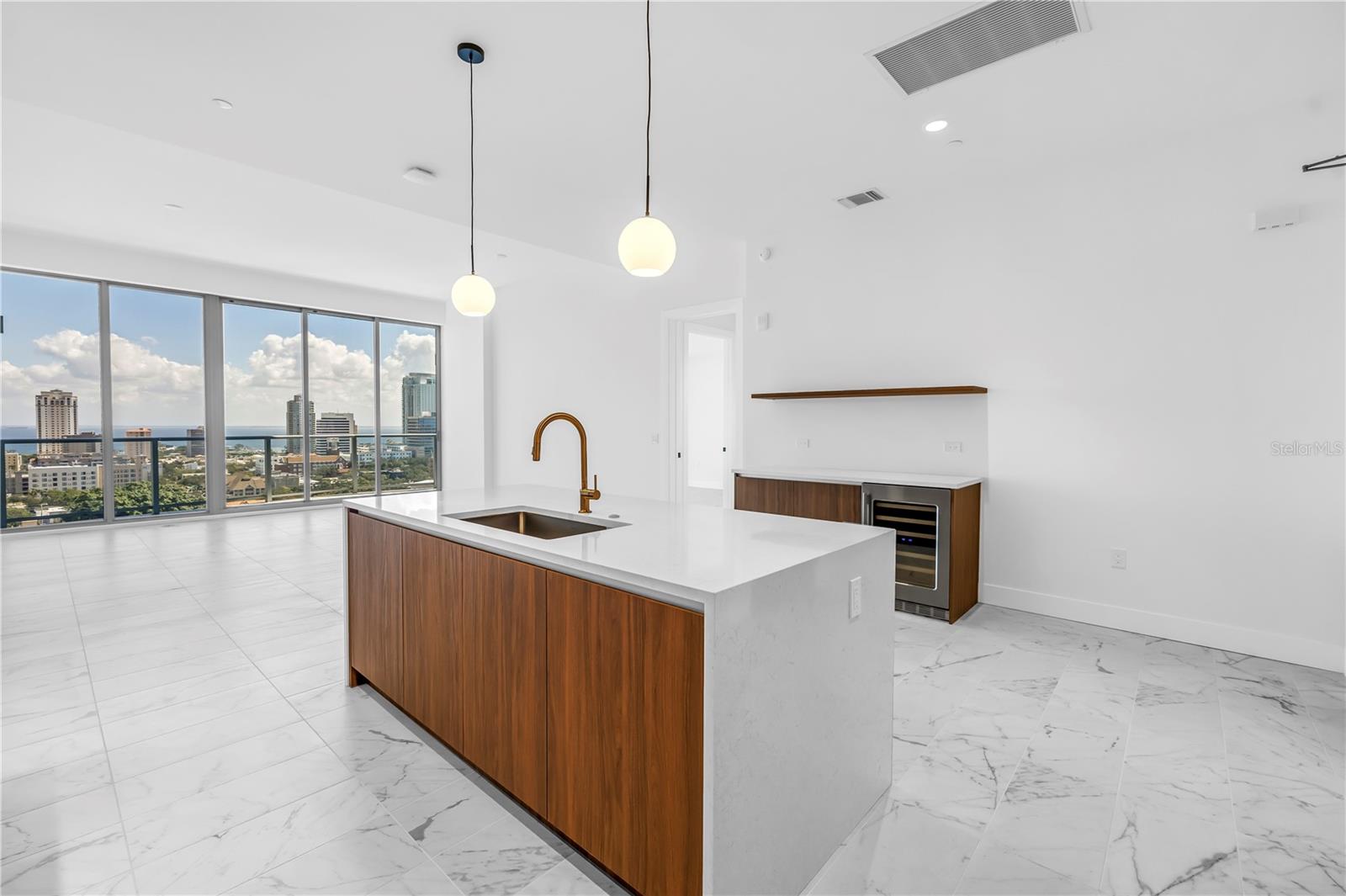 REFLEXÃO St. Pete apresenta uma rara oportunidade de possuir a Jade Penthouse - uma residência de esquina no 17º andar em uma das torres de luxo mais exclusivas do centro da cidade. Abrangendo mais de 1.700 pés quadrados, esta casa de 2 quartos e 2 banheiros oferece vistas deslumbrantes da cidade e do mar combinadas com a privacidade e sofisticação da vida na cobertura. No interior, a residência apresenta tetos altos de 3,3 metros, piso de porcelanato atualizado e uma cozinha de design com eletrodomésticos Bosch prontos para painel, bancadas de quartzo e um bar personalizado com refrigerador de vinho Thermador - perfeito para entretenimento. O layout aberto é luminoso e convidativo, emoldurado por vidro do chão ao teto que enche a casa de luz natural. A espaçosa suíte principal inclui um banheiro europeu e um amplo closet, enquanto a suíte de hóspedes oferece flexibilidade para visitantes ou um home office. Duas vagas de estacionamento atribuídas estão incluídas. Os residentes desfrutam de acesso exclusivo a um retiro de 12.000 pés quadrados na cobertura, completo com piscina aquecida de água salgada e spa, academia de ginástica com paredes de vidro, clube social, lounge com fogueira e cozinha externa - tudo cercado por vistas panorâmicas da cidade e da baía. Construído para luxo e longevidade, o REFLECTION apresenta filtragem de ar REME Halo, um sistema de amaciamento de água, entrada sem toque e construção superior comprovada para resistir a furacões recentes. Situada ao longo do Lago Mirror e a poucos passos dos restaurantes, lojas e destinos culturais da Avenida Central, a Jade Penthouse oferece um equilíbrio incomparável entre tranquilidade, conveniência e vida elevada no centro da cidade.