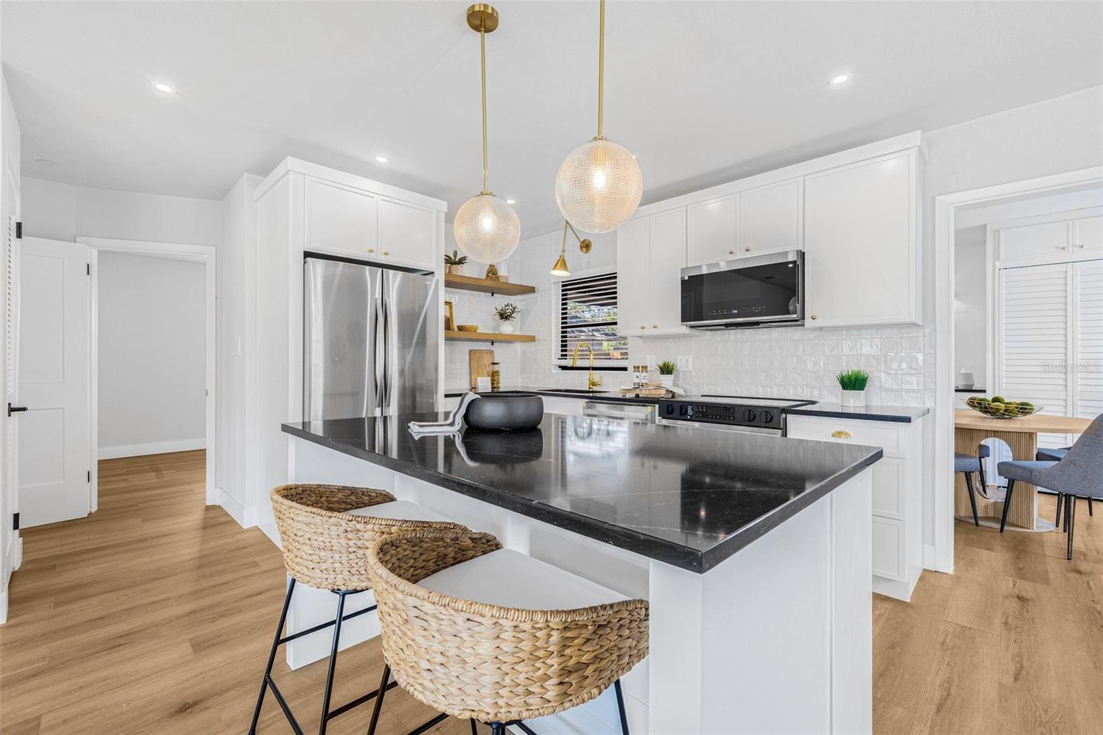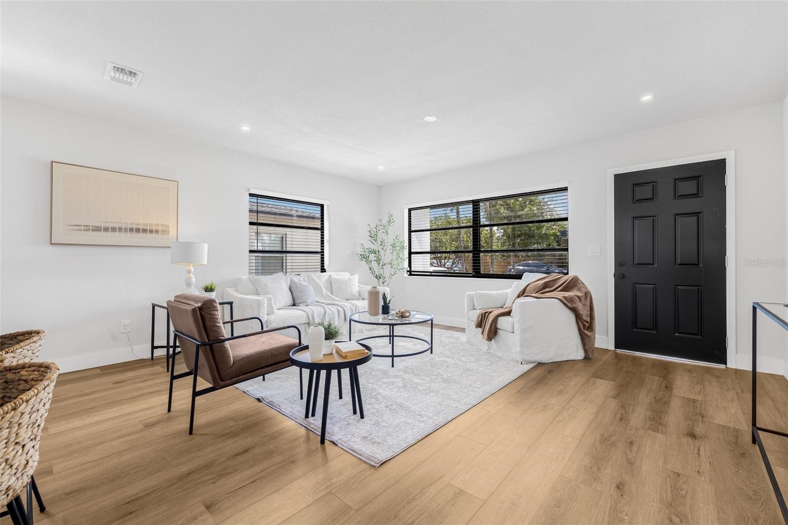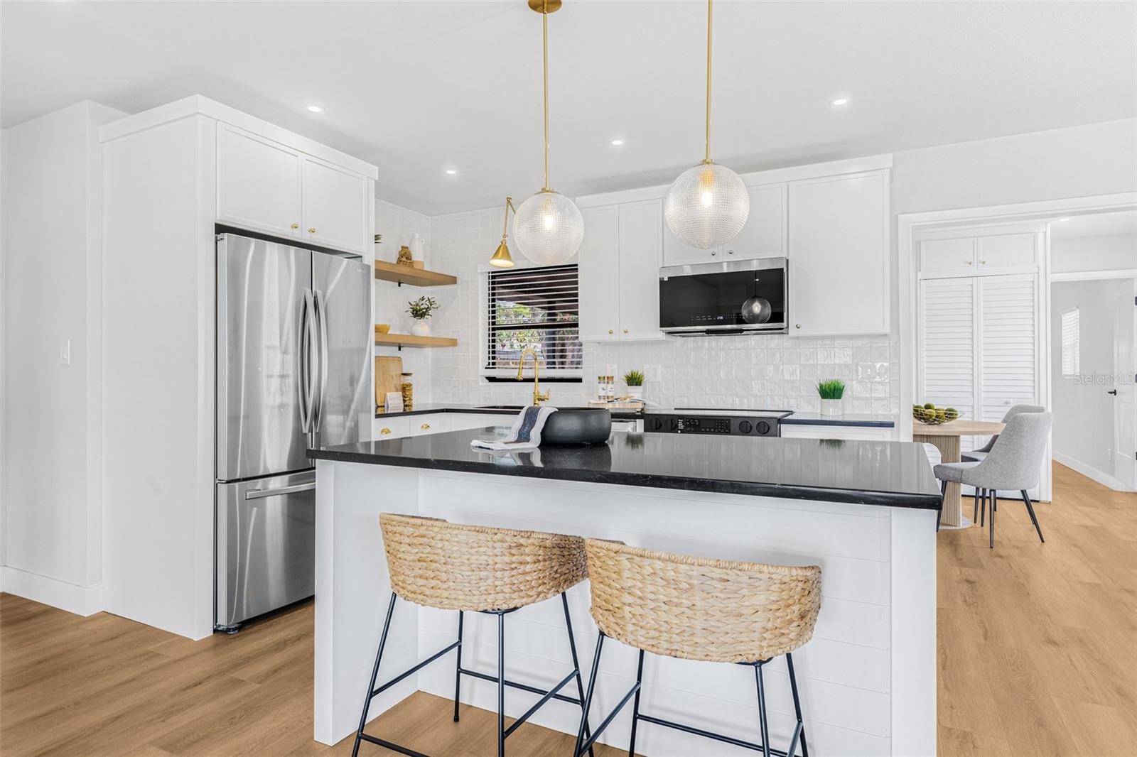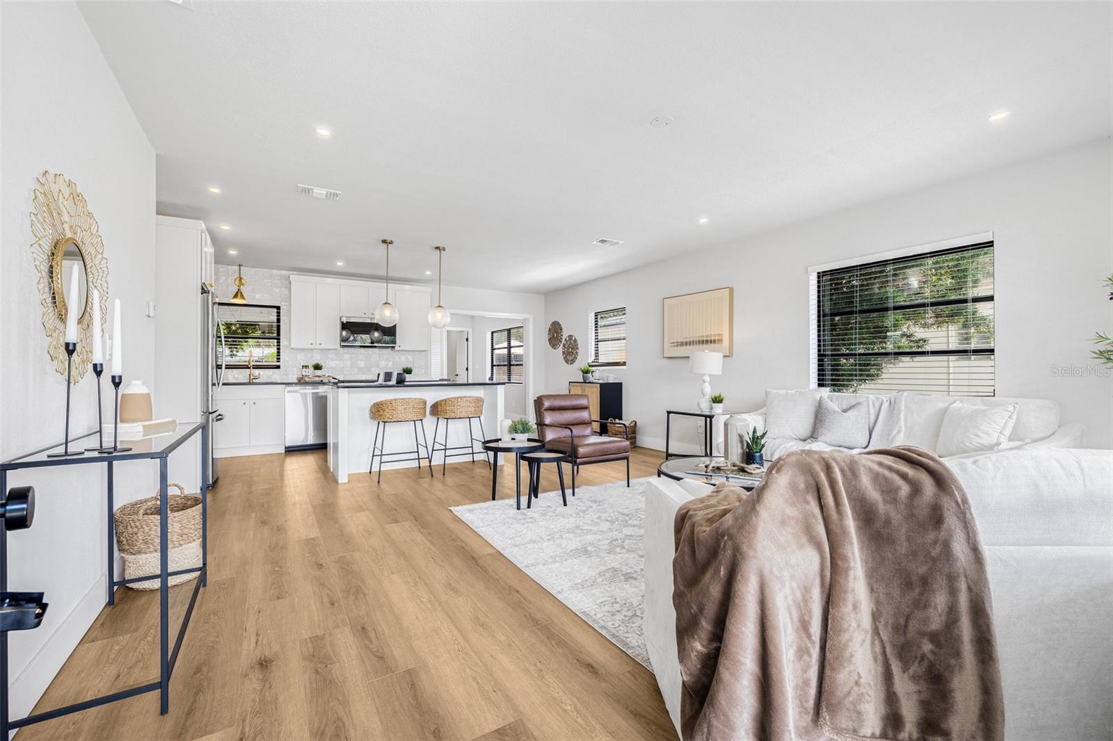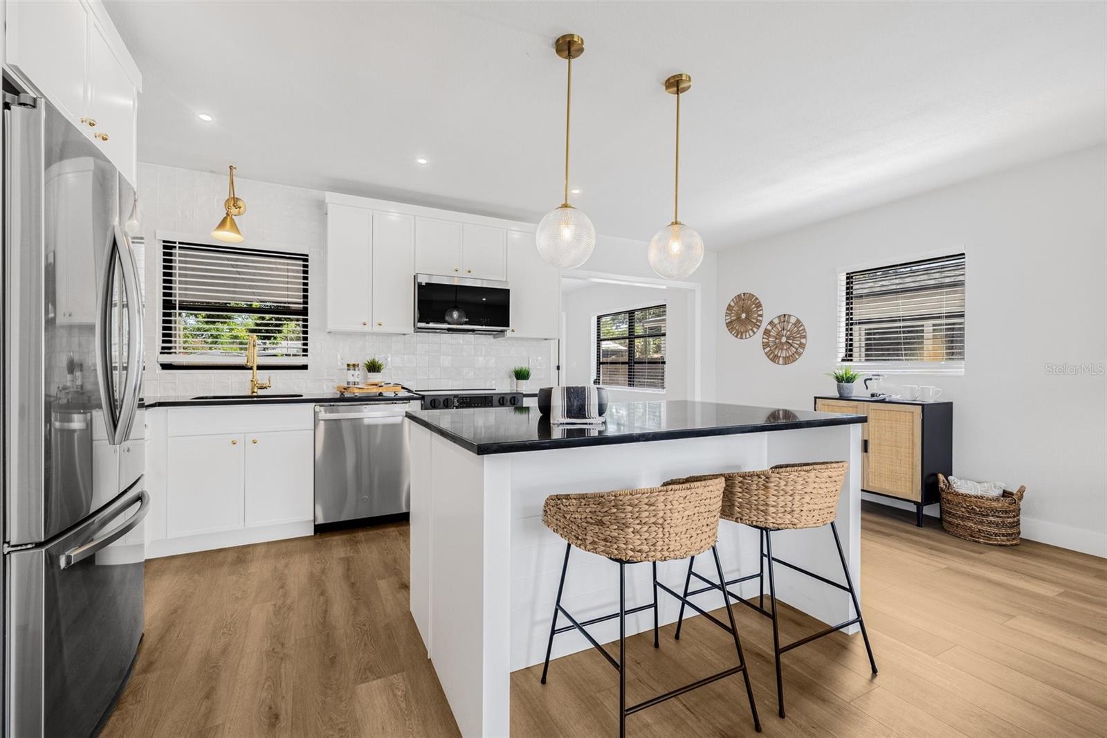 5652 4th Ave North é realmente impressionante! Este incrível bloco, não inundação de 3 quartos, 2 banheiros em casa é um conceito aberto, com uma planta baixa altamente desejável. Algumas das características incríveis desta casa incluem pisos LVP por toda parte, bancadas elegantes de quartzo preto, armários de agitadores de perto e backsplash de altura do teto que complementam elegantemente as prateleiras flutuantes na cozinha do chef verdadeiro, adornado com novos aparelhos de aço inoxidável. A varanda da frente lindamente azulejo e o pátio coberto de costas são espaços incríveis para viver o estilo de vida ao ar livre na Flórida! Outras atualizações incluem iluminação LED embutida, arandelas de luxo, teto de telha nova, HVAC, painel elétrico, aquecedor de água quente sem tanques, cercas e muito mais. Ligue hoje para uma exibição particular deste impressionante St Pete Home!