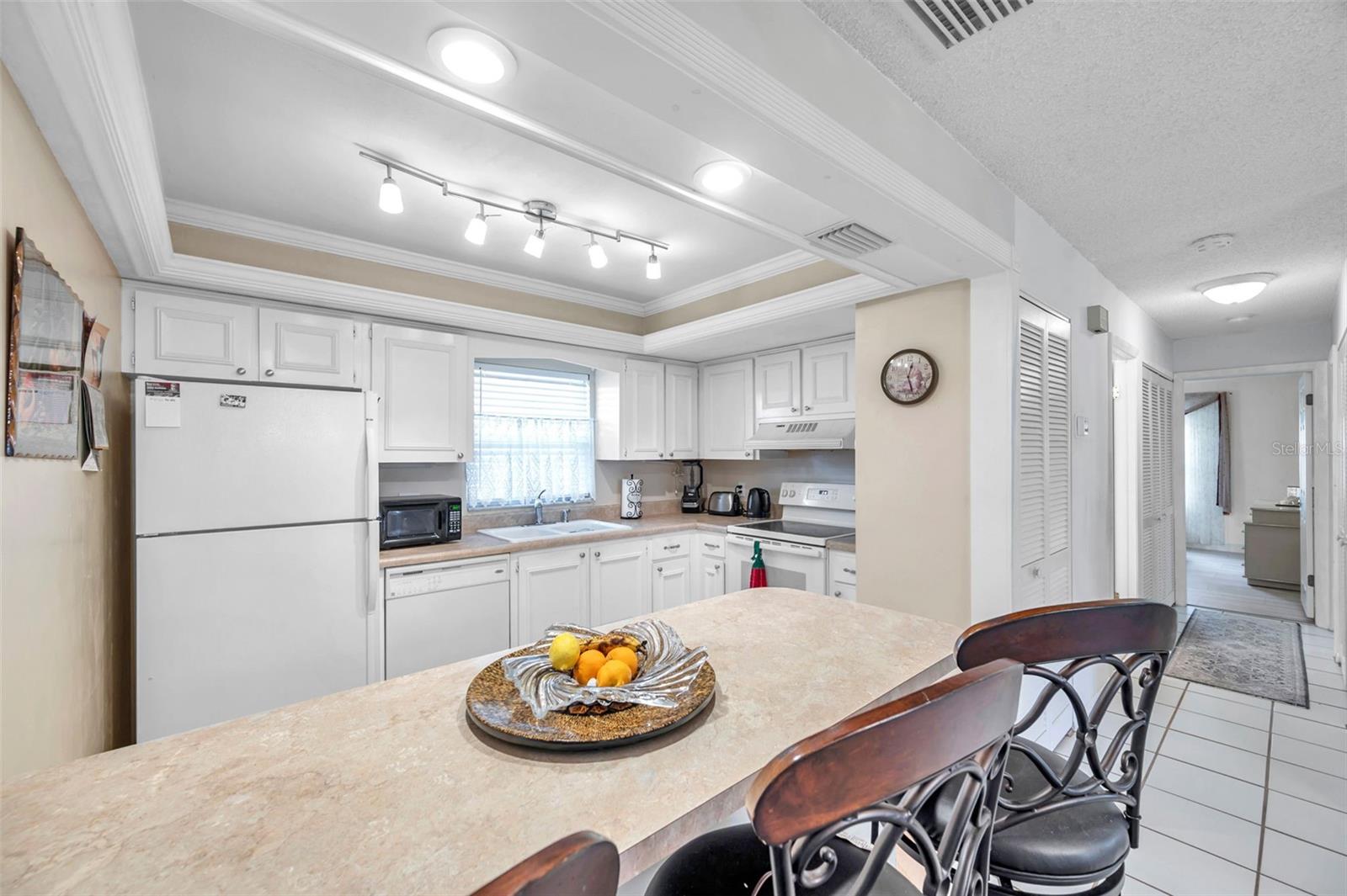 Bem -vindo ao Country Club Villas! Esta casa de 2 banheiros de 2 quartos decorados com bom gosto também vem com uma garagem e armazenamento privados de 1 carro! A área de estar principal é compartilhada com a área de jantar com conjuntos duplos de portas francesas que se abrem para uma grande sala de ar-condicionado da Flórida, com vista para um quintal tranquilo paisagístico. A sala da Flórida contém aproximadamente 188 pés quadrados de espaço para usar como escritório, sala de exercícios, área de artesanato ou espaço de entretenimento adicional. Há também uma lavanderia interna que vem com uma lavadora e secadora em tamanho real. Os quartos são bastante consideráveis. O banheiro mestre suíte inclui um espaço de vaidade separado da caminhada no chuveiro e dois armários embutidos. O quarto de hóspedes tem um closet de tamanho generoso, e o banheiro de hóspedes tem uma combinação de banheira/chuveiro. A localização desta vila o coloca perto de supermercados, lojas, inúmeras opções de refeições e é uma curta viagem da movimentada área do centro e da orla de São Petersburgo, com suas boutiques, jantares, museus e muitos locais de entretenimento. É uma curta viagem de carro de Fort DeSoto e as belas areias de São Petersburgo. Viagem fácil para o Aeroporto Internacional de Tampa e Tampa ao norte e a icônica ponte Skyway e a área de Sarasota/Bradenton ao sul. A taxa de manutenção mensal inclui manutenção de edifícios exteriores, manutenção de terrenos, piscina comunitária, TV a cabo, água, esgoto e lixo e internet. Teto substituído em 2022.
