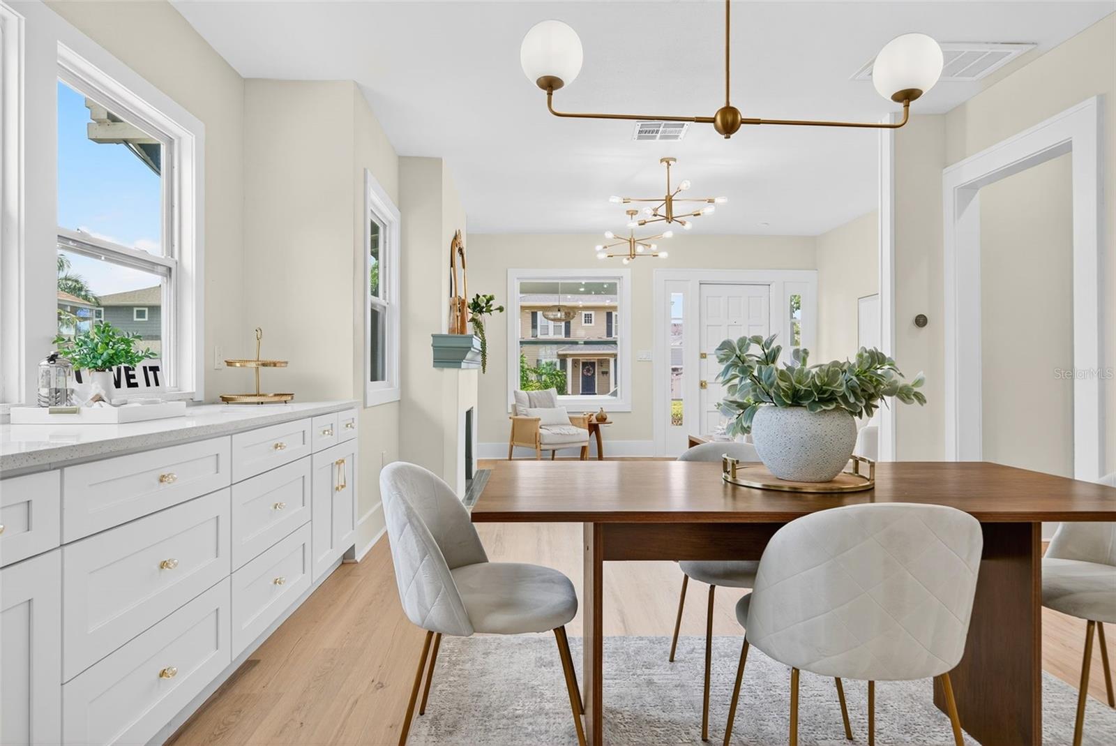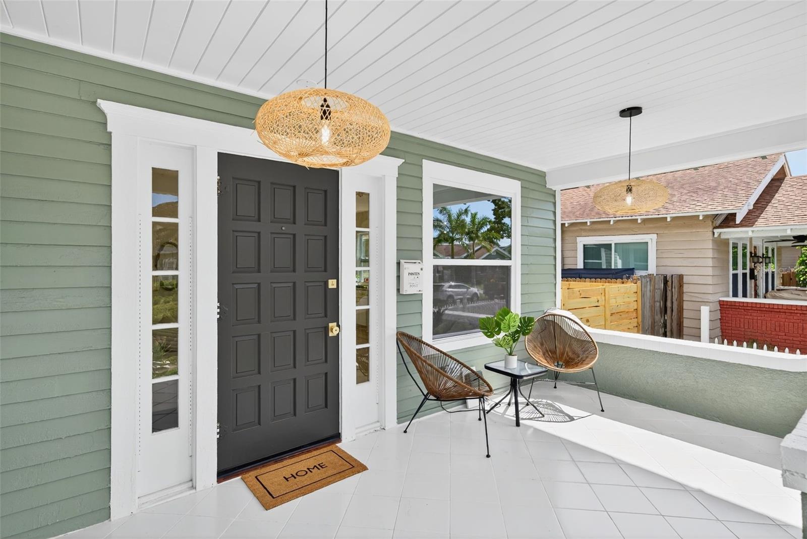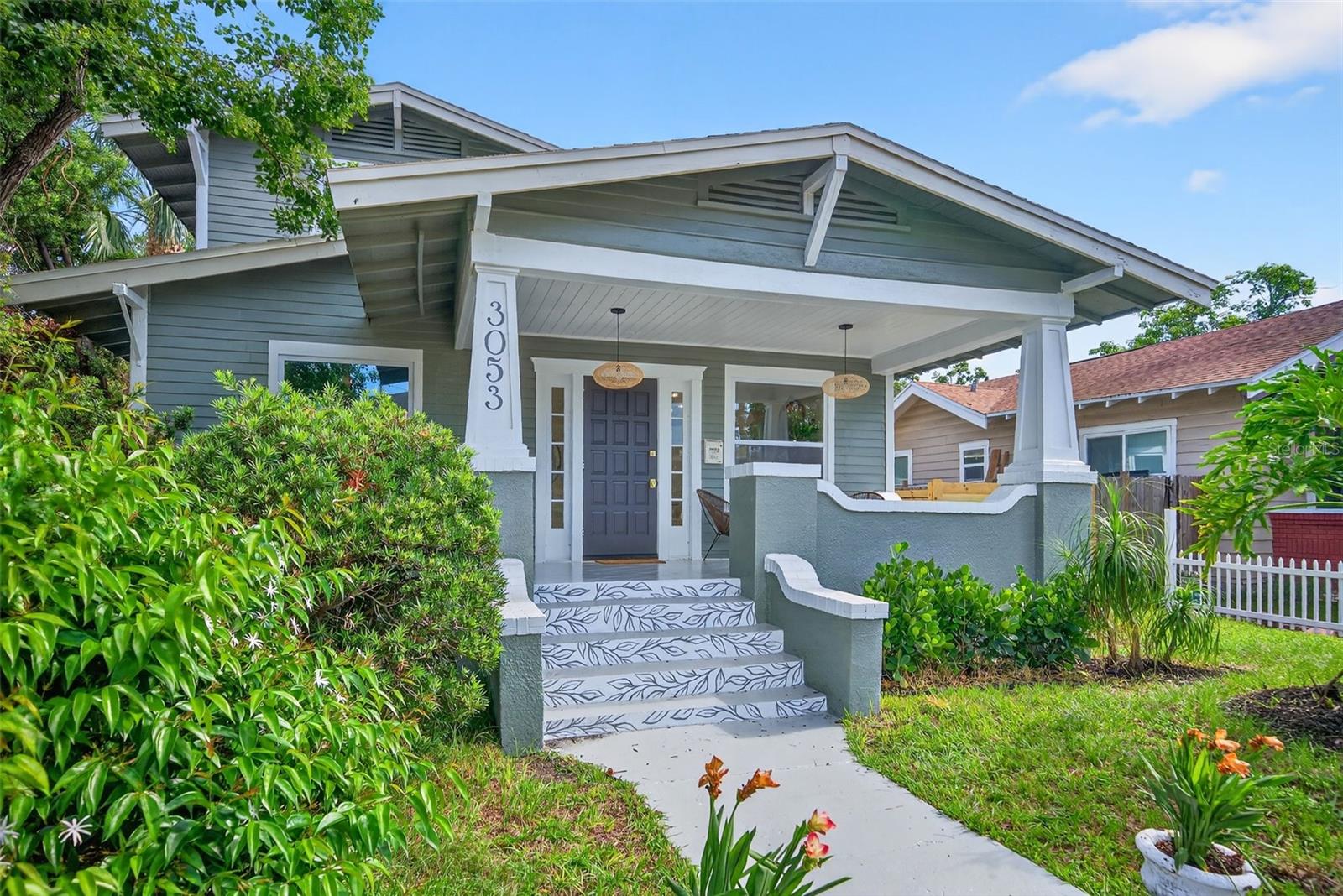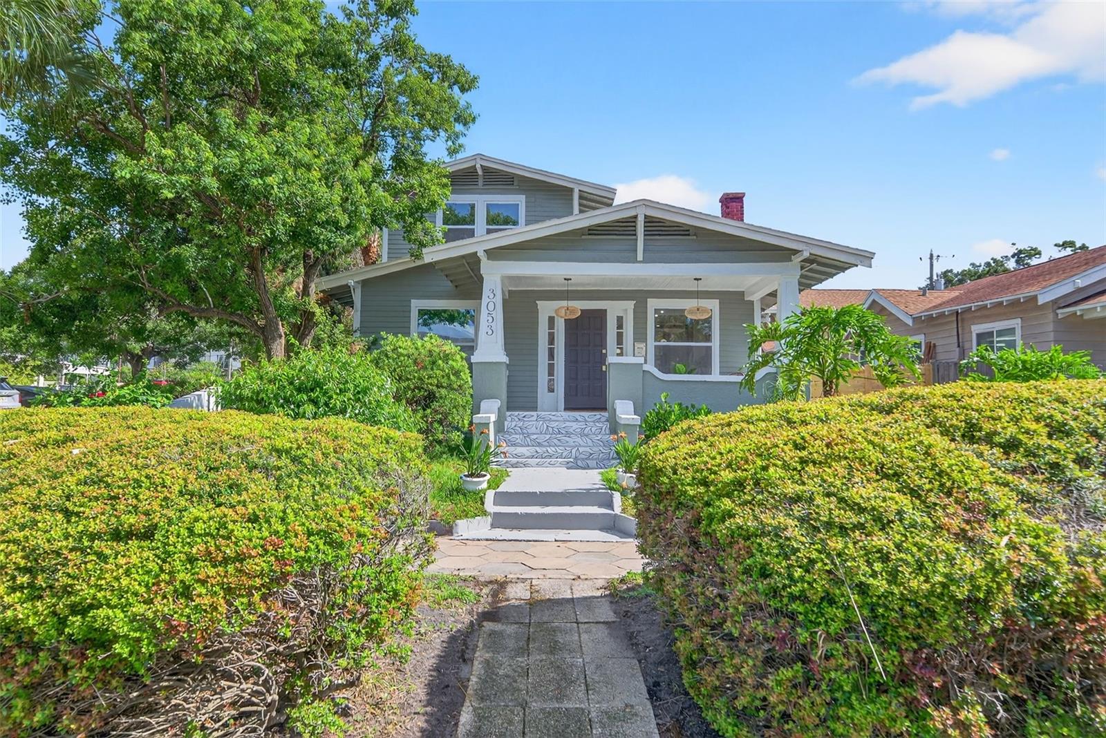 "Classic Meets Modern" - Este histórico Kenwood Bungalow de 1928 foi atualizado para o morador da cidade moderno e o fator "uau" a cada passo. A grande varanda recebe a família e os amigos, além de ser o local perfeito para uma festa da varanda do bairro! Dando um aceno para a planta original, a casa foi projetada para incluir uma cozinha reimaginada, incluindo uma barra de café da manhã conveniente, amplo espaço de balcão e muito armazenamento com acessórios personalizados e uma faixa de gás. Os ladrilhos de metrô de vidros verdes personalizados são um aceno para a década de 1920 com um toque moderno. Ao entrar na casa, a sala é ancorada pela lareira original e cria uma mistura harmoniosa de charme histórico. A sala flui perfeitamente para a sala de jantar e oferece armários personalizados para armazenamento e entretenimento, e mantém intactos o charme e o caráter da casa. O piso principal oferece dois quartos grandes que compartilham um banho de corredor. Na escada original, o principal suíte cria a sensação do seu próprio santuário com um quarto grande, armário duplo e um banheiro que inclui uma grande sala úmida com uma banheira de imersão e uma generosa área de chuveiro. Além da cozinha, há uma conveniente sala de bônus/escritório/sala de estar que inclui um armário de lavanderia e meio banho, que leva ao jardim traseiro e garagem para carro único. O pátio traseiro/jardim tem acesso conveniente para a garagem e o estacionamento. O design de parede personalizado ancora o quintal com "Kenwood" em bordado na parede - digamos que é o melhor de "Modern Meets Historic"; Certamente um aceno para a cidade modernizada de St. Pete e o amor de murais ao redor! Localizado em uma zona não de inundação.