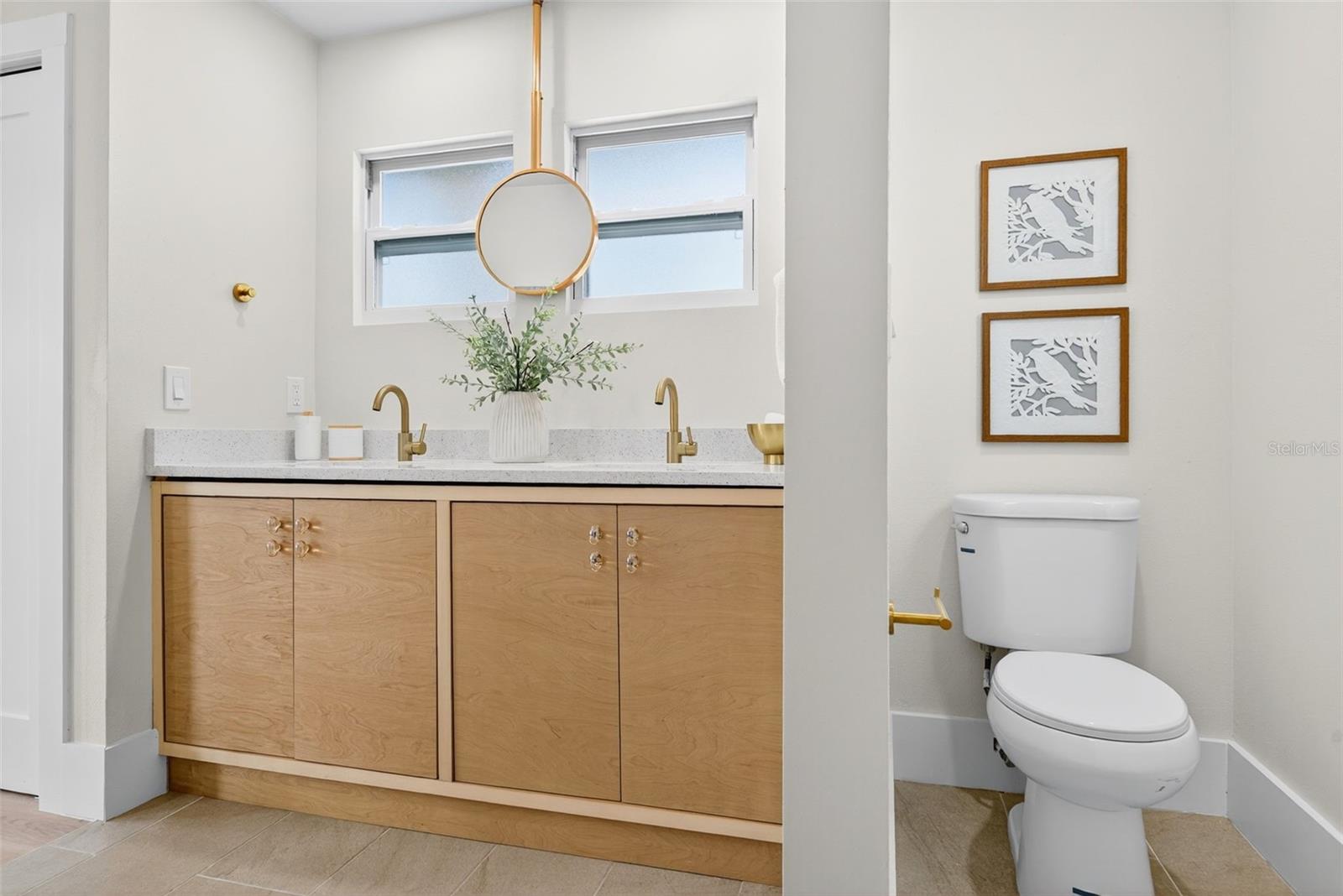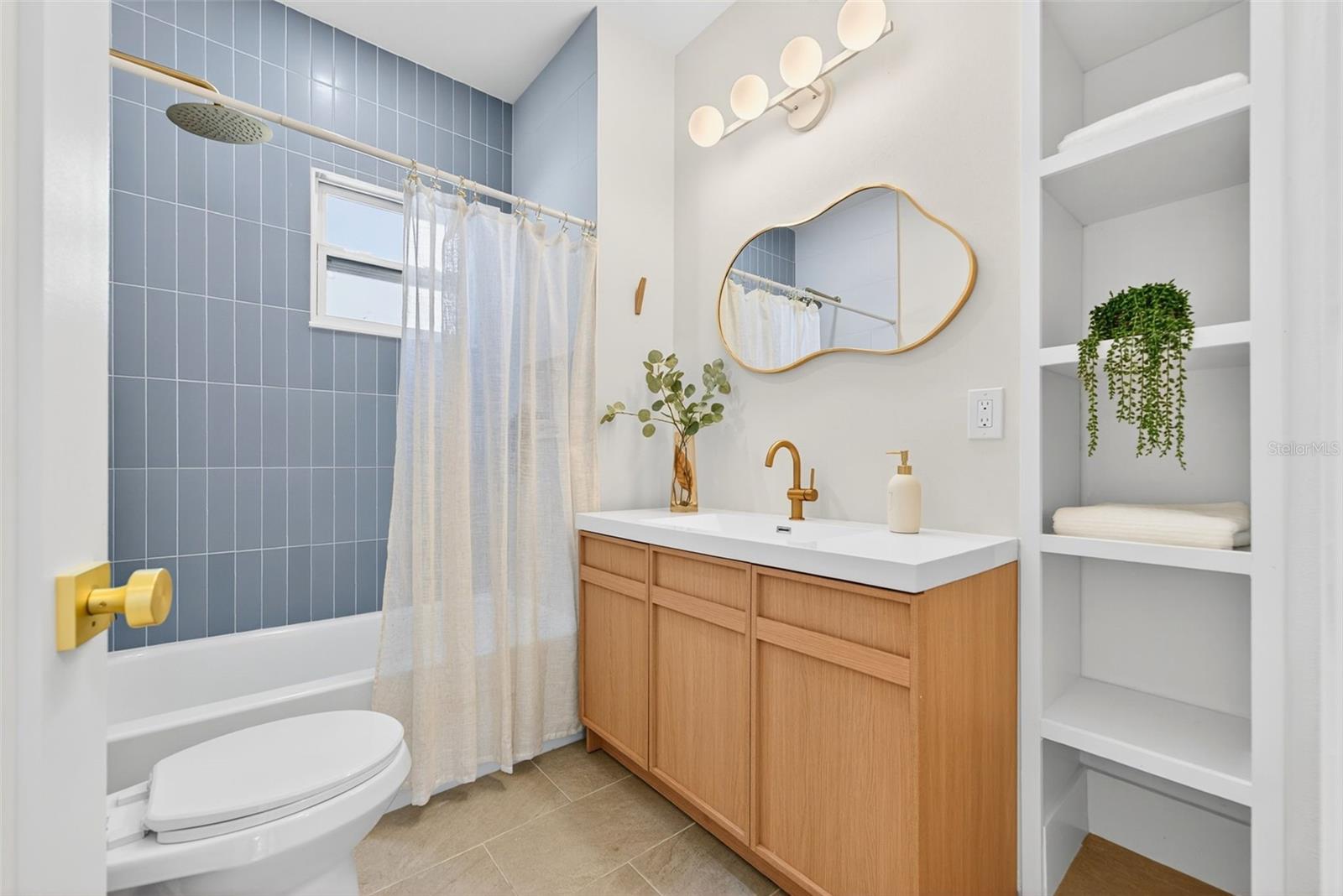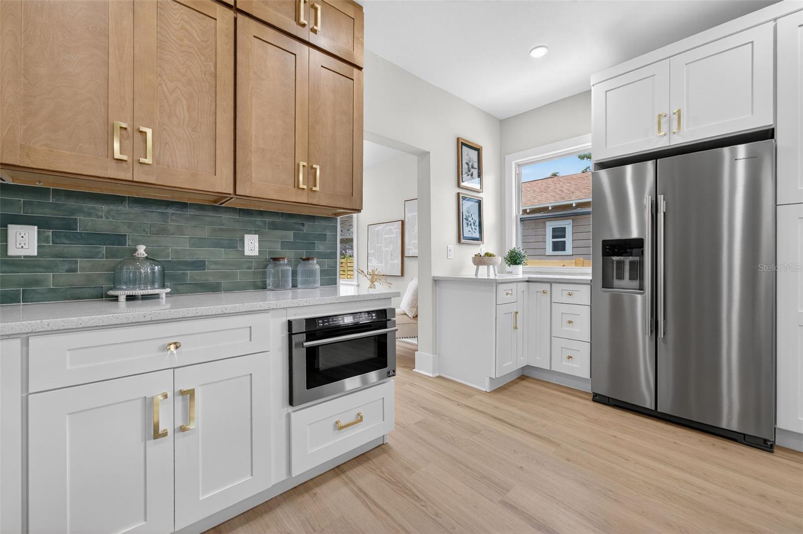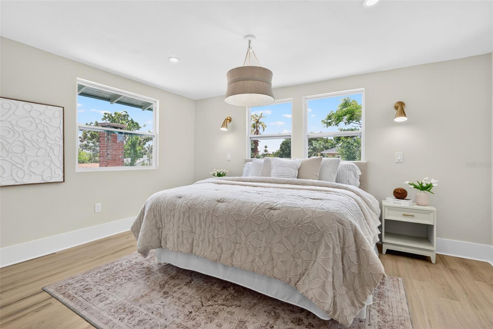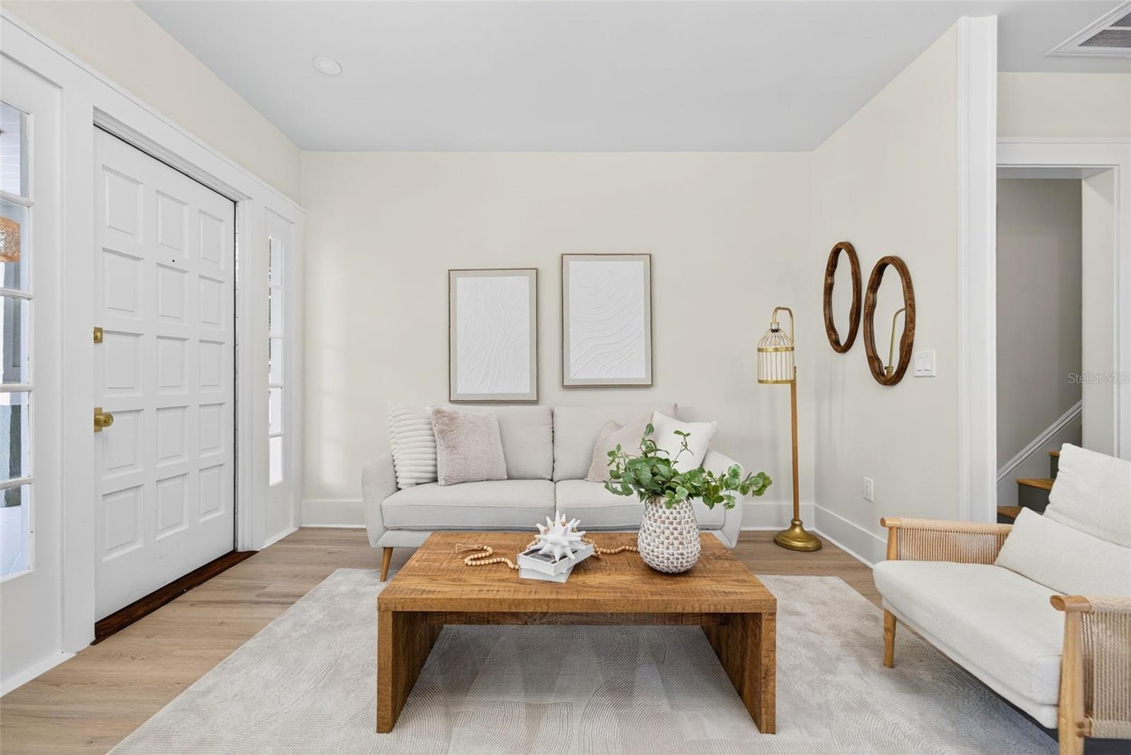 "Classic Meets Modern" - Este histórico Kenwood Bungalow de 1928 foi atualizado para o morador da cidade moderno e o fator "uau" a cada passo. A grande varanda recebe a família e os amigos, além de ser o local perfeito para uma festa da varanda do bairro! Dando um aceno para a planta original, a casa foi projetada para incluir uma cozinha reimaginada, incluindo uma barra de café da manhã conveniente, amplo espaço de balcão e muito armazenamento com acessórios personalizados e uma faixa de gás. Os ladrilhos de metrô de vidros verdes personalizados são um aceno para a década de 1920 com um toque moderno. Ao entrar na casa, a sala é ancorada pela lareira original e cria uma mistura harmoniosa de charme histórico. A sala flui perfeitamente para a sala de jantar e oferece armários personalizados para armazenamento e entretenimento, e mantém intactos o charme e o caráter da casa. O piso principal oferece dois quartos grandes que compartilham um banho de corredor. Na escada original, o principal suíte cria a sensação do seu próprio santuário com um quarto grande, armário duplo e um banheiro que inclui uma grande sala úmida com uma banheira de imersão e uma generosa área de chuveiro. Além da cozinha, há uma conveniente sala de bônus/escritório/sala de estar que inclui um armário de lavanderia e meio banho, que leva ao jardim traseiro e garagem para carro único. O pátio traseiro/jardim tem acesso conveniente para a garagem e o estacionamento. O design de parede personalizado ancora o quintal com "Kenwood" em bordado na parede - digamos que é o melhor de "Modern Meets Historic"; Certamente um aceno para a cidade modernizada de St. Pete e o amor de murais ao redor! Localizado em uma zona não de inundação.