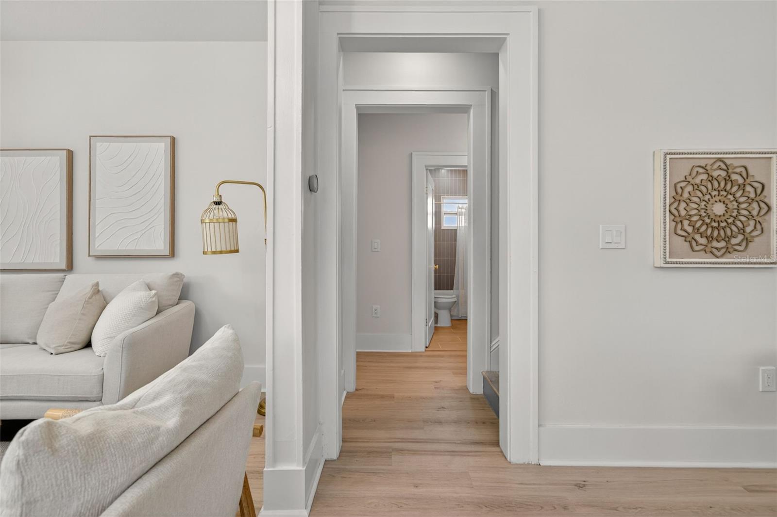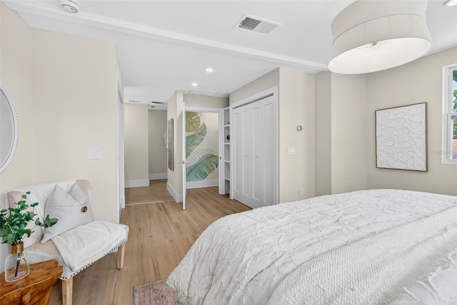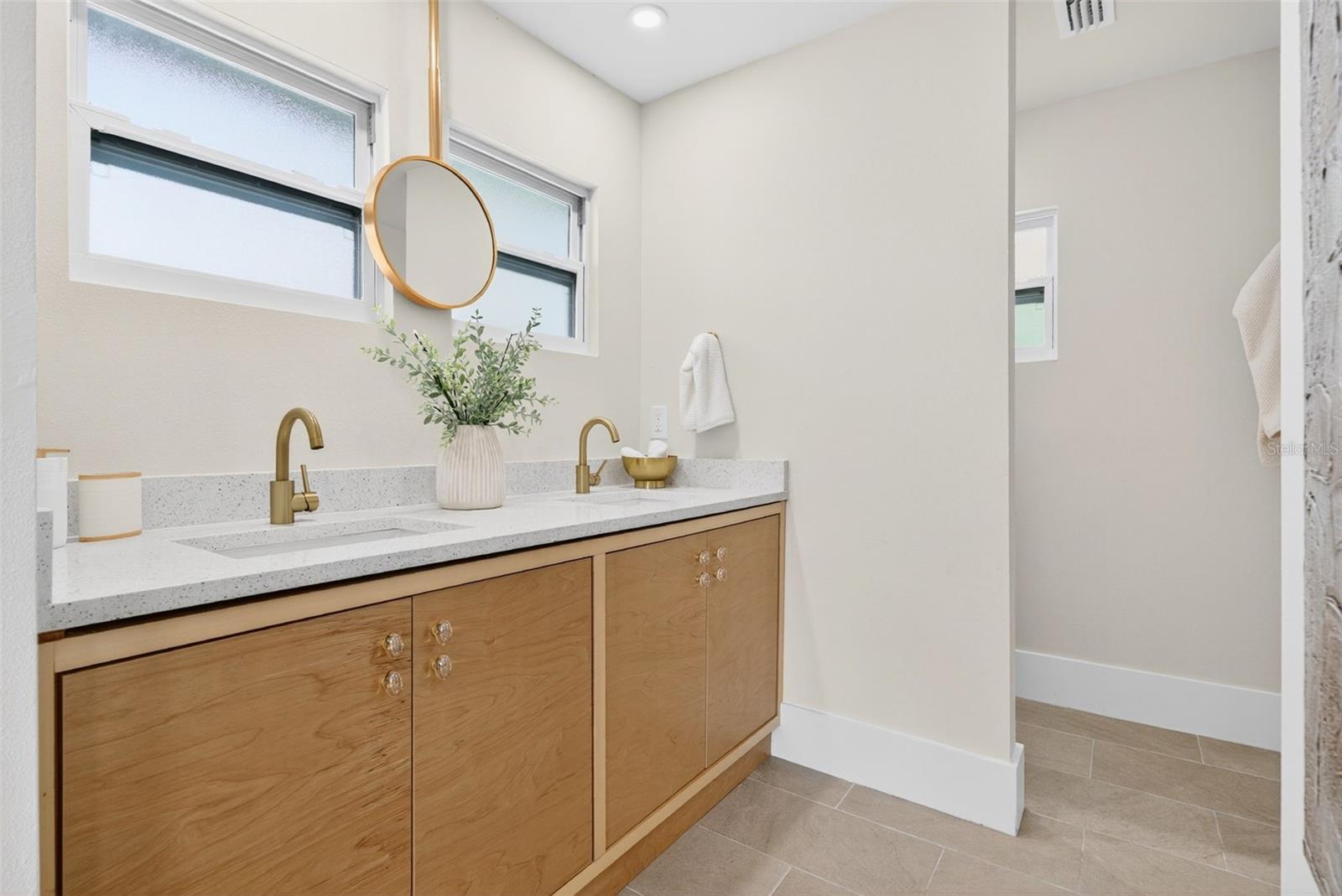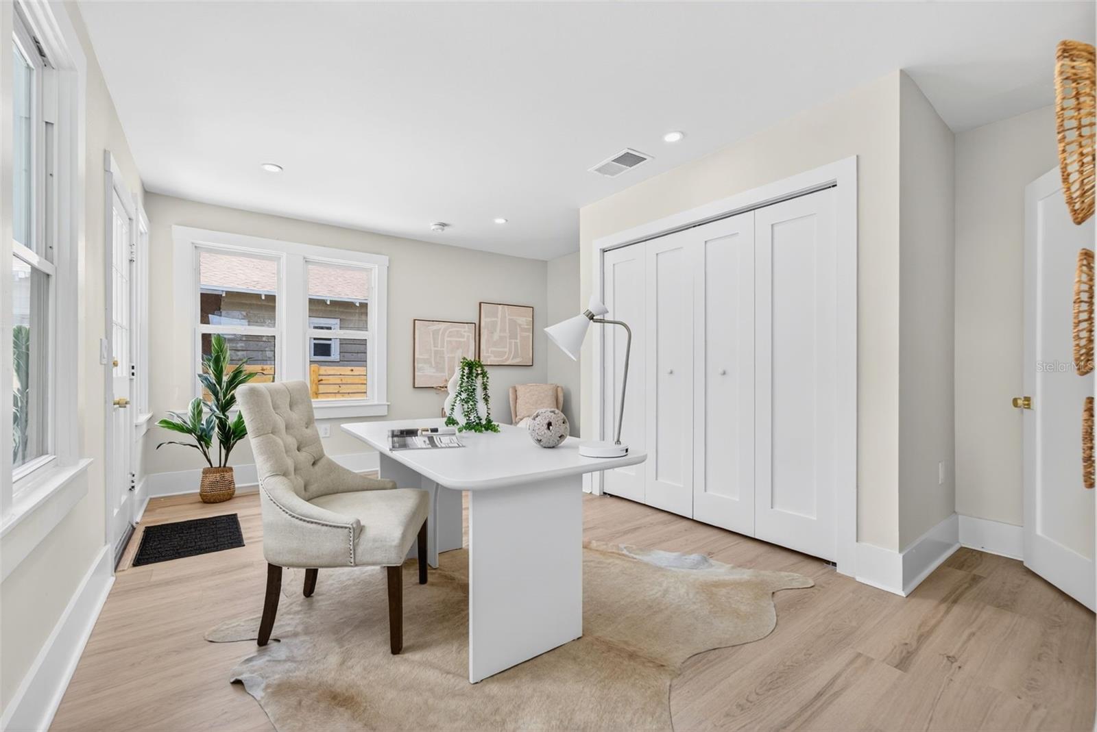 "Classic Meets Modern" - Este histórico Kenwood Bungalow de 1928 foi atualizado para o morador da cidade moderno e o fator "uau" a cada passo. A grande varanda recebe a família e os amigos, além de ser o local perfeito para uma festa da varanda do bairro! Dando um aceno para a planta original, a casa foi projetada para incluir uma cozinha reimaginada, incluindo uma barra de café da manhã conveniente, amplo espaço de balcão e muito armazenamento com acessórios personalizados e uma faixa de gás. Os ladrilhos de metrô de vidros verdes personalizados são um aceno para a década de 1920 com um toque moderno. Ao entrar na casa, a sala é ancorada pela lareira original e cria uma mistura harmoniosa de charme histórico. A sala flui perfeitamente para a sala de jantar e oferece armários personalizados para armazenamento e entretenimento, e mantém intactos o charme e o caráter da casa. O piso principal oferece dois quartos grandes que compartilham um banho de corredor. Na escada original, o principal suíte cria a sensação do seu próprio santuário com um quarto grande, armário duplo e um banheiro que inclui uma grande sala úmida com uma banheira de imersão e uma generosa área de chuveiro. Além da cozinha, há uma conveniente sala de bônus/escritório/sala de estar que inclui um armário de lavanderia e meio banho, que leva ao jardim traseiro e garagem para carro único. O pátio traseiro/jardim tem acesso conveniente para a garagem e o estacionamento. O design de parede personalizado ancora o quintal com "Kenwood" em bordado na parede - digamos que é o melhor de "Modern Meets Historic"; Certamente um aceno para a cidade modernizada de St. Pete e o amor de murais ao redor! Localizado em uma zona não de inundação.