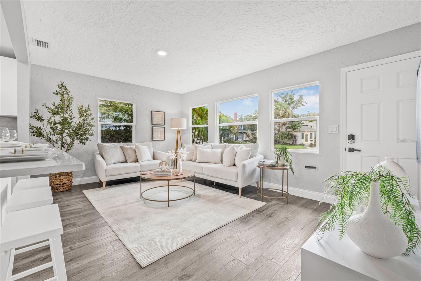 Lindamente renovado 3 camas, 2 banheiros na casa no bairro de Euclides altamente procurados, zona sem inundação e embalada com atualizações! Este plano de piso dividido de 1.230 pés quadrados oferece um layout de conceito aberto, com um espaçoso privilégio primário com closet e chuveiro de walk-in. Desfrute de paz de espírito com janelas com classificação de impacto, um telhado de telha 2024, 2024 HVAC e tapume durável de quadros 2024. Os acabamentos modernos incluem armários agitados de perto, bancadas de quartzo, utensílios de aço inoxidável LG e iluminação LED recuada. Ambos os banheiros foram remodelados com bom gosto. Os destaques adicionais incluem um aquecedor de água sem tanques de Rheem a gás 2025, o painel quadrado de 200 amp e o armário de lavanderia. Ao ar livre, encontre novas cercas, decks, paisagismo e um quintal pré-enrolado para uma cozinha ao ar livre. Turnkey morando em um local de St. Pete!