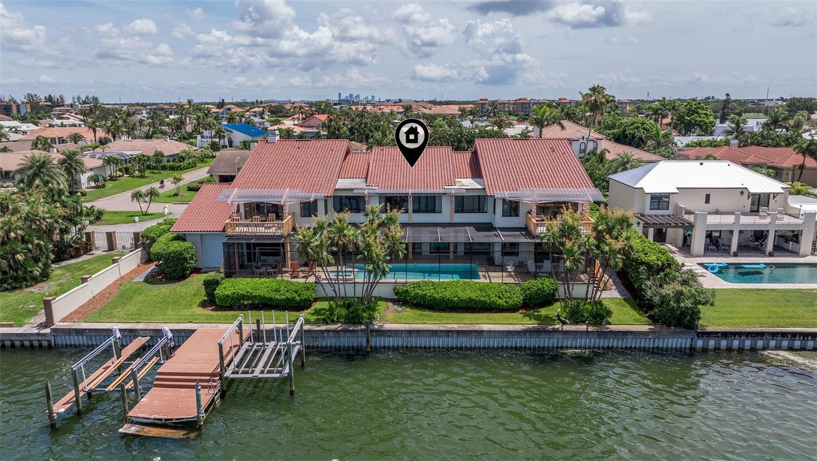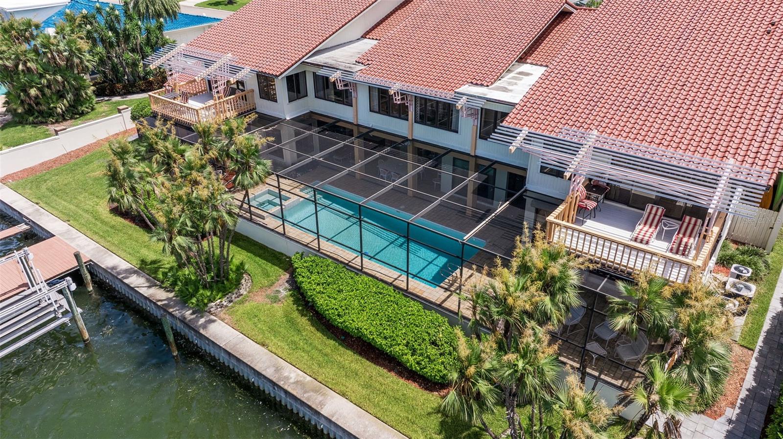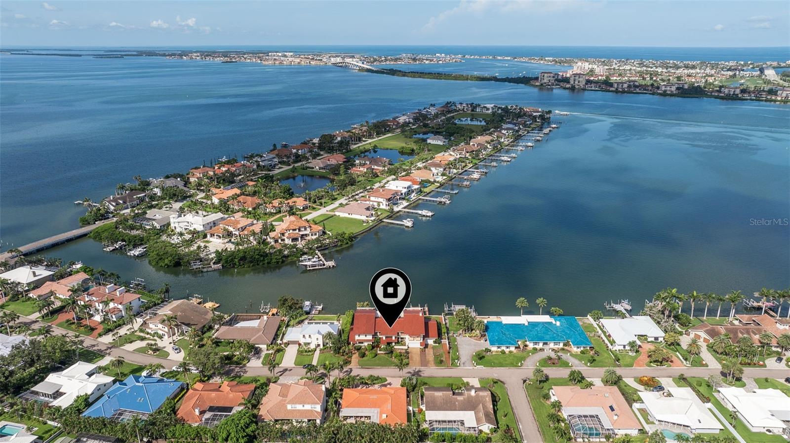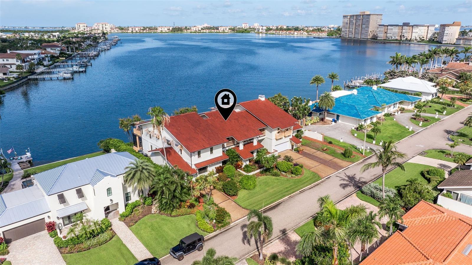 Esta casa de 8677 pés quadrados oferece um amplo espaço com potencial de personalização. O primeiro andar possui um quarto de família com lareira, bar molhado e geladeira de vinho, uma cozinha com uma despensa e canto de café da manhã, salas de jantar e estar formal, uma lavanderia e um estudo/covil. Uma suíte de sogro com entrada privada, cozinha, sala de estar, meia banheira no térreo e um quarto no andar de cima, banheiro completo e closet no segundo andar. No andar de cima, além da suíte do sogro, há quatro quartos, cada um com um banheiro privativo e entra no armário. A suíte primária do quarto tem mais de 1000 pés quadrados, com dois banheiros completos (um com chuveiro, um com uma banheira de jardim de hidromassagem), dois armários, um estudo particular e uma vaidade. Tanto os quartos primários quanto os segundos têm vistas para a água e varandas privadas. Os outros dois quartos no andar de cima têm banheiros completos e armários. A área externa inclui uma piscina e banheira de hidromassagem sob um gabinete de tela, uma área de jantar sombreada e um banheiro do pátio com chuveiro. A propriedade possui duas garagens: uma garagem para dois carros e uma maior para um barco, RV ou 2-3 carros em conjunto. Uma doca com um elevador de barco fornece acesso a Tampa Bay e destinos de barco nas proximidades como Fort Desoto Park, Skyway Bridge, Golfo do México e Ilha Anna Maria. A casa também fica perto de algumas das melhores praias do mundo, no centro de St. Pete, Sarasota e vários aeroportos.