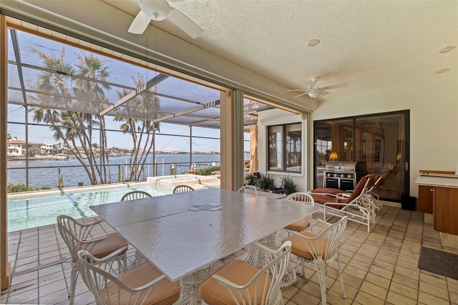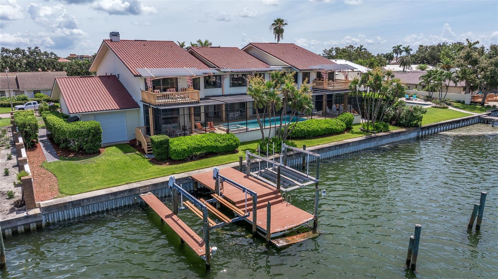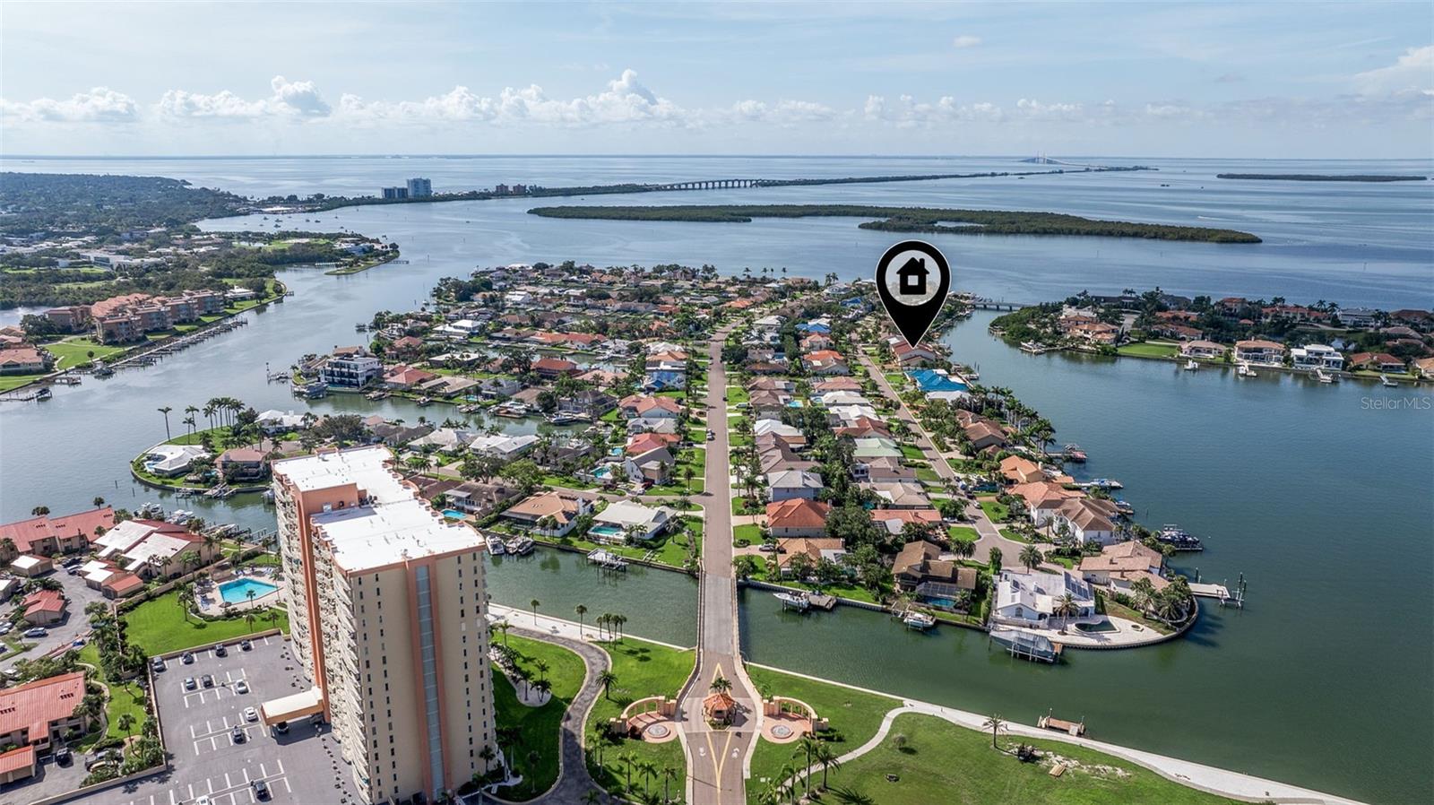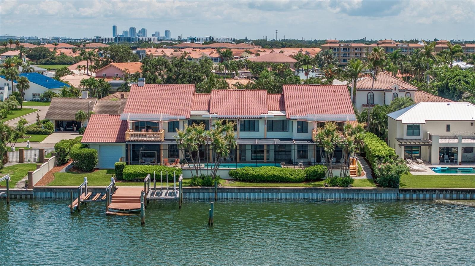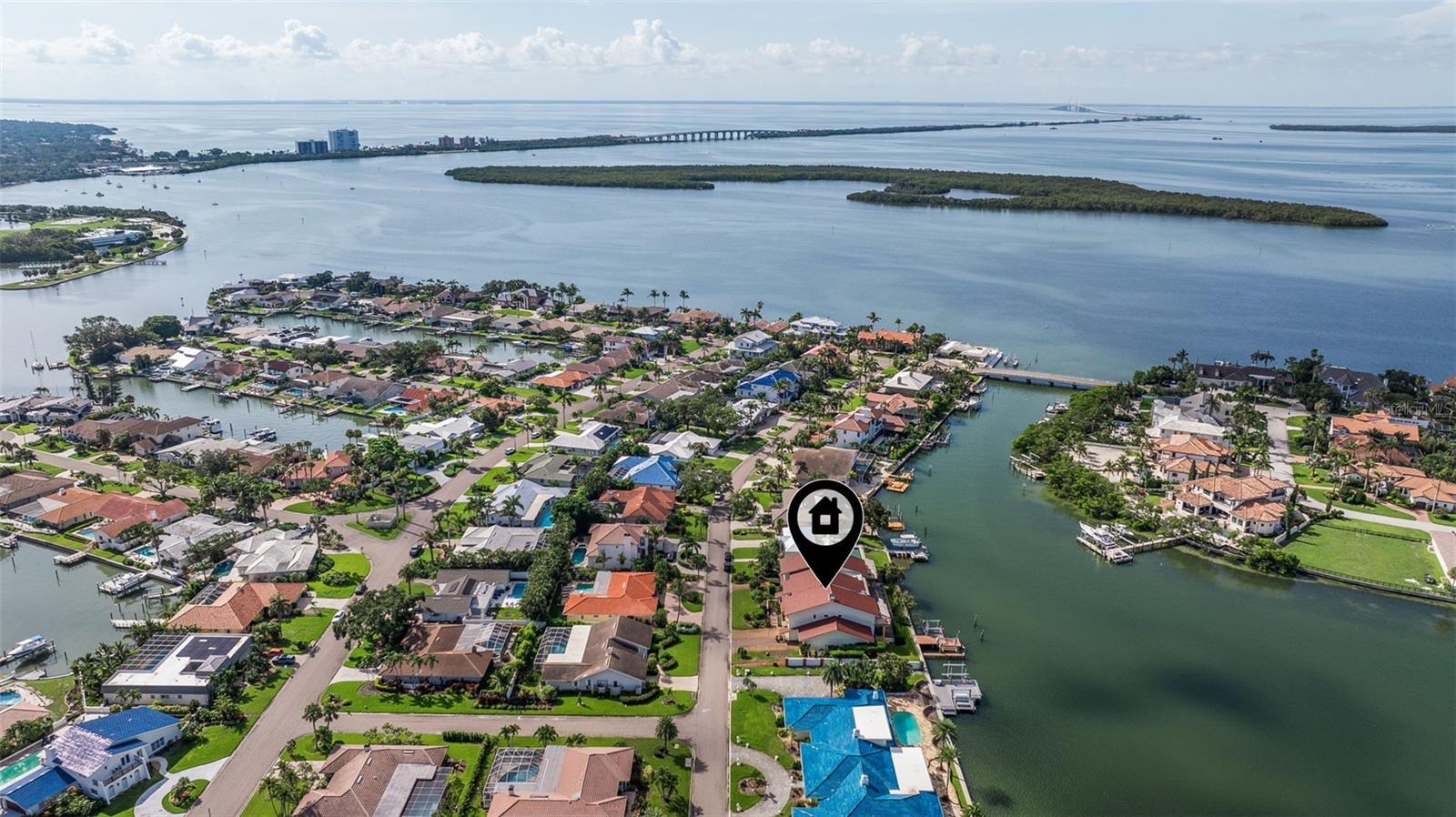 Esta casa de 8677 pés quadrados oferece um amplo espaço com potencial de personalização. O primeiro andar possui um quarto de família com lareira, bar molhado e geladeira de vinho, uma cozinha com uma despensa e canto de café da manhã, salas de jantar e estar formal, uma lavanderia e um estudo/covil. Uma suíte de sogro com entrada privada, cozinha, sala de estar, meia banheira no térreo e um quarto no andar de cima, banheiro completo e closet no segundo andar. No andar de cima, além da suíte do sogro, há quatro quartos, cada um com um banheiro privativo e entra no armário. A suíte primária do quarto tem mais de 1000 pés quadrados, com dois banheiros completos (um com chuveiro, um com uma banheira de jardim de hidromassagem), dois armários, um estudo particular e uma vaidade. Tanto os quartos primários quanto os segundos têm vistas para a água e varandas privadas. Os outros dois quartos no andar de cima têm banheiros completos e armários. A área externa inclui uma piscina e banheira de hidromassagem sob um gabinete de tela, uma área de jantar sombreada e um banheiro do pátio com chuveiro. A propriedade possui duas garagens: uma garagem para dois carros e uma maior para um barco, RV ou 2-3 carros em conjunto. Uma doca com um elevador de barco fornece acesso a Tampa Bay e destinos de barco nas proximidades como Fort Desoto Park, Skyway Bridge, Golfo do México e Ilha Anna Maria. A casa também fica perto de algumas das melhores praias do mundo, no centro de St. Pete, Sarasota e vários aeroportos.