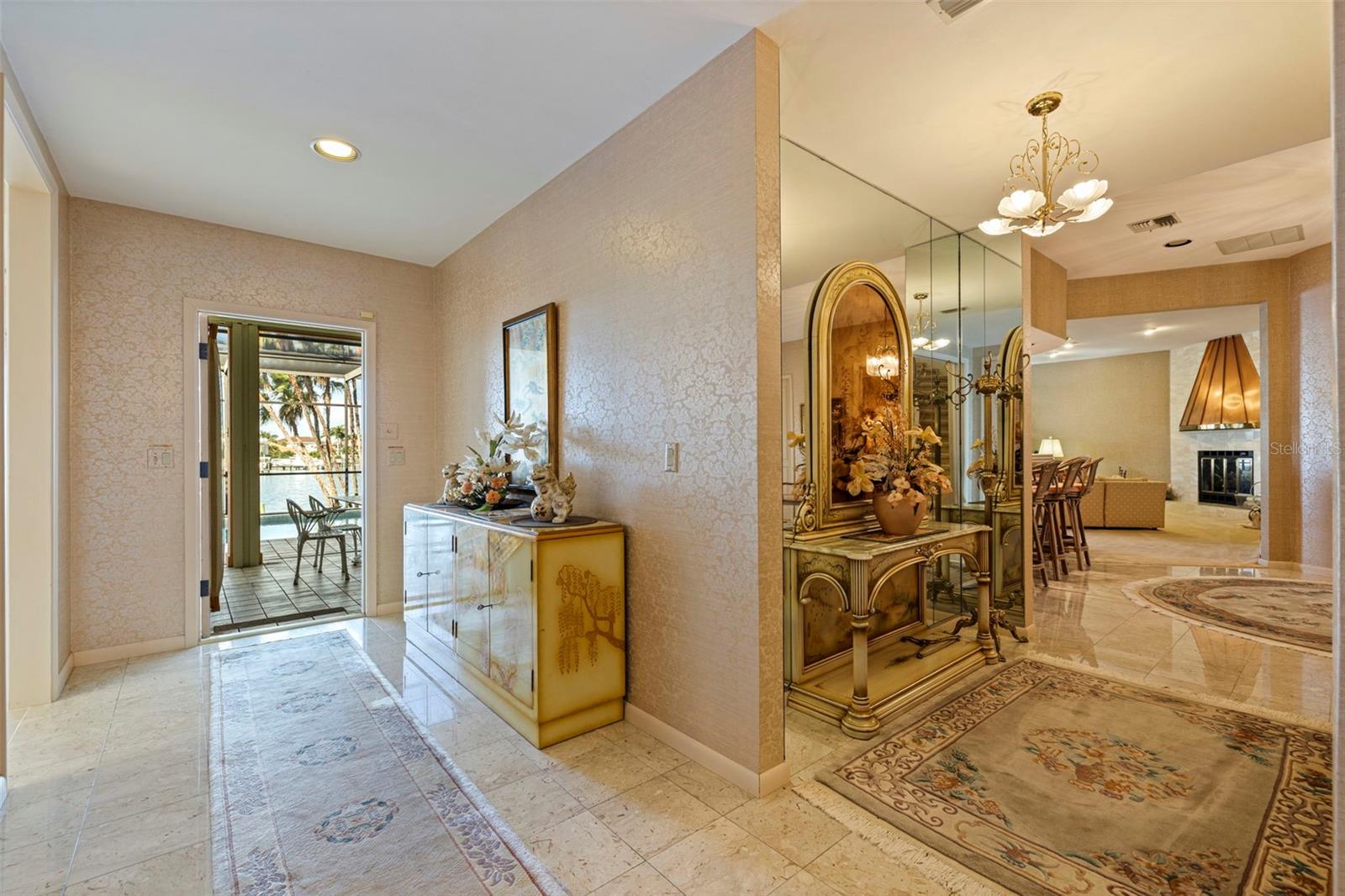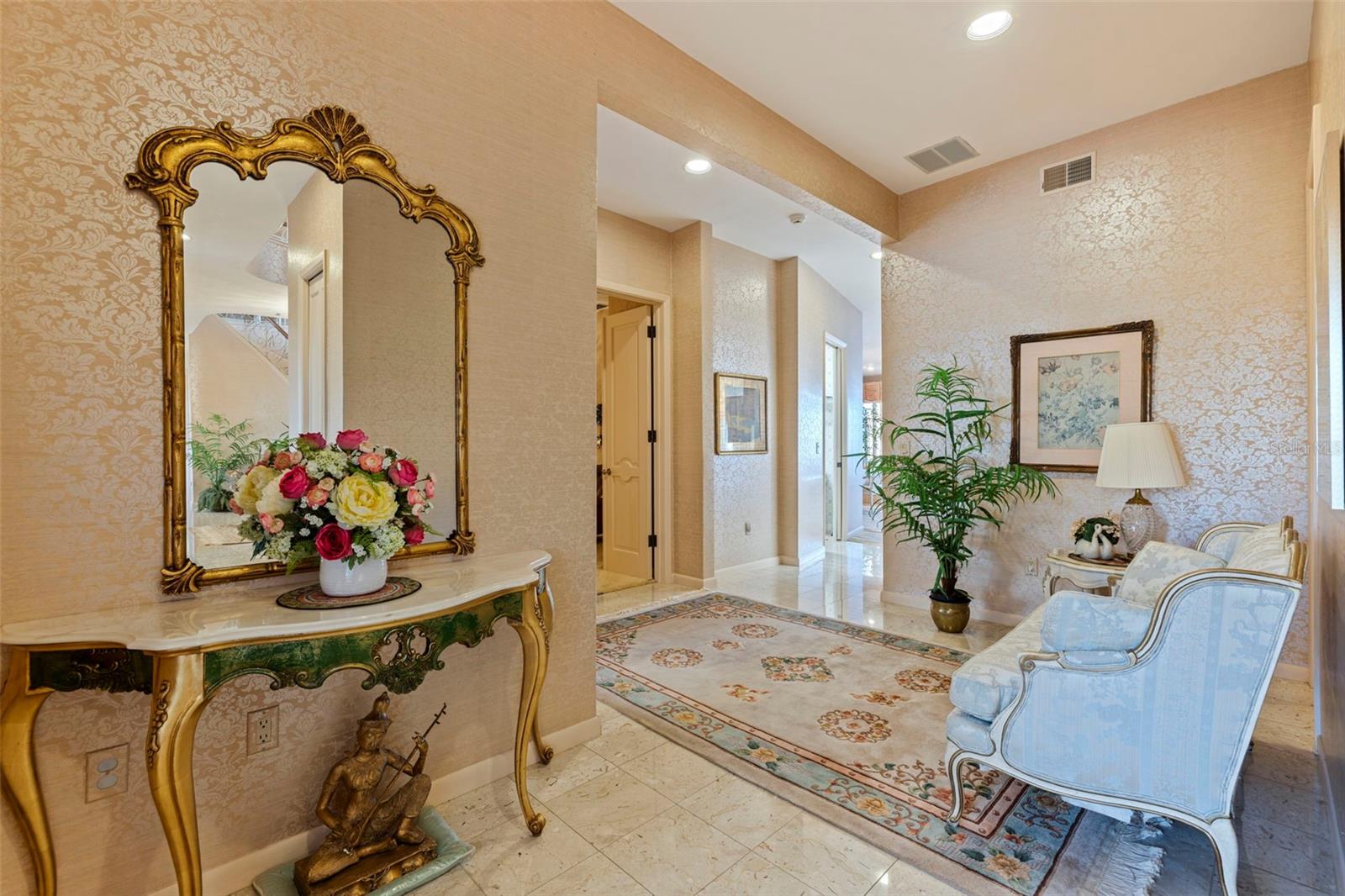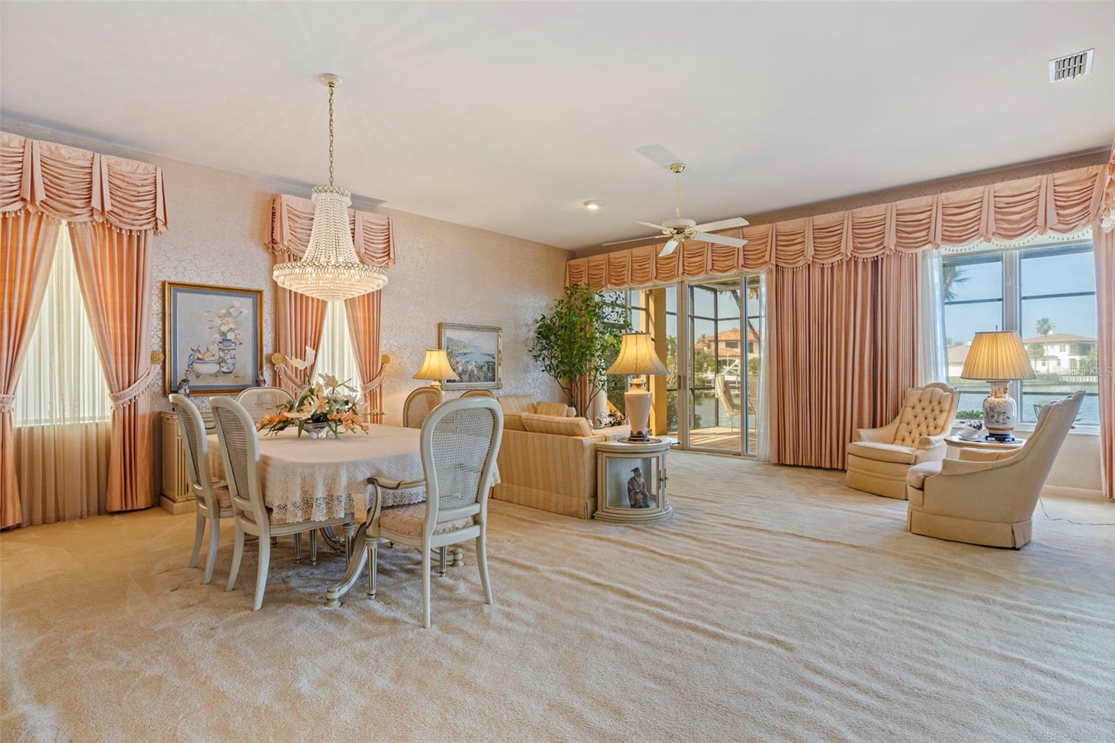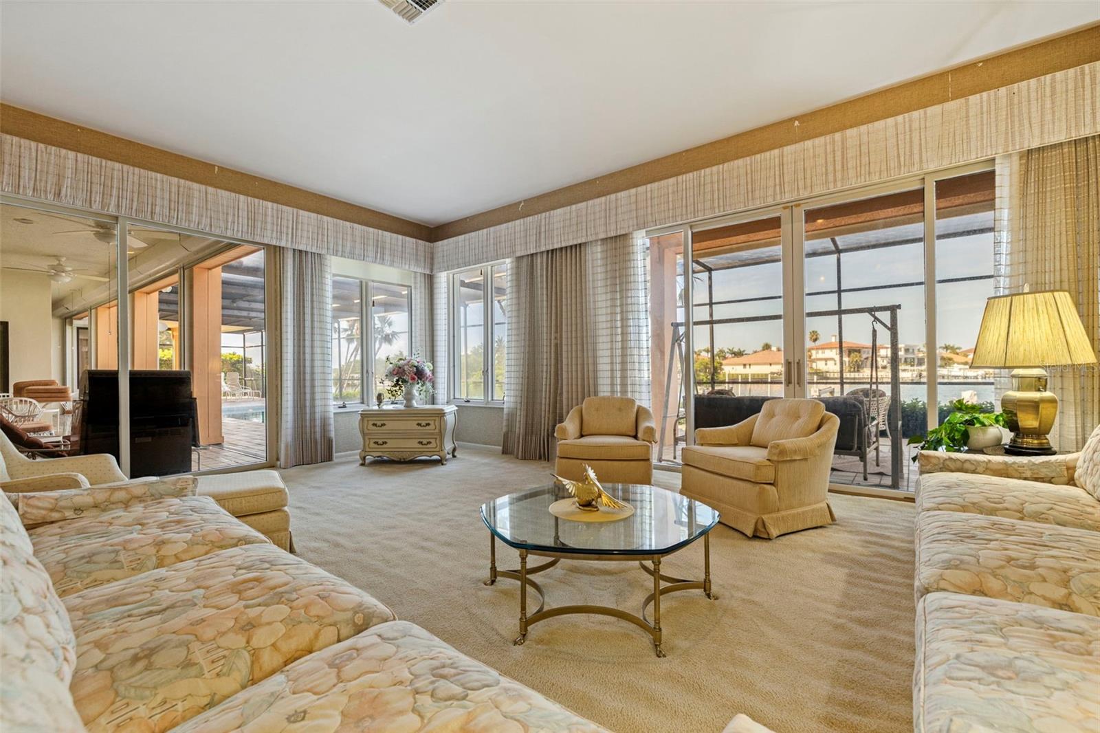 Esta casa de 8677 pés quadrados oferece um amplo espaço com potencial de personalização. O primeiro andar possui um quarto de família com lareira, bar molhado e geladeira de vinho, uma cozinha com uma despensa e canto de café da manhã, salas de jantar e estar formal, uma lavanderia e um estudo/covil. Uma suíte de sogro com entrada privada, cozinha, sala de estar, meia banheira no térreo e um quarto no andar de cima, banheiro completo e closet no segundo andar. No andar de cima, além da suíte do sogro, há quatro quartos, cada um com um banheiro privativo e entra no armário. A suíte primária do quarto tem mais de 1000 pés quadrados, com dois banheiros completos (um com chuveiro, um com uma banheira de jardim de hidromassagem), dois armários, um estudo particular e uma vaidade. Tanto os quartos primários quanto os segundos têm vistas para a água e varandas privadas. Os outros dois quartos no andar de cima têm banheiros completos e armários. A área externa inclui uma piscina e banheira de hidromassagem sob um gabinete de tela, uma área de jantar sombreada e um banheiro do pátio com chuveiro. A propriedade possui duas garagens: uma garagem para dois carros e uma maior para um barco, RV ou 2-3 carros em conjunto. Uma doca com um elevador de barco fornece acesso a Tampa Bay e destinos de barco nas proximidades como Fort Desoto Park, Skyway Bridge, Golfo do México e Ilha Anna Maria. A casa também fica perto de algumas das melhores praias do mundo, no centro de St. Pete, Sarasota e vários aeroportos.