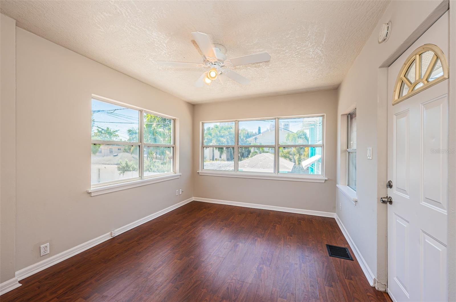 Caminhe até o centro da cidade! St. Pete Historic “Old NE” Canto de canto com garagem para 2 carros em tandem adjacente-com um apartamento de aluguel de 1 Bedrm/ 1 Bath (590 pés quadrados) no topo para obter uma renda adicional! Viva o charme do passado neste fofo casa personalizada de 2 andares, clássicos e construídos de 1925, com 4 quartos e 2 banheiros (1566 pés quadrados). A varanda da frente "vizinho" (22 x7) recebe os hóspedes para "ficar e sentar um feitiço". Uma lareira a lenha na sala combina com a atmosfera quente e confortável desta casa. O banheiro do 1º andar tem uma banheira de clawfoot e há conexão de lavanderia com lavadora e secadora no corredor do andar de baixo e uma entrada lateral. O quarto principal no andar de cima, com teto inclinado encantador e closet, leva a uma área ou solário de 11x6 com sua própria parede a/c. Um banheiro grande remodelado no andar de cima apresenta pias duplas. Todas as janelas (recentemente com manutenção) foram substituídas em 1998, teto de telha em 2019 (calhas instaladas), não há abridor de porta de garagem (manual). Outras características incluem uma caixa de painel elétrico mais recente (1999) com fiação de cobre e 200 amperes, 3 unidades A/C "York" de 2016, 2018, 2020, tinta interior fresca, ventiladores de teto por toda parte e um aquecedor de água quente mais recente. O apartamento de garagem “fofo como um botão” possui pisos laminados e está pronto para um novo inquilino ou membro da família. Dois Gazebos, um na área de fundos muito particulares, paredados, e um ao longo do lado sul do convite em casa para relaxamento e socialização ao ar livre. Há uma vaga de estacionamento no local em frente à garagem, e o proprietário recebe 3 passes para os hóspedes para estacionar ao longo das estradas mágicas do antigo nordeste, com suas calçadas de bloqueio de hexadequim. Esta propriedade está situada 27 pés acima do nível do mar (sem zona de inundação) na chamada "zona verde"-amarrada ao hospital do centro com menos perdas de energia durante as tempestades. Venha dar uma olhada nessa propriedade adorável - não deixe a oportunidade escapar para possuir sua própria fatia do céu tão perto da orla de St. Pete e da área vibrante do centro da cidade!