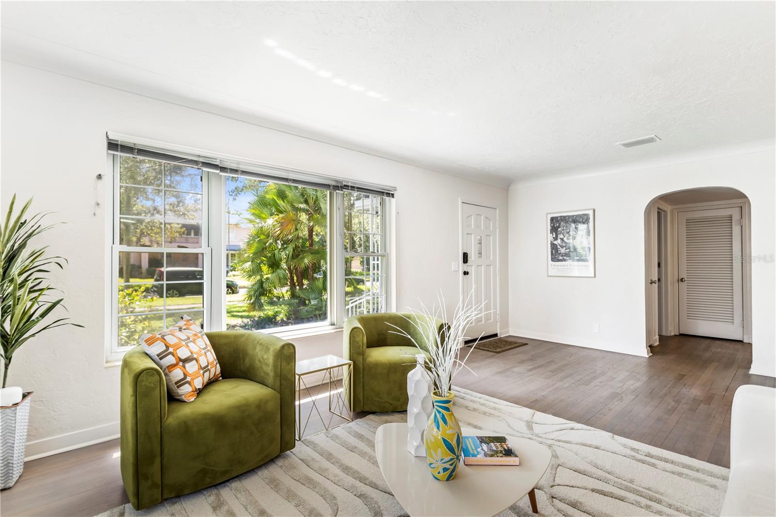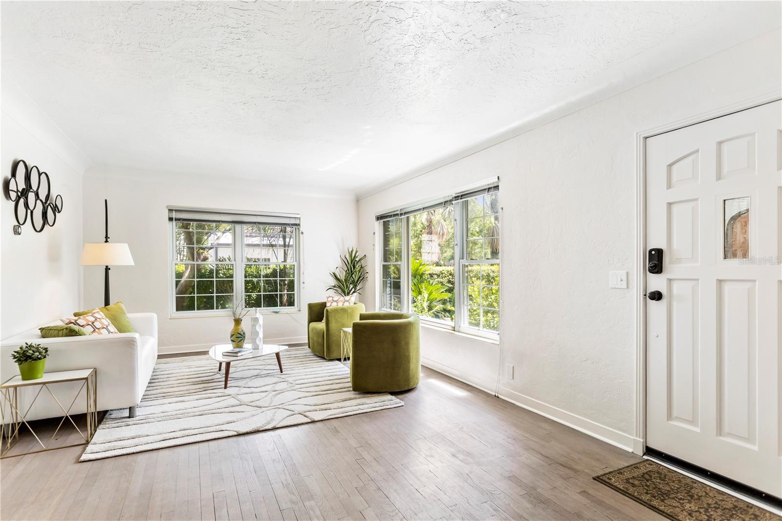 NOVO TELHADO. Localização de estreia e sem intrusão de água dos furacões Helene ou Milton! Sinta a brisa à beira-mar a um quarteirão do Coffee Pot Bayou, na cobiçada seção Granada Terrace, no muito procurado Old Northeast! Esta casa moderna clássica de meados do século 1950 é a casa dos sonhos de "Tech Savvy", "Chef" e "Jardineiro", com um sistema inteligente de automação residencial para toda a casa, uma cozinha retrô e um jardim comestível orgânico. Situada em pouco mais de 1/4 de acre com muito espaço para adicionar ou reconstruir, esta propriedade oferece muito espaço verde - a propriedade é realmente uma raridade no bairro. O interior apresenta uma mistura de acabamentos sofisticados do período vintage e retrô cuidadosamente selecionados por seu atual proprietário, ao mesmo tempo que combina as conveniências modernas de hoje. O quintal é o sonho de qualquer jardineiro, com um amplo jardim orgânico acentuado por caminhos iluminados por tijolos, onde você encontrará um oásis de plantas comestíveis, frutas e flores, todas plantadas em solo profundo, rico e orgânico saudável. Cumprimente seus convidados na convidativa sala de estar com tetos originais, arcos de época e pisos de madeira de carvalho que foram meticulosamente restaurados com acabamento cinza fosco para um toque moderno. Divirta-se na sala de jantar dedicada ou na cozinha "retrô" com capacidade para três pessoas na ilha e duas perto da lareira aconchegante. Os destaques da cozinha incluem armários modernos de madeira maciça de estilo europeu, equipados com gavetas de enrolar, temperos e utensílios, armazenamento de despensa, eletrodomésticos vintage Big Chill, ferragens e iluminação vintage, azulejos de metrô, bancadas de quartzo e grandes azulejos de mosaico, tão exclusivos para casas de meados do século na Flórida. Trazer mantimentos é muito fácil na garagem anexa para dois carros com ótimo espaço de armazenamento. No andar de baixo estão os dois quartos originais com armários de cedro e charmosos banheiros de época. No andar de cima, você encontrará uma espaçosa suíte principal com vista para o terraço com vista para o quintal e uma vista panorâmica de Coffee Pot Bayou. Além do quarto grande, há dois closets/escritório em casa e o incrível banheiro possui pias e pias duplas, um box amplo com vários chuveiros e uma banheira de imersão separada. Experimente a vida interna/externa fora da cozinha na varanda fechada com tela com acesso ao quintal e uma banheira de hidromassagem/spa aquecida a gás. Muito espaço para adicionar uma piscina, ao mesmo tempo que oferece amplo estacionamento fora do beco, na garagem para dois carros ou na garagem para vários carros. Agende uma exibição privada hoje para ver um exemplo brilhante de combinação de ontem com hoje! Não demore em viver o "estilo de vida da Flórida" com uma caminhada fácil até a orla para observar peixes-boi e golfinhos ou suba na calçada para andar de bicicleta no centro da cidade e apreciar a vibrante St. Pete!