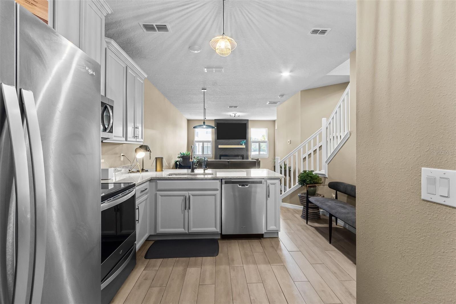 Viva no coração do Condado de Pinellas - alto e seco em uma zona de inundação - nesta casa de luxo de 2022 construída. Localizado em um condomínio fechado, esta casa não é apenas "melhor que nova", é carregada com atualizações que você não encontrará nos modelos Builder e tem um preço bem abaixo de US $ 500 mil. Desde o momento em que você suba a entrada privada lindamente paisagística, você sentirá os cuidados e a qualidade que entraram em todos os detalhes. O design certificado eficiente de energia inclui uma cozinha gourmet com utensílios inoxidáveis de hidromassagem, bancadas de quartzo de última geração e armários de madeira maciça. Um amaciador de água novo e um sistema de osmose reversa oferece a você água macia e pura por toda parte. O layout aberto é perfeito para entretenimento, se você está reunido em torno da lareira elétrica embutida ou estendendo a festa para o lanai exibido com ventilador de teto de grau marítimo e ladrilho elegante. Sua suíte primária está convenientemente no nível principal, com armários duplos, pisos de ladrilhos deslumbrantes e uma suíte de spa com uma vaidade dupla, prateleiras personalizadas e acabamentos de luxo. No andar de cima, você encontrará mais dois quartos, um banheiro completo e um loft versátil - ideal para um escritório em casa, sala de jogos ou espaço flexível. A garagem é uma peça em si, com pisos de revestimento de integridade premium que superam o epóxi tradicional. Um termostato de duas zonas mantém você confortável o ano todo, e a casa é construída com os mais novos padrões de furacão para tranquilidade. Traga seus cães grandes! Esta comunidade oferece uma piscina brilhante, clube e espaço verde - tudo com restrições mínimas de tamanho/raça. E a localização? Imbatível. 10 minutos para o centro de St. Pete, 15 minutos para St. Pete Beach, 20 minutos para o Aeroporto Internacional de Tampa e MacDill AFB Você estará ao seu alcance - praias, restaurantes, compras, artes e entretenimento na ponta dos dedos.