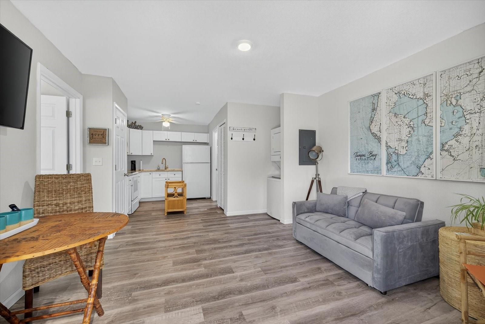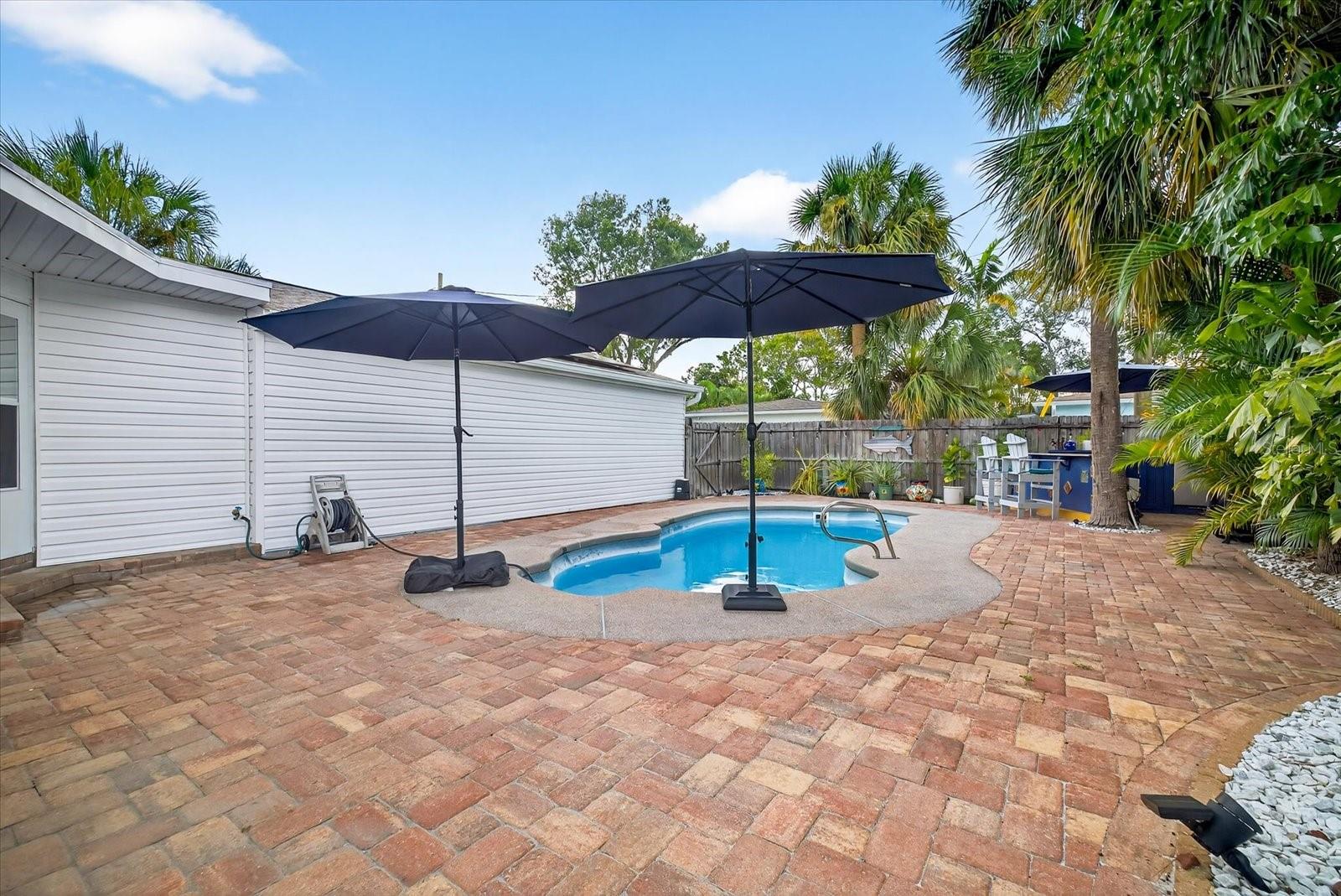 Localizado no desejável bairro de Pasadena Estates, esta casa atualizada de 2 quartos e 1 banheiro inclui uma suíte de sogro isolada com sua própria entrada privada, 1 quarto, 1 banheiro e uma cozinha completa. A poucos minutos de St. Pete Beach e a uma curta distância de carro do centro de São Petersburgo, o local oferece acesso conveniente a compras, jantares, parques e transporte público. A casa principal possui pisos atualizados, cozinha atualizada e banheiros modernizados. O espaço ao ar livre é perfeito para entretenimento, com um espaçoso pátio e piscina de entrada aquecida cercada por jardins paisagísticos. As atualizações eficientes em termos de energia incluem painéis solares totalmente pagos (instalados 2021), um telhado 2020 com isolamento e um novo sistema HVAC instalado em 2023. Oferecendo conforto, flexibilidade e um local privilegiado, esta propriedade está pronta para desfrutar.
