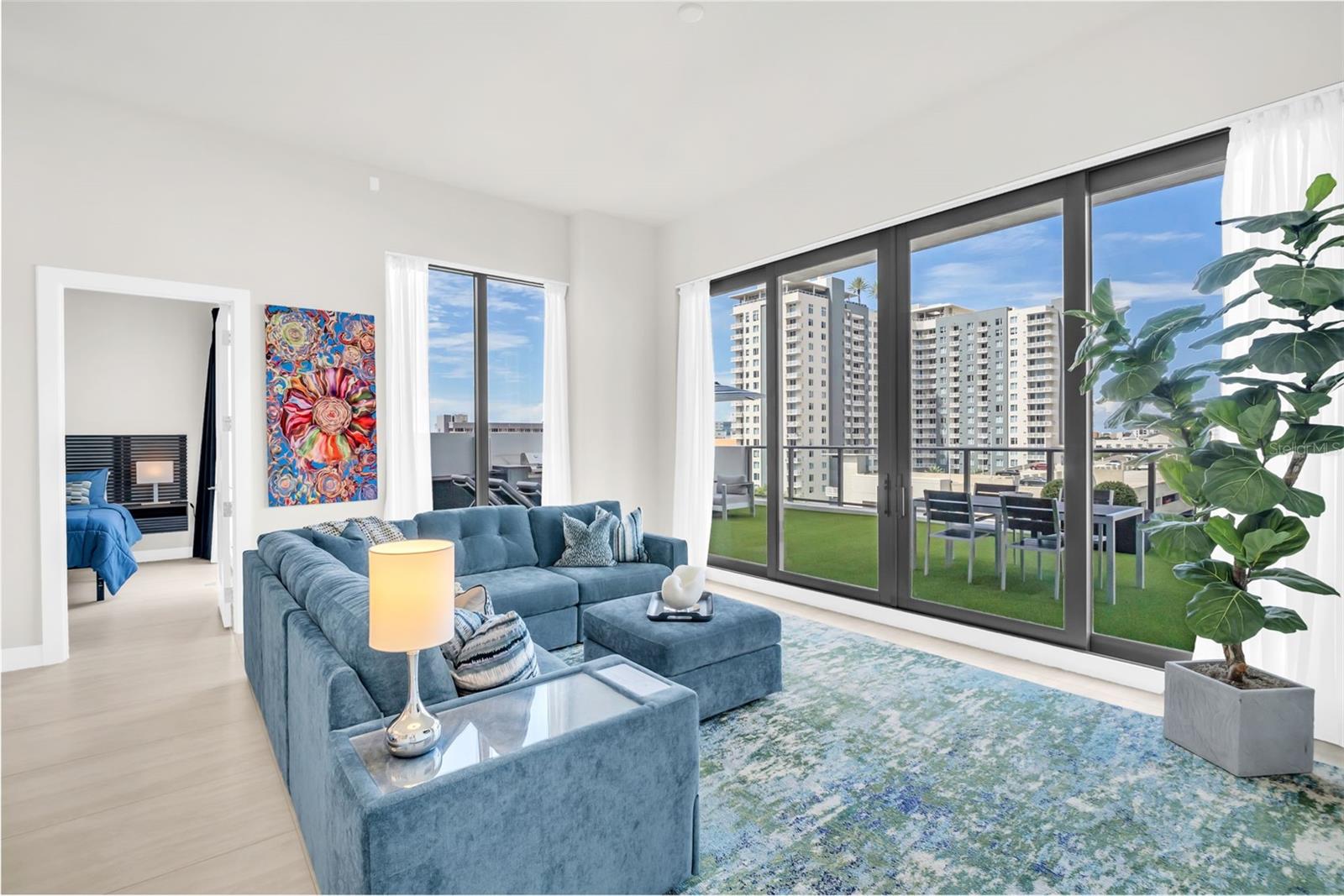 Vivida excepcional para fora do interior em Saltaire | Raramente disponível residência do terraço Experimente o auge do luxo que vive neste raramente disponível de 2 quartos + Den, residência de 2,5 banheiros em Saltaire, onde os interiores refinados se misturam perfeitamente com um dos espaços de estar ao ar livre mais impressionantes do centro de São Petersburgo. Com 1.667 pés quadrados e oferecido totalmente mobiliado (excluindo obras de arte), esta casa é uma das únicas três residências localizadas diretamente no deck de comodidade, colocando os recursos do estilo de resort de classe mundial a poucos passos da sua porta. No interior, você encontrará tetos de 12 pés, elegantes pisos de ladrilhos de porcelana, iluminação e tratamentos de janelas, criando uma sensação de sofisticação moderna por toda parte. Ambos os quartos incluem cabeceiras embutidas e armários walk-in, enquanto os banheiros inspirados no spa oferecem um retiro sereno. Uma lavanderia bem equipada com armários adicionais adicionando funcionalidade diário. A verdadeira peça central desta casa é seu amplo terraço privado de 1.158 pés quadrados, um santuário urbano raro projetado para entretenimento e relaxamento. Este espaço ao ar livre apresenta o Lush Astroturf, uma cozinha ao ar livre totalmente equipada com churrasqueira, uma mangueira para uma manutenção fácil e móveis ao ar livre de ponta incluídos com a venda. Seja hospedando convidados ou desfrutando de uma noite tranquila sob as estrelas, este terraço oferece um estilo de vida diferente de qualquer outro na cidade. Os recursos adicionais incluem dois (2) vagas de estacionamento e uma unidade de armazenamento controlada pelo clima para maior conveniência. Como morador de Saltaire, desfrute de acesso ao serviço de concierge, um centro de fitness de última geração, piscina no estilo resort e um espetacular terraço comodidades com vistas deslumbrantes de Tampa Bay, Marina's e St Pete Pier. Perfeitamente posicionado no coração do centro de São Petersburgo, esta residência oferece acesso imediato a refeições premiadas, atrações culturais, parques à beira-mar e o vibrante distrito de Marina. estrito.