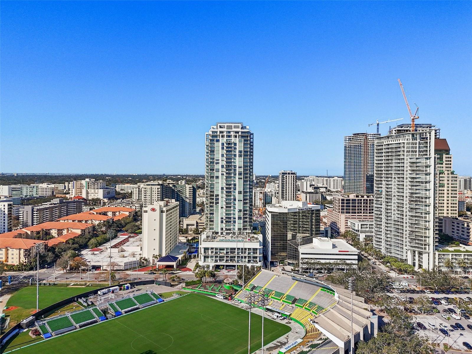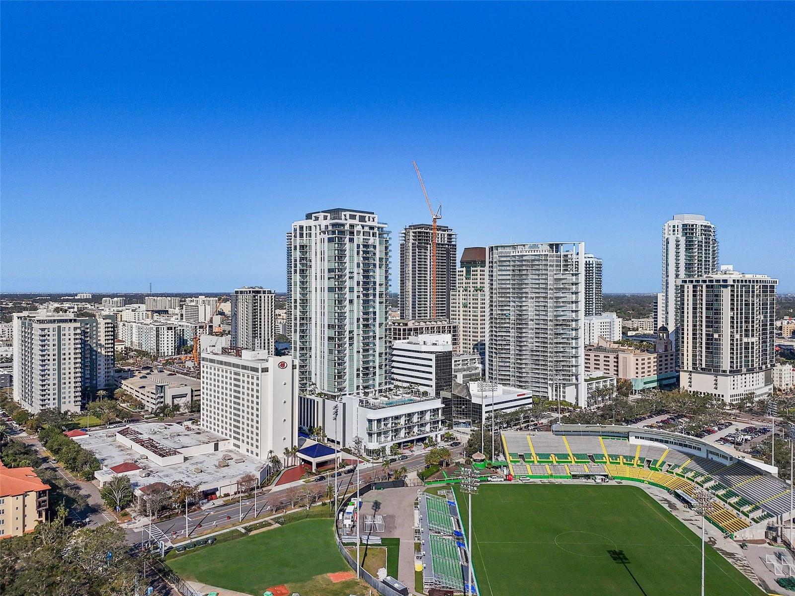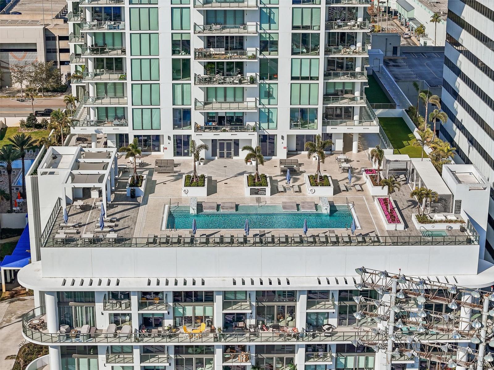 Entre em um mundo de luxo incomparável e design refinado neste condomínio recém-construído de 2 quartos, mais um salão e 2,5 banheiros em Saltaire. Oferecendo impressionantes 1.663 pés quadrados de espaço interior e uma varanda de quase 200 pés quadrados, esta casa é a mistura perfeita de elegância e sofisticação moderna. Com vistas deslumbrantes voltadas para o oeste que abrangem o campo Tropicana e o horizonte da cidade, você desfrutará de vistas deslumbrantes. Com curadoria da aclamada equipe de design local do Bee Studio Design, esta residência apresenta acabamentos personalizados e a melhor atenção aos detalhes. A cozinha gourmet é o sonho de um chef, completa com eletrodomésticos de última geração, bancadas elegantes, backsplash personalizado e uma adega refrigerada combinada com uma elegante área de bar para a melhor experiência de entretenimento. A iluminação de design em toda a casa realça cada espaço, lançando um brilho quente que complementa a estética moderna e chique. O layout espaçoso e arejado flui perfeitamente para as áreas de estar e de jantar, perfeito para relaxamento e entretenimento. A versátil sala oferece infinitas possibilidades, desde um escritório doméstico até uma aconchegante biblioteca de leitura ou sala de mídia. Ambos os quartos espaçosos são criados como um retiro pessoal e privado, completos com amplos closets e luxuosos banheiros privativos com acabamentos da mais alta qualidade. A conveniente lavanderia foi projetada para oferecer maior praticidade e armazenamento, facilitando o dia a dia. Este condomínio excepcional também inclui dois lugares de estacionamento muito procurados e uma arrecadação climatizada para maior comodidade e tranquilidade. As comodidades em estilo resort de Saltaire são incomparáveis. Os residentes desfrutam de um impressionante terraço com piscina no 7º andar com vista panorâmica de Tampa Bay, uma academia de ginástica de última geração, elegantes salas de clube e um parque para cães para seus companheiros peludos. Perfeitamente situado no coração do centro de São Petersburgo, você terá acesso imediato a parques à beira-mar, restaurantes sofisticados, lojas sofisticadas e à energia vibrante da vida na cidade. Este é o estilo de vida elevado no centro da cidade que você estava esperando!
