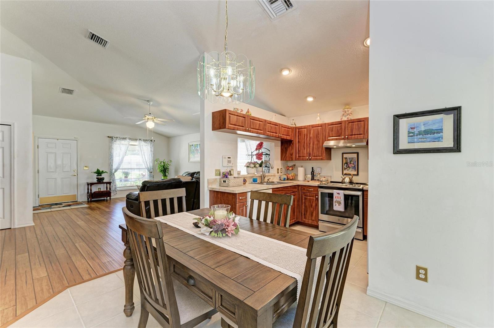 MOVIMENTO PRONTO DE 3 CASE/2 BATH HOME/2 CARAGEM GARAGEM/PARTE CENTENDO-Estilo, conforto e armazenamento! Bem-vindo a esta casa lindamente mantida de 3 quartos e 2 banheiros, construída em 2006 e cheia de recursos que tornam a vida fácil e agradável. • 1,330 sq. ft. of living space with high cathedral ceilings for a light, open feel • 3 Bedroom and 2 Baths • New Bamboo flooring – beautiful, long-lasting and easy to maintain • Spacious 2-car garage (418 sq. ft.) with storage shelves & attic for tons of extra storage • Separate laundry room – Practical and Quiet. Prateleiras extras. • Covered front porch & rear patio for relaxing or entertaining • Fenced backyard with gardens and a small shed for tools and storage - Perfect for little ones and/or pets Kitchen includes: • Glass-top stove with matching vent • Refrigerator & dishwasher included • LOTS Of Beautiful Cabinets & Pantry Closet Located minutes from I-275 with quick access to Sarasota & Tampa, in a established area with no flood or hurricane damage in over 135 years! Não é necessário seguro contra inundações. Esta casa combina estilo de ponta, funcionalidade e paz de espírito '