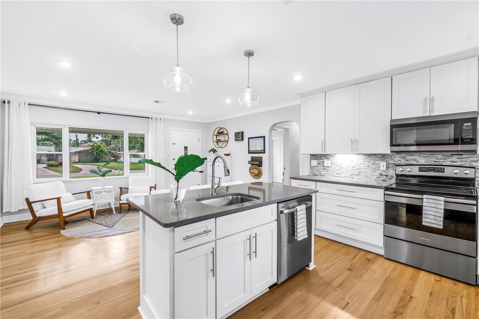 Bem-vindo a esta casa lindamente renovada de 4 quartos e 2 banheiros, com uma planta dividida cuidadosamente em um grande lote de 1/4 acre em Lakewood Estates. Aproveite o fluxo contínuo das áreas de estar abertas, destacadas pelos acabamentos modernos, cozinha atualizada e luz natural abundante. A suíte master possui um novo banheiro privativo e closet. Mais três quartos e banheiro no hall possuem armazenamento inteligente e piso de madeira. Saia para a grande varanda em balanço - um local ideal para relaxar e se divertir enquanto desfruta do ar fresco em qualquer clima. O amplo quintal é uma verdadeira raridade ao ar livre - um jardim florescente pronto para o seu polegar verde, um grande galpão de armazenamento e um charmoso galinheiro, além de ainda mais quintal para fazer o seu! Localizado no alto e seco, fora das zonas de inundação, também é ecologicamente correto, com painéis solares para contas de energia elétrica super baixas durante todo o ano e pré-cabeado para conexão de gerador. Localizado na esquina do St. Petersburg Country Club e a poucos minutos da I-275, do centro de St Pete e das praias do Golfo. Esta casa combina conforto, estilo e praticidade, tornando-a um refúgio perfeito para a vida moderna.