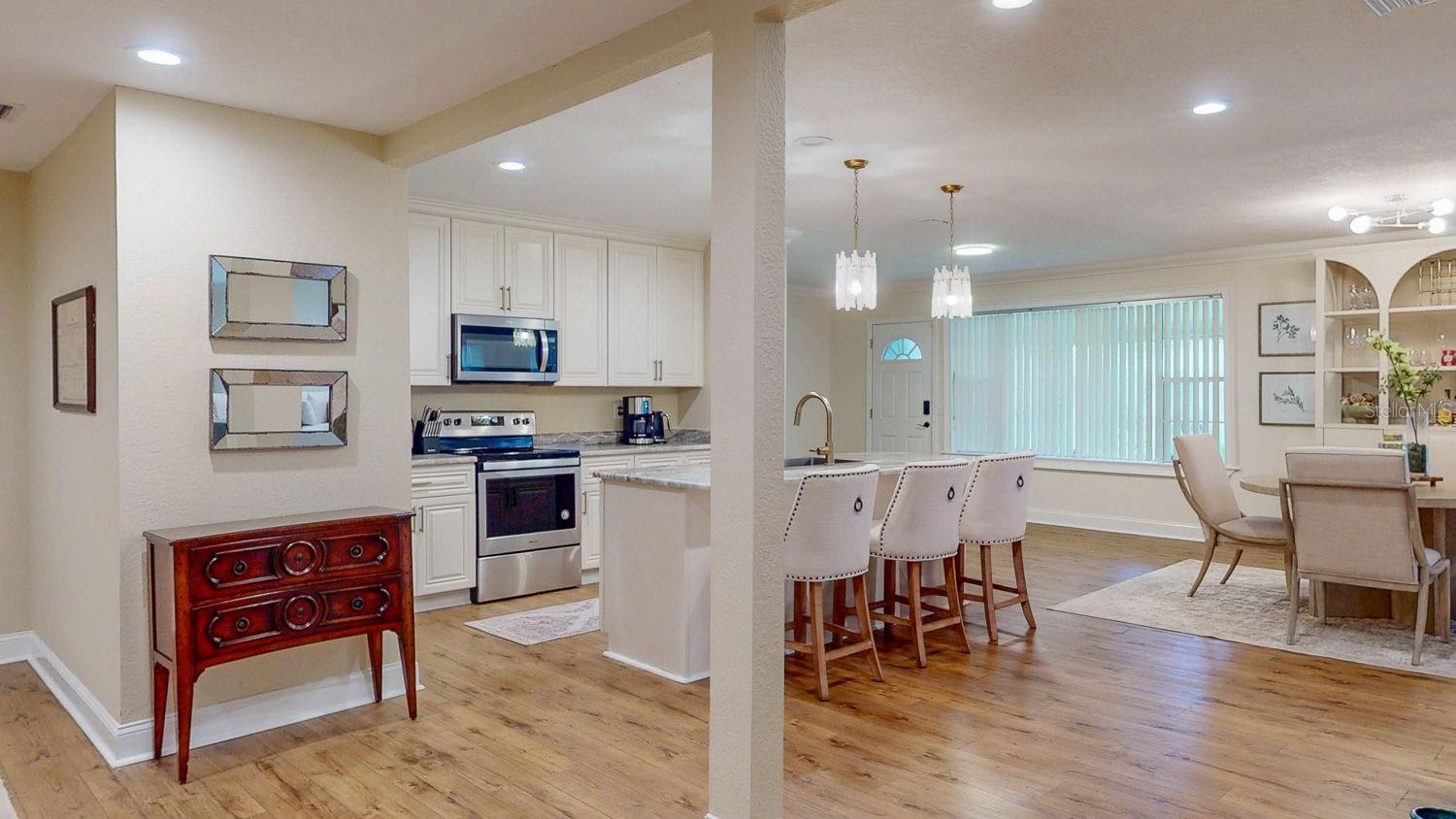 Uma ou mais fotos foram praticamente encenadas. Casa encantadora e espaçosa na zona não-ingestão de St. Pete Localização, pronta para baixo, lote enorme. Bem-vindo a esta espaçosa casa de 3 quartos e 2 banheiros, localizada na área altamente desejável de São Petersburgo. Posicionado perfeitamente a poucos minutos do centro da cidade e com acesso rápido à rodovia, esta casa oferece conveniência e proximidade ao pulso da cidade. Entre para descobrir um plano de piso aberto cheio de luz com acabamentos modernos e mais de 2.100 pés quadrados de espaço de estar. Plank de vinil de luxo (look de madeira) Fluxos de piso em toda a casa, criando uma sensação quente e coesa emparelhada com fácil manutenção e limpeza. A cozinha é um verdadeiro destaque-com bancadas de granito, armários de madeira com moldura de coroa e utensílios de aço inoxidável-ideais para a vida divertida e cotidiana. Fica no meio de uma planta aberta e acolhedora. A espaçosa suíte primária oferece um retiro pacífico com um banho privativo e um closet. Existem dois quartos adicionais e um banheiro adicional, com vaidade dupla. Alguns recursos notáveis incluem: 2.117 sf de espaço de estar em um nível, um lote de 1,5x de grandes dimensões, uma grande calçada de pavimentadora (fora do beco), poderia caber em mais de 4 carros, um sistema HVAC de 2019 e um telhado de metal 2014, alpendre em frente e traseiro com alpendios a um aparelho de lavanderia em frente e lavanderia em frente. Nenhuma inundação de furacões Helene ou Milton em 2024 (a casa fica a mais de 15 metros acima do nível do mar). O espaço de estar flexível inclui uma área de estar formal e um lounge aconchegante - perfeito para entreter, relaxar ou trabalhar em casa. O layout da casa oferece conforto, privacidade e fluxo. Você poderia morar a poucos minutos de Crescent Lake Park, lojas locais, grandes redes de varejo, restaurantes, grandes hospitais, praias e o centro de St. Pete. Com fácil acesso ao I-275, os aeroportos internacionais de St. Pete/Clearwater e Tampa estão acessíveis. Todas as informações fornecidas nesta listagem são consideradas precisas, mas o comprador deve conduzir a due diligence do comprador para confirmar a veracidade da mesma para fins do comprador. Uma ou mais fotos foram praticamente encenadas