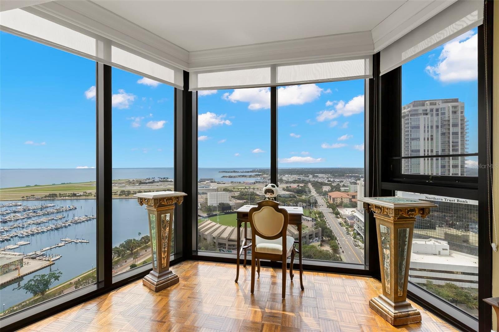 Experimente o luxo à beira -mar neste extraordinário dois quartos, dois banheiros, residência de 2.200 pés quadrados no coração do centro de São Petersburgo. Com 61 pés de janelas abrangentes do chão ao teto, esta casa oferece vistas desobstruídas da Baía de Tampa, capturando o nascer do sol de tirar o fôlego durante o dia e as luzes da cidade brilhantes à noite. Cada detalhe foi meticulosamente com curadoria em uma remodelação personalizada, criando uma planta baixa contínua com elegância atemporal. A cozinha está aberta a uma área de jantar e mostra uma ilha conveniente, bancadas em granito e utensílios de aço inoxidável, com vista para a água de tirar o fôlego como pano de fundo. O Den compartilha as mesmas vistas espetaculares e é uma sala versátil, ideal para um escritório em casa, academia em casa ou espaço divertido. A sala de estar é espaçosa e inclui uma varanda, o lugar perfeito para desfrutar de uma xícara de café ou um copo de vinho, os barcos de vigília vêm e vêm para a marina, e tomar um assento na primeira fila para fogos de artifício sobre a baía. A moldura clássica da coroa combinada com piso de parquet reluzente adiciona camadas de sofisticação, enquanto o armário e o espaço de armazenamento abundantes garantem o estilo e a função. A suíte primária é um retiro privado, com uma parede completa de janelas, espaço para uma área de estar e um grande armário. O banho inspirado no spa da EN Suite apresenta vaidades duplas, pias de bacia de cobre personalizadas e um grande chuveiro. O banho de hóspedes, acessível a partir do quarto e do quarto de hóspedes, inclui uma banheira de imersão profunda. Recursos convenientes adicionais incluem uma lavanderia interior fora da cozinha e uma unidade de armazenamento controlado por clima. Na Bayfront Tower, os moradores desfrutam de comodidades incomparáveis, incluindo estacionamento e concierge 24 horas por dia, 7 dias por semana, um nível social recém-renovado no 28º andar, centro de fitness de última geração, sauna, sala de jogos, biblioteca extensa, piscina na cobertura, pista de caminhada, grades a gás e muito mais. Goste de viver no coração de tudo, apenas passos de restaurantes intermináveis para explorar, eventos esportivos e entretenimento, artes e cultura de classe mundial, um novo píer impressionante, vida noturna vibrante e todos os benefícios da orlagem à beira -mar sem a responsabilidade. Entre em um estilo de vida de elegância e facilidade, é a beira -mar, vivendo o melhor no vibrante centro de São Petersburgo.