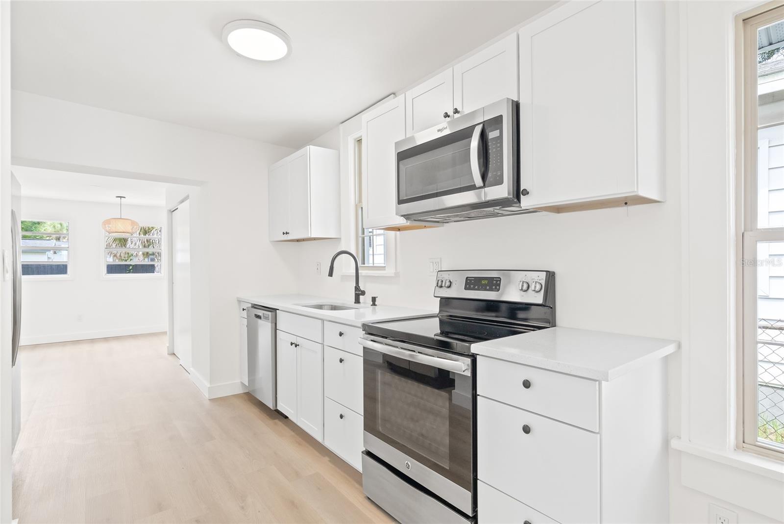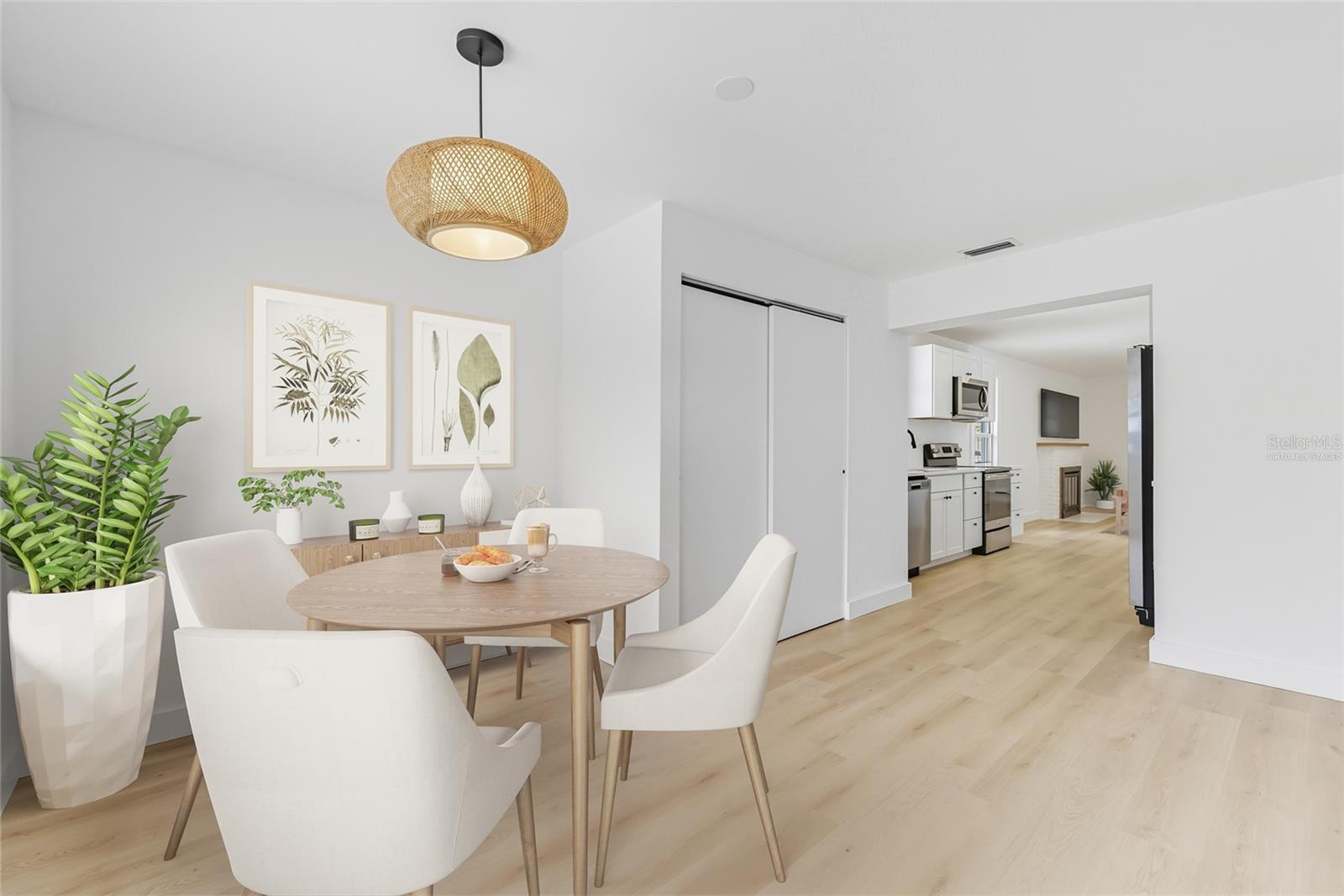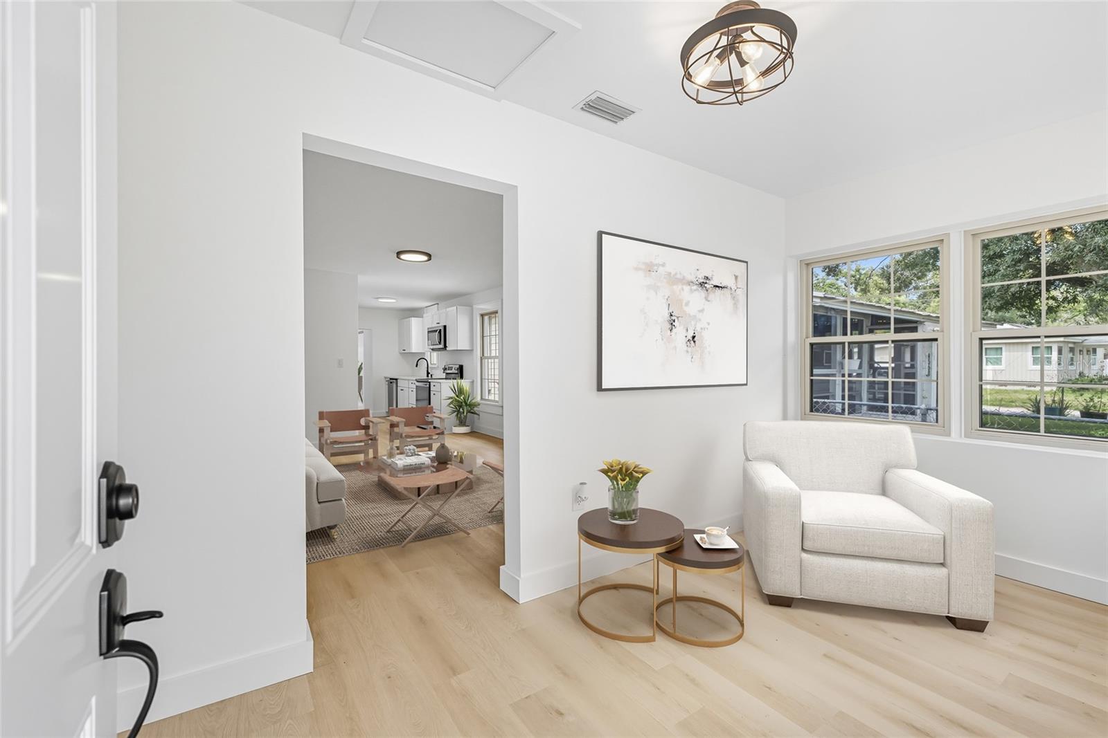 Uma ou mais fotos foram praticamente encenadas. Bem -vindo a esta casa lindamente renovada de 2 quartos, 2 banheiros que combina atualizações modernas com charme aconchegante - tudo em uma zona de inundação! A partir do momento em que você chega, o apelo convidativo da casa define o tom. Passe pela porta da frente em um vestíbulo acolhedor, que se abre para a sala de estar, perfeito para relaxar noites. O layout de conceito aberto leva você à cozinha totalmente atualizada, completa com armários, bancadas e utensílios de aço inoxidável. Logo depois, a área de jantar oferece um ótimo espaço para desfrutar de refeições com amigos ou familiares. A suíte primária é cheia de luz e de tamanho generoso, com um banheiro elegante em suíte. O quarto de hóspedes é igualmente brilhante e arejado, com um banheiro completo nas proximidades. Para maior conveniência, há um armário de lavanderia interno para facilitar o acesso. Voltar, você encontrará uma garagem particular que leva a uma garagem de um carro isolada, além de uma área de pátio ideal para refeições e entretenimento ao ar livre. As principais atualizações incluem um novo telhado, o novo sistema HVAC e um novo aquecedor de água - dando sua paz de espírito nos próximos anos. Localizada a menos de 10 minutos do centro de St. Pete e perto de praias, compras, refeições e atrações locais, esta casa pronta para se mudar é a mistura perfeita de estilo, função e localização. Não perca!