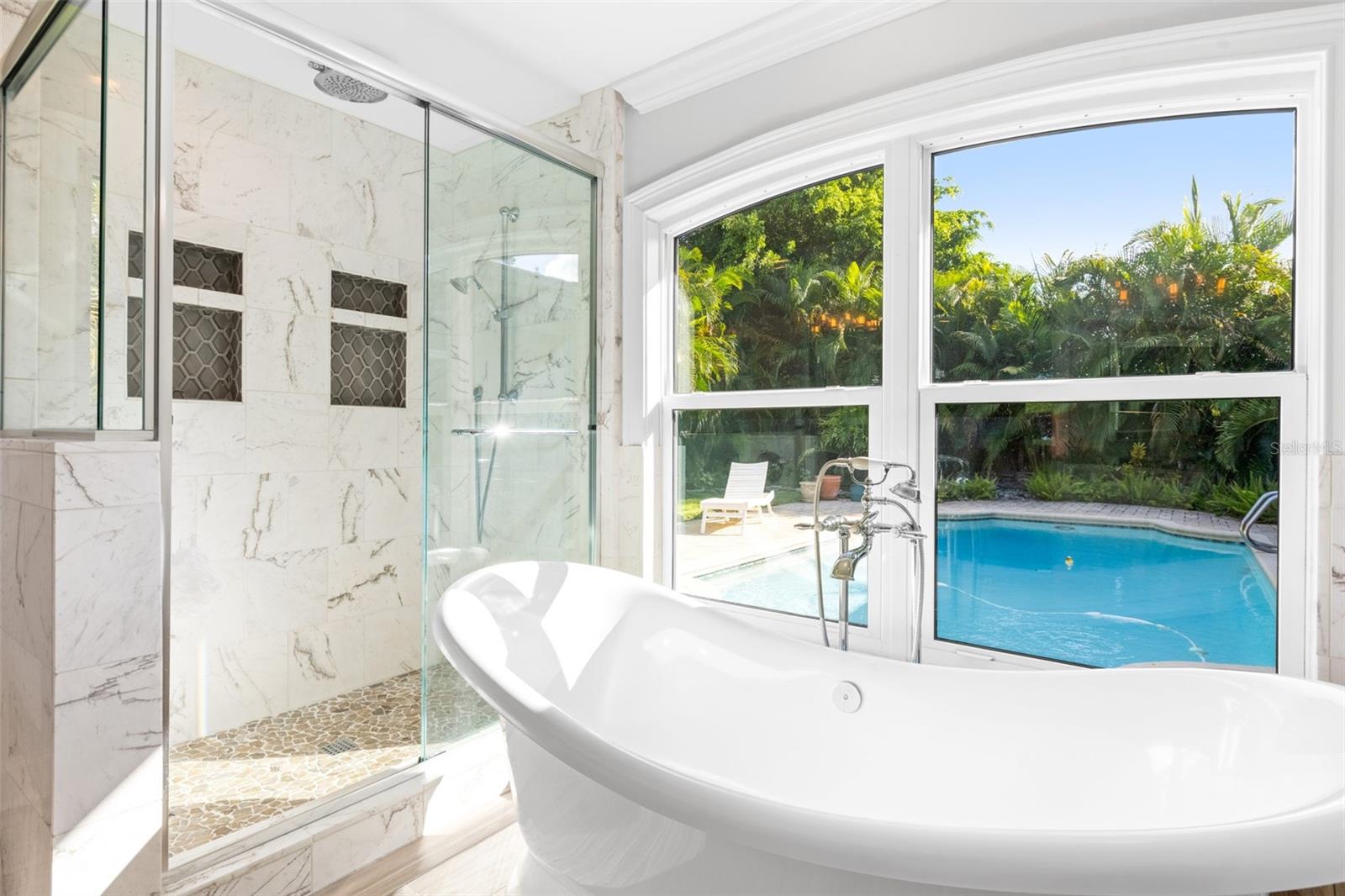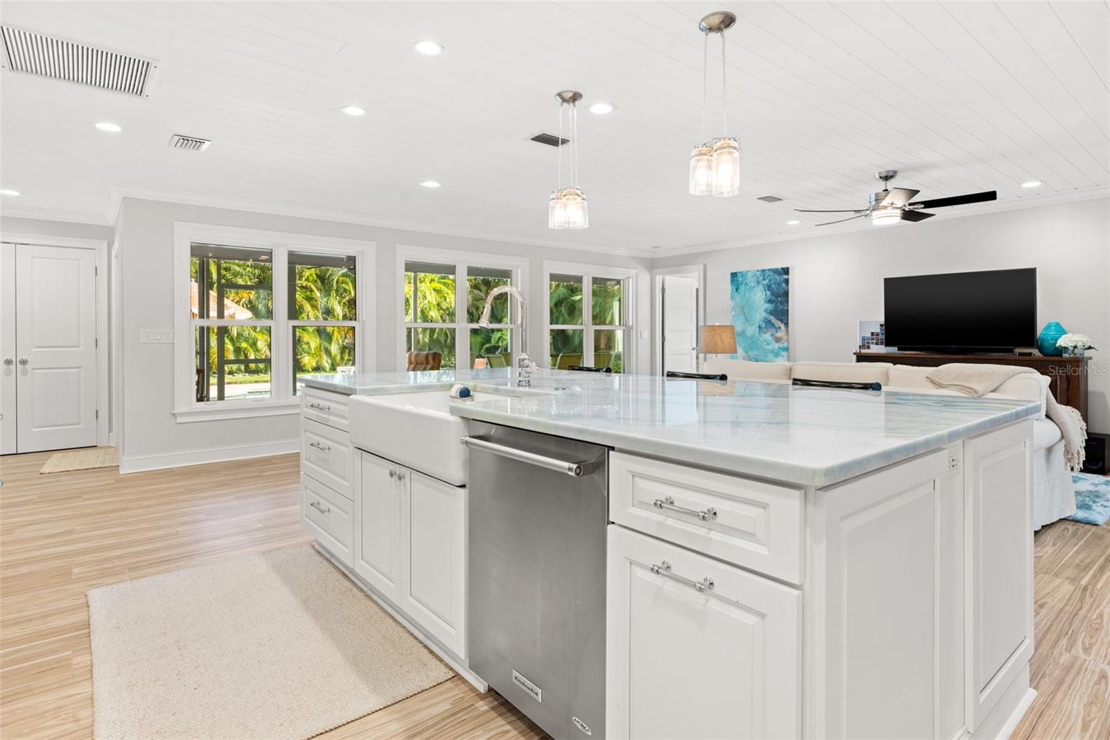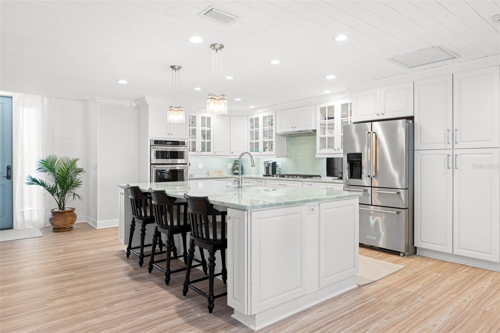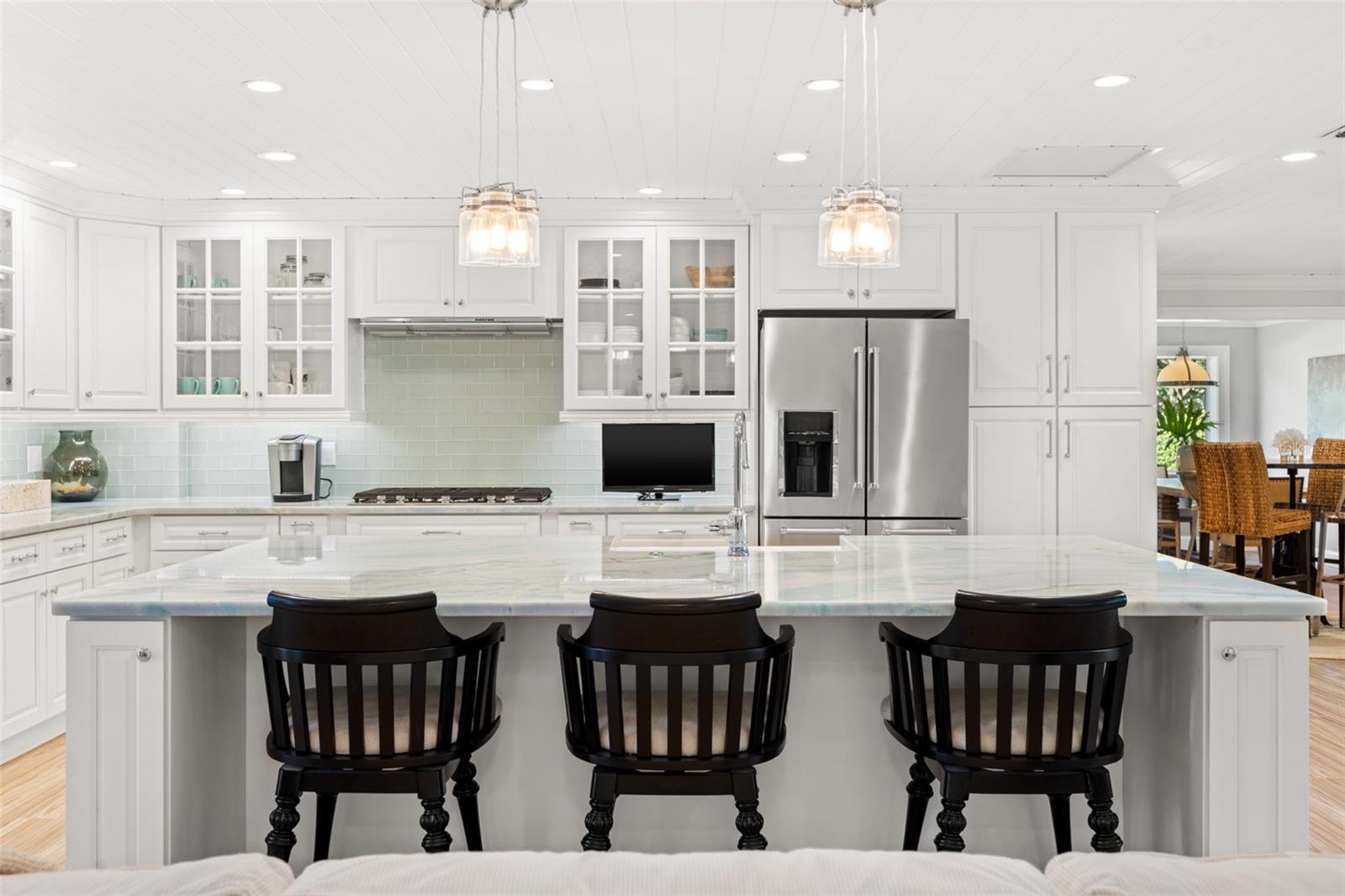 A Broadwater está crescendo, e esta casa de atualização personalizada em casa coloca você no coração de um dos bairros mais emocionantes de São Petersburgo para crescimento, conveniência e vida costeira. Nenhuma pedra foi deixada sobre essa remodelação atenciosa e de cima para baixo. Situado em um lote de canto de grandes dimensões, este casa de construção de 2 quartos e 2,5 banheiros em casa vive em casa com um layout de conceito aberto, onde a sala de estar e a cozinha do chef fluem perfeitamente juntos. Paredes de janelas de impacto de grandes dimensões emolduram o oásis de quintal tropical e banham os interiores em luz natural. The entertainer’s kitchen features custom wood cabinetry with oversized soft-close and spice drawers, a dramatic 10x5 island with farmhouse sink, dishwasher and extra storage/seating, striking quartzite countertops, and premium KitchenAid appliances—including a 36" 6-burner gas range, 5-door refrigerator, combo wall oven/microwave, plus a wine fridge and ice maker in the butler’s pantry. O piso de ladrilhos de porcelana é transportado por toda parte. O plano dividido oferece dois quartos espaçosos, cada um com banho de banheiro privativo, além de um meio banheiro conveniente que se abre para o Lanai exibido para facilitar o acesso à piscina. A serena suíte primária fornece um closet personalizado, área de estar e um banho digno de spa com vaidades duplas com bancadas de quartzito, um chuveiro de mármore com quatro nichos e uma banheira de lixo de victoria + Albert Marlborough para a banheira de grama dupla para a pista exuberante. Desfrute de vislumbres da baía de Boca Ciega da área de jantar e da suíte primária e prepare -se para o pôr do sol que vai tirar o fôlego. Chegue pela garagem a uma lavanderia/mudroom encantador com uma pia de fazenda personalizada. Ao ar livre, a Florida Living brilha: uma grande varanda de tela (acessada por uma porta de bolso deslizante) tem vista para a piscina cintilante e quintal privado, completo, completo com uma árvore de limão Meyer. Notable upgrades include a 2017 metal roof, a Trane 3.5-ton HVAC with transferable 10-year warranty (installed 2021), updated plumbing and electrical, water softener, tongue-and-groove pine ceiling accents, Moen fixtures, crown moulding with upgraded trim/baseboards, solid wood interior/exterior doors, a security-minded front door with triple deadbolt and insulated sidelights, designer lighting, Iluminação extensa de recuo e sub-cabines LED, estuque externo renovado, calhas com guardas e intradorsos, atualizações de equipamentos de piscina, banheiros mais recentes, câmeras de segurança externa e iluminação de movimento, isolamento adicional, novos ventiladores de teto e uma entrada de automóveis com estacionamento extra convidado e barco/RV. Tudo isso em um excelente local a alguns quarteirões da Marina Maximo de vários milhões de dólares, perto de refeições à beira-mar, e a poucos minutos de St. Pete Beach e vibrante centro de São Petersburgo, com acesso rápido para I-275 para fáceis para viagens e corridas de aeroportos. Venha experimentar o melhor de Broadwater - schedule sua turnê privada e faça desta impressionante residência seu novo lugar para chamar de lar.