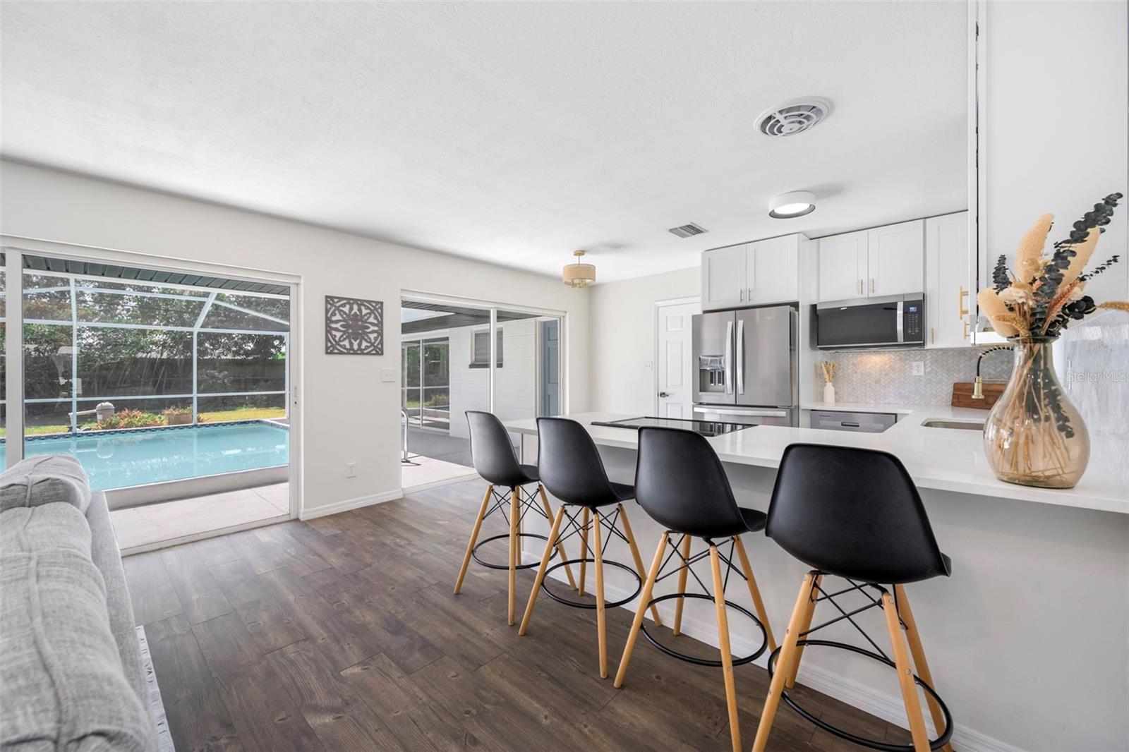 Bem-vindo ao 1228 76th Ave N, uma casa com PISCINA lindamente atualizada de 3 quartos e 2 banheiros no desejável bairro de Meadowlawn, em São Petersburgo. Esta propriedade pronta para morar oferece um layout de conceito aberto com piso LVP luxuoso, cores de pintura de grife, iluminação embutida e janelas atualizadas. A cozinha moderna apresenta bancadas de quartzo Calacatta, armários de bétula com fecho suave com ferragens complementares, eletrodomésticos de aço inoxidável e um impressionante backsplash em mosaico, enquanto os banheiros lindamente atualizados apresentam azulejos selecionados e acabamentos elegantes. As principais melhorias incluem instalações elétricas e hidráulicas totalmente novas, um telhado 2022, HVAC 2021, um aquecedor de água totalmente novo e todos os novos acessórios. Desfrute de um quintal privativo cercado com uma piscina cintilante com novos equipamentos, acabamento retexturizado e um recinto reformado substituído no ano passado, além de um estúdio de arte/quarto principal/escritório independente com infinitas possibilidades. Uma entrada circular, garagem para um carro e histórico de nunca inundado/sem danos acrescentam tranquilidade. Convenientemente localizada perto de parques, escolas, lojas, restaurantes, centro de St. Pete e praias do Golfo, esta casa realmente tem tudo. O agente de listagem é o proprietário.