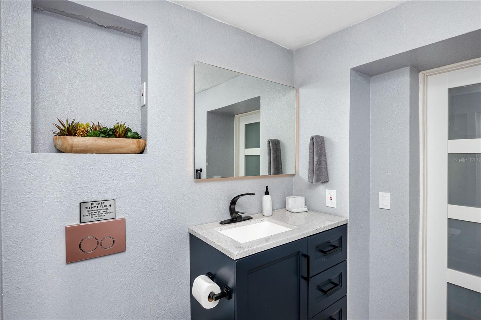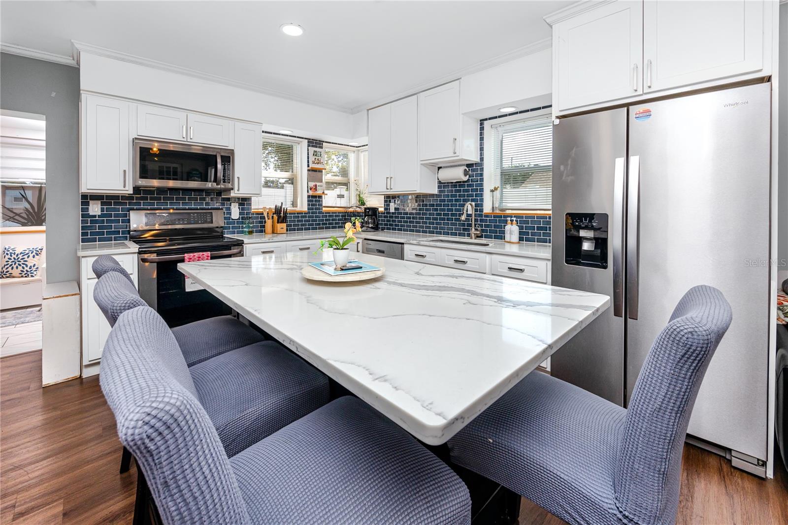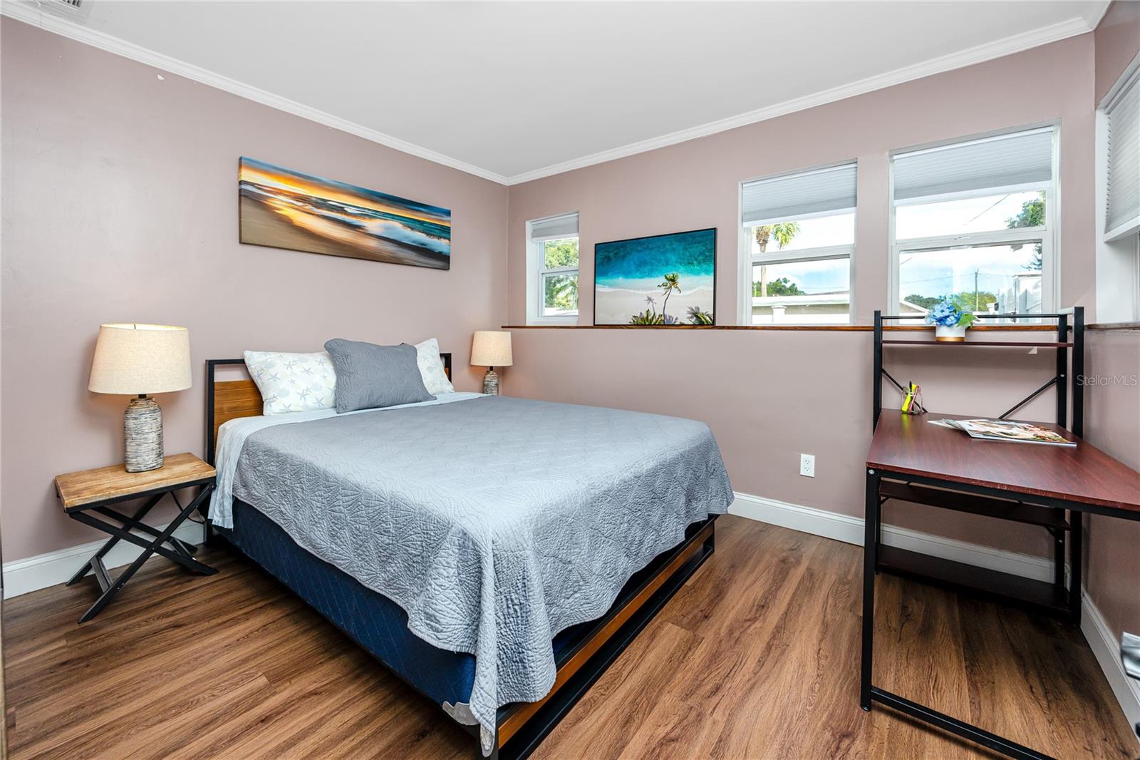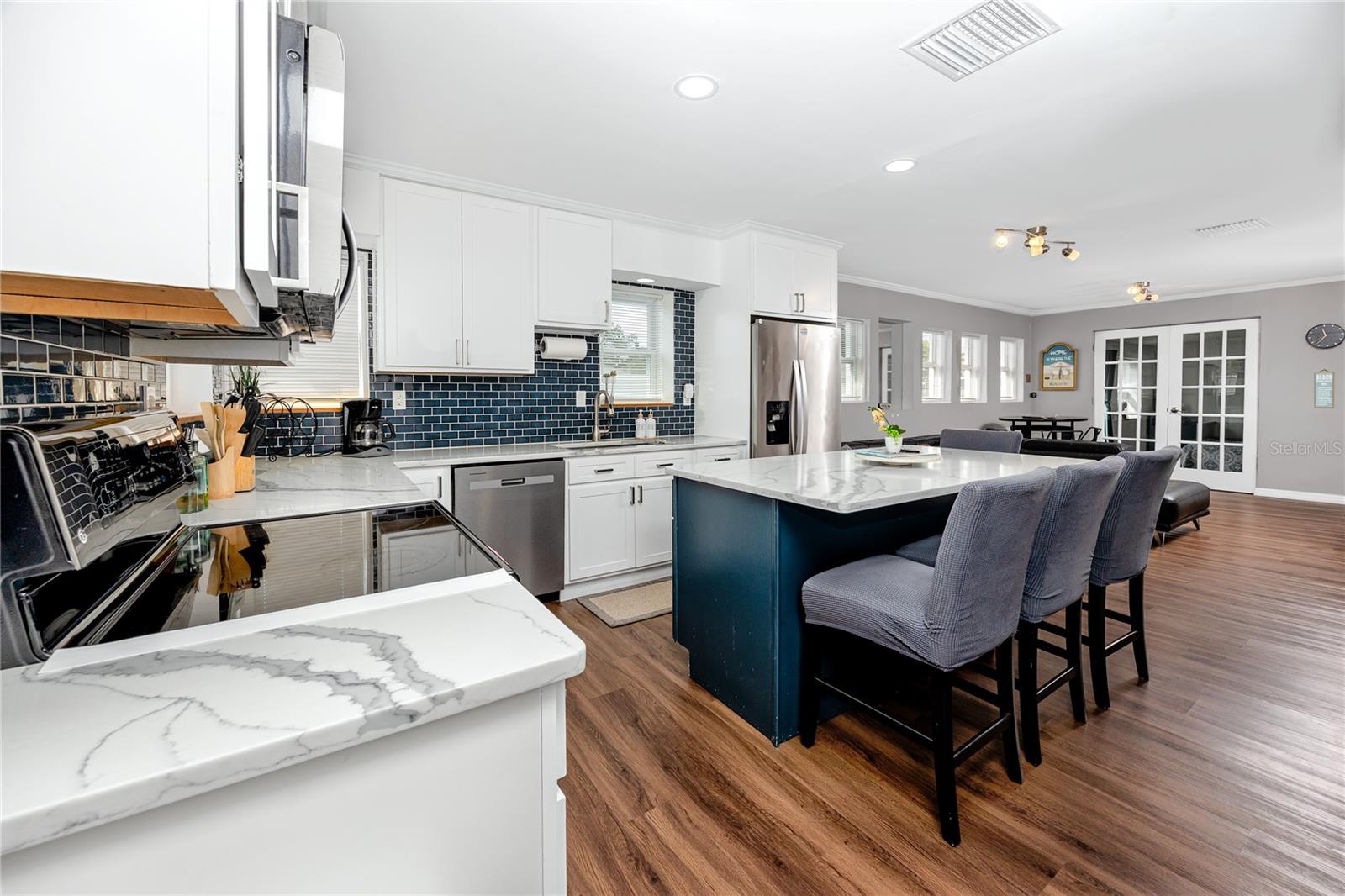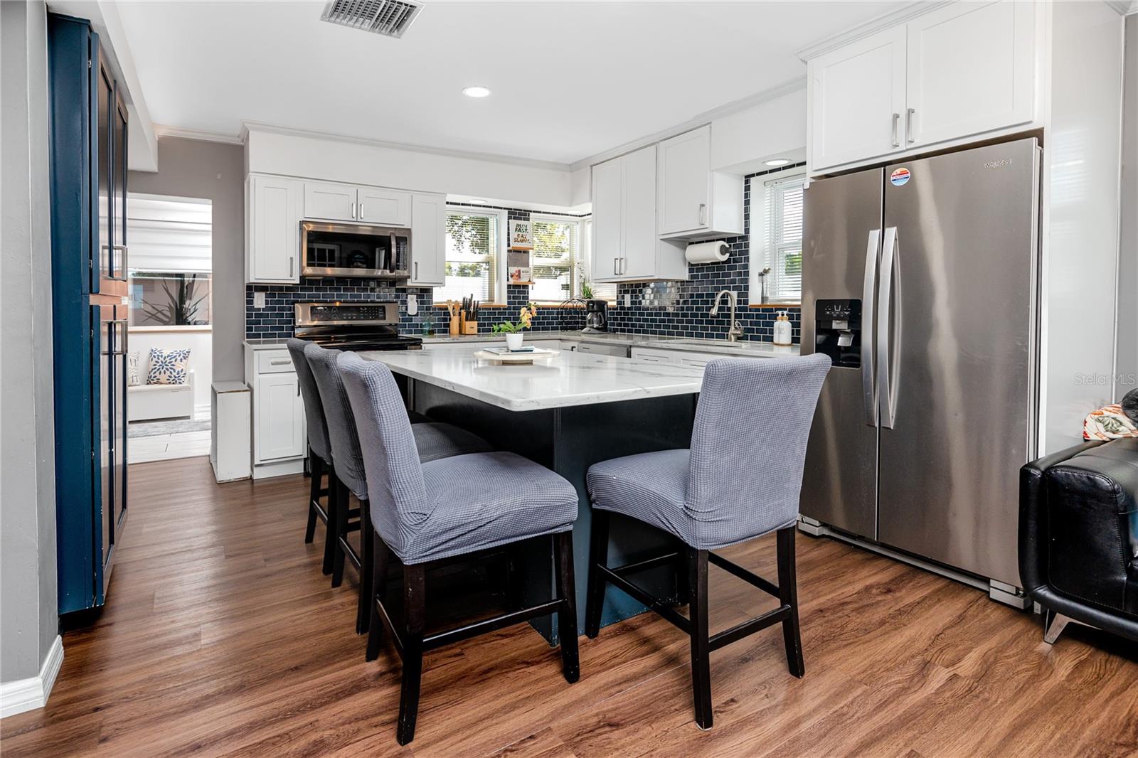 Bem-vindo à Flórida, pronta para morar, morando em Disston Heights, um dos bairros mais estabelecidos e procurados do norte de São Petersburgo. Esta casa totalmente mobiliada de três quartos e dois banheiros combina atualizações de designer com conforto de baixa manutenção, criando uma oportunidade rara para proprietários e investidores que buscam qualidade, flexibilidade e conveniência. Passe pelo hall de entrada de azulejos para um espaço de vida bem iluminado e de conceito aberto, onde a moderna iluminação embutida, sancas e o novo e luxuoso piso de pranchas de vinil dão o tom para a elegância do dia a dia. A espaçosa área de estar gira em torno de uma elegante lareira elétrica, complementada por iluminação LED que destaca o design contemporâneo da casa. A cozinha é funcional e refinada, apresentando bancadas de quartzo, backsplash completo, eletrodomésticos mais novos em aço inoxidável e uma ilha central com assentos de bar - perfeita para receber convidados ou desfrutar de um jantar casual em casa. Um layout inteligente de quarto dividido oferece privacidade e versatilidade. A ampla suíte principal, escondida atrás de portas francesas clássicas, apresenta tetos abobadados com vigas de madeira natural, vários armários, estantes embutidas, acesso de vidro deslizante ao quintal e um banheiro privativo projetado para relaxar. O banheiro inclui banheira de imersão, pia dupla, espelho inteligente antiembaçante com iluminação LED e acessórios modernos - tudo a poucos passos de uma porta privativa que leva ao retiro ao ar livre. Dois quartos adicionais compartilham um banheiro lindamente atualizado com box amplo de azulejos, chuveiro com efeito de chuva, penteadeira com tampo de quartzo com armazenamento generoso e uma lavadora e secadora empilhadas em tamanho grande. Ao ar livre, passarelas de pavimentação envolvem a casa, conectando áreas de estar sombreadas cercadas por uma cerca de privacidade de vinil branco. Um ring bay de ginástica personalizado oferece uma opção de fitness conveniente, localizado a poucos passos do chuveiro externo com chuveiro com efeito de chuva. A garagem de grandes dimensões e a entrada estendida oferecem amplo estacionamento, potencial para oficina e armazenamento adicional, completo com um carregador Tesla pré-instalado. O jardim frontal com xeriscape de baixa manutenção aumenta a atratividade do meio-fio, mantendo a manutenção ao mínimo. Grandes atualizações garantem tranquilidade e eficiência duradouras, incluindo um novo telhado (2019), um novo aquecedor de água (2020) e janelas e portas afetadas pelo impacto do furacão (2024). Sem HOA, sem zona de inundação e zoneamento não incorporado que permite aluguéis de curto prazo sem restrições de estadia mínima, esta propriedade oferece potencial excepcional de produção de renda para investidores, ao mesmo tempo que permanece ideal para residentes em tempo integral. Localizada a poucos minutos do centro de São Petersburgo, do Tyrone Square Mall, da Pinellas Trail, do distrito artístico de Gulfport e de St. Pete Beach, esta casa combina tranquilidade com acessibilidade. Desfrute de fácil acesso a restaurantes à beira-mar, boutiques e atrações culturais enquanto mora em um dos bairros mais acessíveis e bem cuidados da cidade. Experimente o melhor de North St. Pete - onde o design atemporal, as atualizações de casas inteligentes e a vida moderna na Flórida se unem em perfeito equilíbrio.