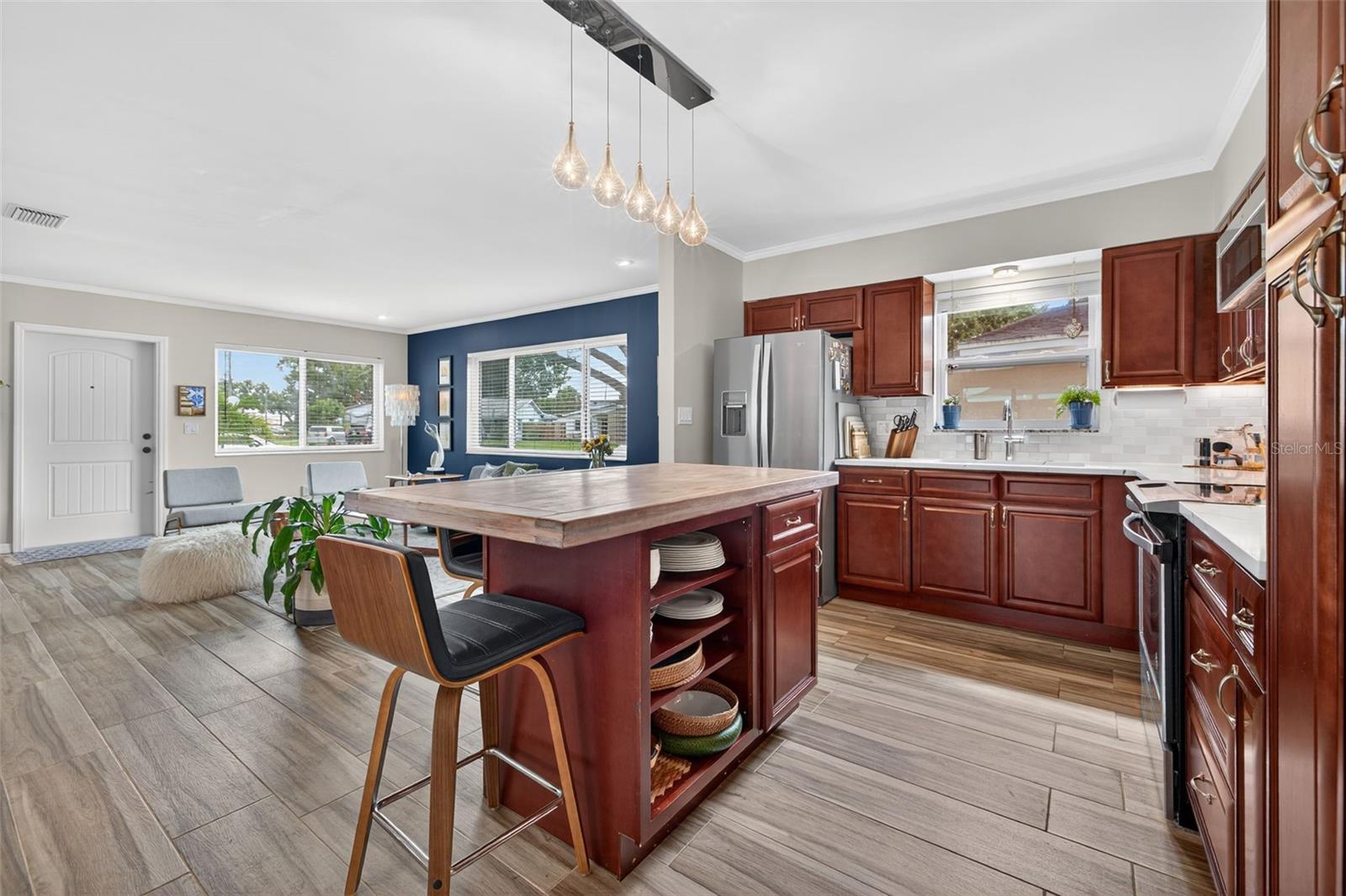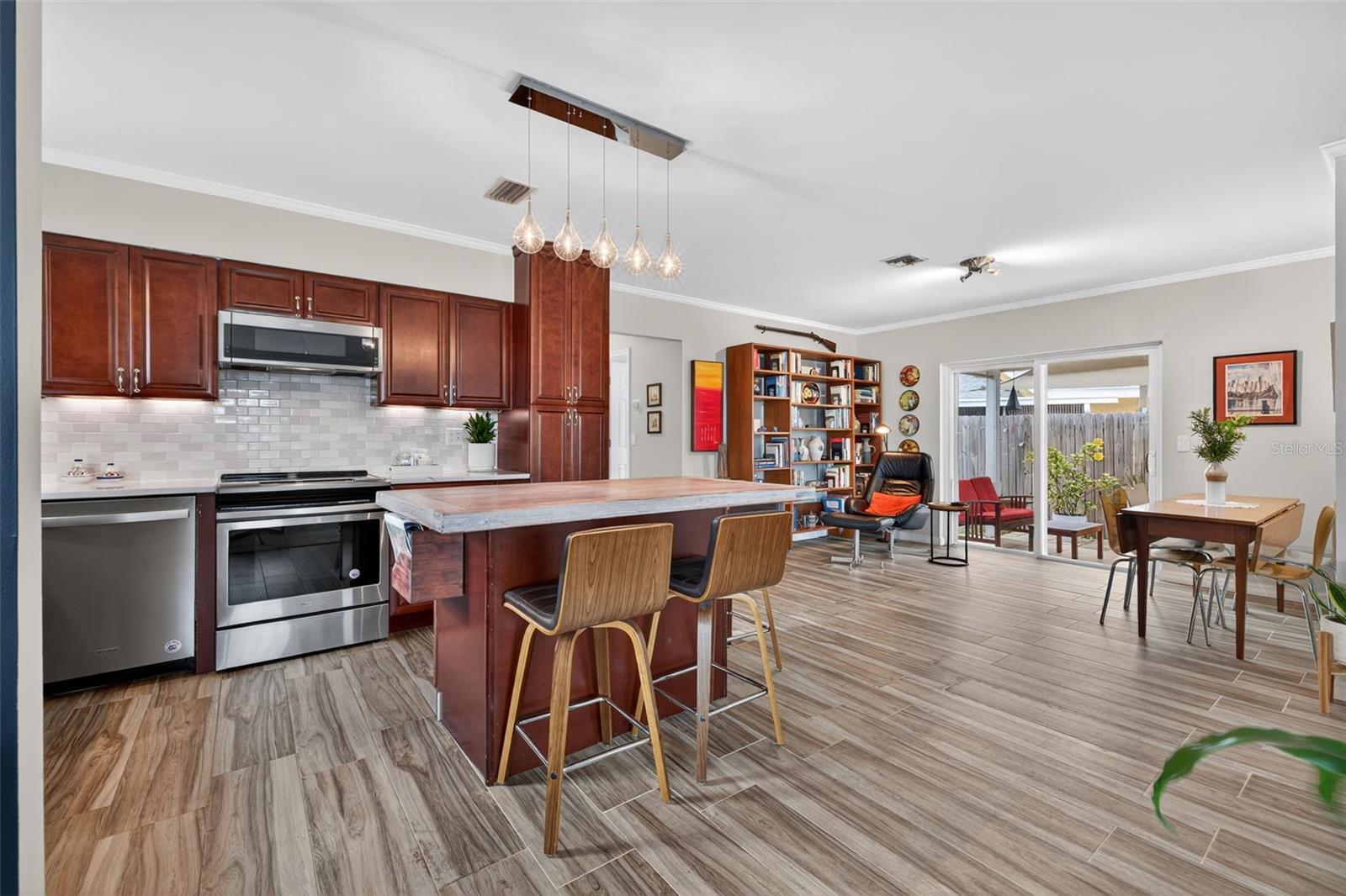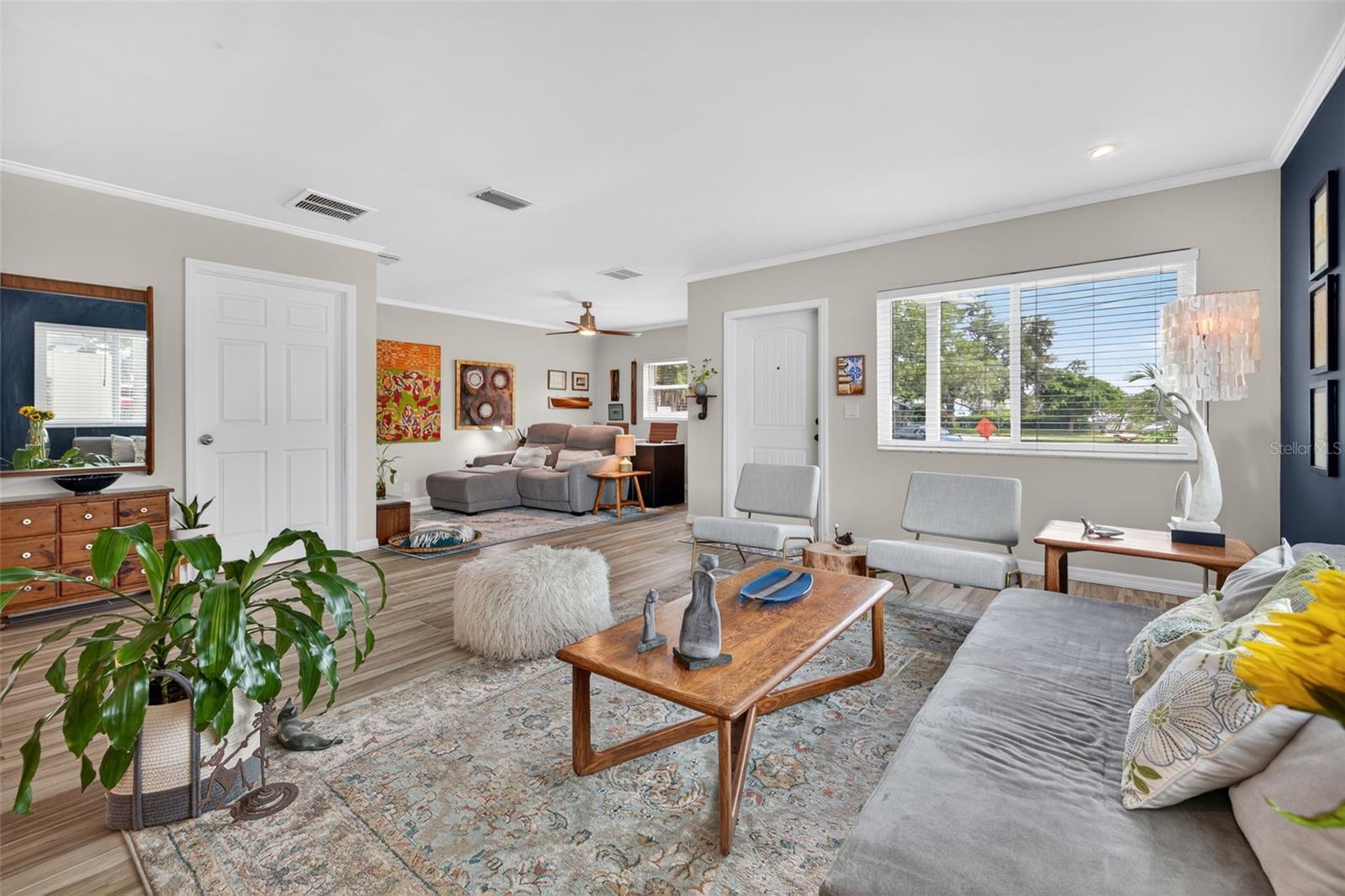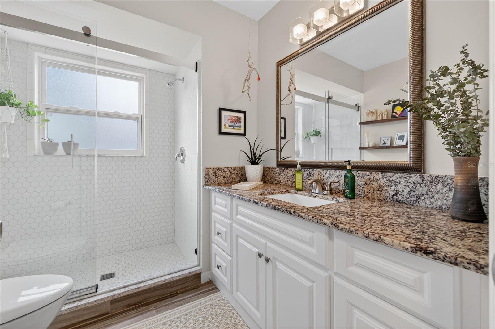 Bem-vindo a esta casa de bloco sólido lindamente atualizada, perfeitamente situada em um bairro sem zona de inundação. A partir do momento em que você entra, você ficará cativado pelo layout aberto e pela sensação de espaço. O porcelanato flui perfeitamente pelas principais áreas de estar, cozinha e sala de jantar, criando uma aparência coesa e elegante. A cozinha é o sonho de um verdadeiro chef, combinando perfeitamente estilo e funcionalidade. Apresentando elegantes bancadas em granito italiano branco, uma pia profunda em granito e ricos armários de madeira maciça. Ele foi projetado para oferecer beleza e praticidade. A sanca acrescenta um toque requintado a toda a casa, enquanto a ligação do gerador ao painel eléctrico oferece maior tranquilidade. Esta casa de 2 quartos e 2 banheiros foi meticulosamente atualizada com acabamentos de alta qualidade e detalhes atenciosos. A espaçosa área de estar e o escritório adicional facilitam a adaptação desta casa às suas necessidades - quer isso signifique criar um terceiro quarto ou simplesmente desfrutar do espaço extra. De qualquer forma, você está agregando valor duradouro para o futuro. Desfrute de tranquilidade com janelas e portas afetadas por furacões, ar-condicionado 2020 e um telhado totalmente novo sendo instalado. Quer você seja um comprador de primeira viagem ou queira reduzir o tamanho para obter conforto e facilidade, esta casa é a escolha perfeita. Saia para sua varanda coberta com uma cozinha externa completa, perfeita para entretenimento ou relaxamento durante todo o ano. Siga o caminho até o quintal cercado e descubra um tranquilo chuveiro externo de bambu. Dois galpões oferecem amplo armazenamento – um projetado para ferramentas e armazenamento, o outro configurado como oficina. Localizado a uma curta distância a pé de supermercados e lojas e a poucos minutos da I-275 para fácil acesso ao Aeroporto Internacional de Tampa. A apenas 6 km do vibrante centro de St. Pete e a 14 km da praia mais próxima, esta casa realmente oferece o melhor dos dois mundos: conveniência e vida costeira. Não perca a chance de tornar sua casa pronta para morar - agende seu tour privado hoje mesmo!