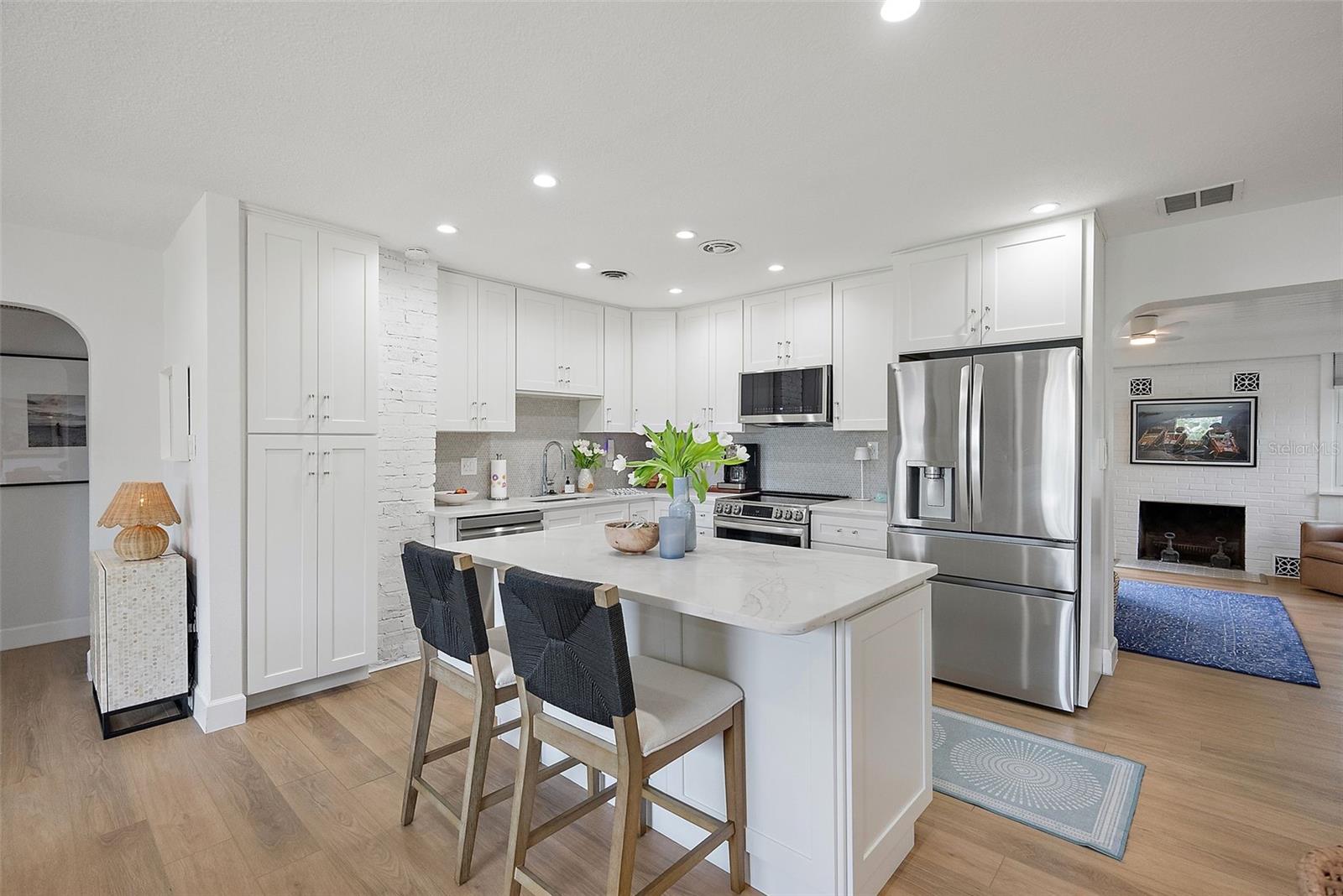 Esta é a casa que você estava esperando! Bem-vindo a esta casa lindamente remodelada de 3 quartos e 2 banheiros em estilo espanhol, escondida no coração de Snell Isle, um dos bairros mais cobiçados de São Petersburgo. A partir do momento em que você entra, você é recebido por um espaço de estar, jantar e cozinha iluminado e aberto que parece acolhedor e elegante. O lindo e luxuoso piso de madeira vinílica adiciona calor e personalidade, complementando perfeitamente a cozinha deslumbrante com suas bancadas de quartzo e grande ilha - o local perfeito para receber amigos ou desfrutar de momentos em família. Perto da área de estar principal, você encontrará uma espaçosa sala familiar centrada em torno de uma aconchegante lareira a lenha, criando o local perfeito para relaxar e descontrair. A planta dividida oferece a cada um seu próprio espaço, com uma espaçosa suíte principal com um closet extragrande que certamente impressionará. Saia e você encontrará um terreno enorme com infinitas possibilidades - muito espaço para adicionar uma piscina, construir uma cabana ou criar o retiro dos seus sonhos no quintal. O céu é realmente o limite!