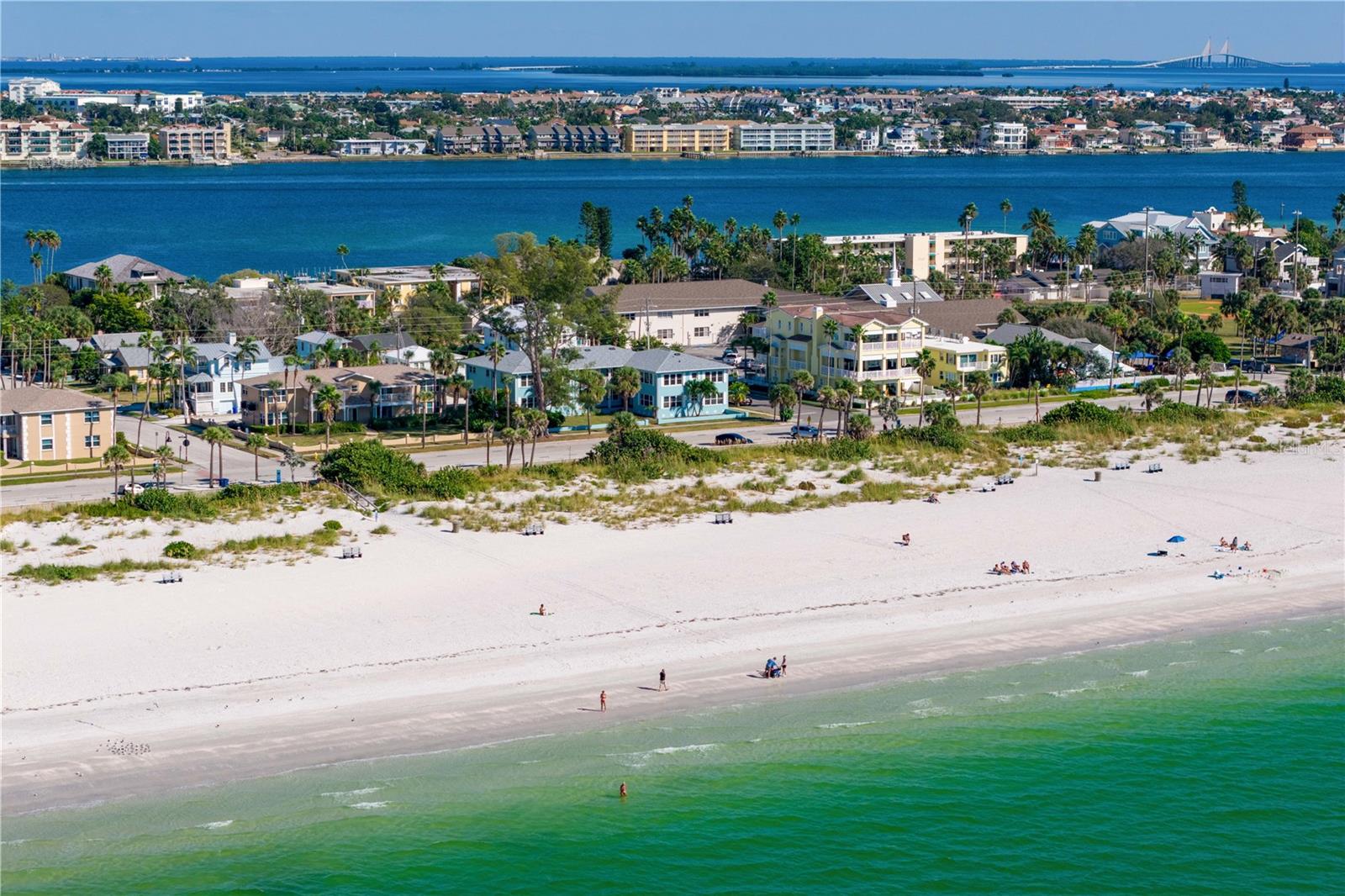 Bem-vindo a este condomínio de sonho no primeiro andar Pass-A-Grille com vista direta para a PRAIA e o Golfo do México! TOTALMENTE REMODELADO para incluir nova cozinha, banheiros, JANELAS E PORTAS DE IMPACTO, pisos de madeira originais restaurados e muito mais. Designer perfeito e VENDIDO MOBILIADO. A cozinha é iluminada e iluminada com armários brancos, bancadas de quartzo, despensa, adega refrigerada e eletrodomésticos de inox. Os banheiros são espetaculares com azulejos de mármore, lindas penteadeiras e iluminação moderna. A suíte principal dispõe de banheiro privativo com box amplo. Cascatas de luz entram e o pôr do sol é fenomenal. Tratamentos de janela motorizados e cortinas blackout para quem dorme tarde. Esta unidade inclui ainda uma pequena sala, perfeita para uma mesa e uma pequena área desdobrável para um hóspede extra! O prédio tem telhado novo, nova pintura externa, é construído em blocos de concreto e terá novo paisagismo em janeiro de 2026. Caminhe até os parques, parque para cães, restaurantes, bares de praia; ou pegue sua toalha e cadeira e caminhe até a praia de areia macia de Pass-A-Grille. NÃO INUNDOU!!