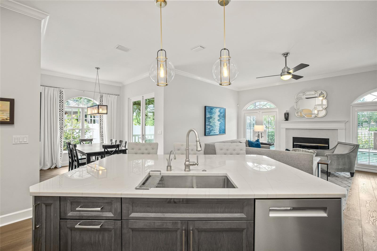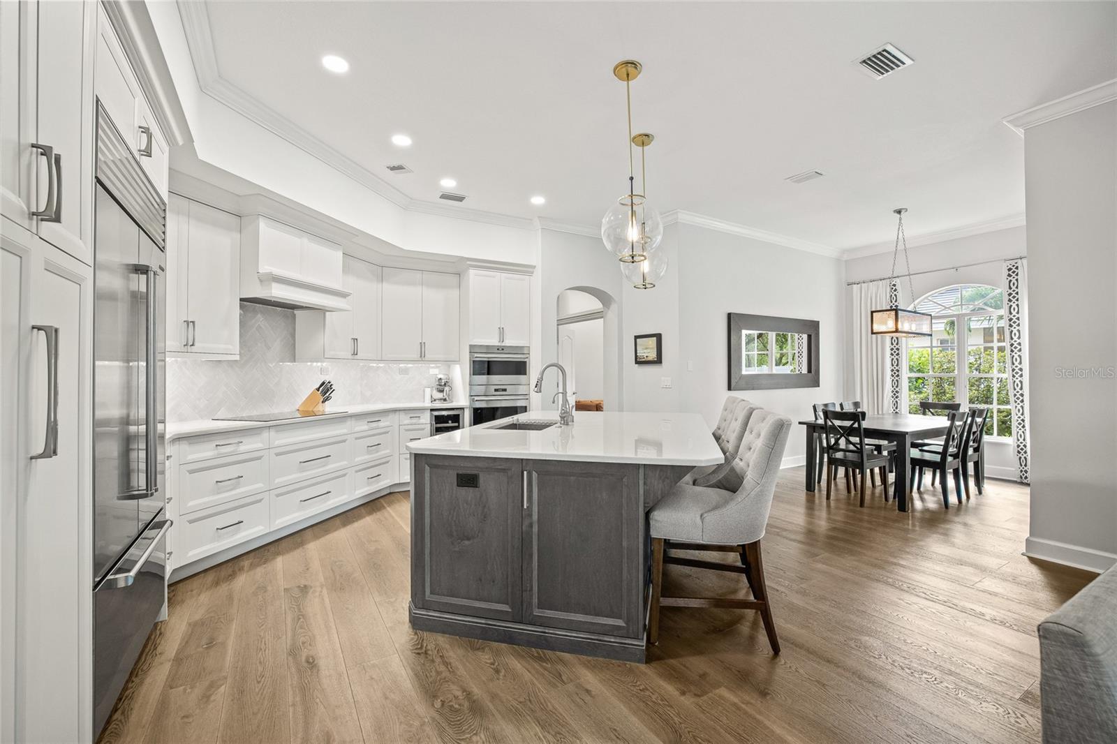 Situada no prestigioso enclave fechado de Placido Bayou, esta notável propriedade de dois andares se destaca como uma das plantas baixas mais personalizadas da comunidade - uma verdadeira vitrine de artesanato e sofisticação costeira. Abrangendo mais de 3.500 pés quadrados, a casa possui quatro quartos, além de um escritório e dois banheiros e meio, cada espaço cuidadosamente selecionado em termos de forma e função. Todo o primeiro andar foi atualizado com um rico piso de madeira costeira e uma cozinha gourmet impressionante que define o luxo moderno. Cada elemento, desde as bancadas chanfradas de quartzito até a geladeira Sub-Zero, forno Wolf, fogão de indução e refrigerador de vinho embutido, reflete um padrão de qualidade intransigente. Os armários extraíveis e para bebidas inteligentemente integrados mantêm o espaço e as tomadas elétricas discretos e funcionais. Em frente à grande ilha da cozinha fica uma convidativa sala com lareira que se abre para um terraço com piscina em estilo sulista através de portas francesas com vista para o lago - um cenário perfeito para o café da manhã ou reuniões noturnas. A sala de jantar formal e os tetos altos de 9 metros da sala de hospitalidade adjacente criam uma sensação dramática de chegada, equilibrada pelo calor da luz natural e pela curva graciosa de uma escada que leva ao nível superior. No andar de cima, uma sala bônus versátil oferece o recanto ideal para uma sala de mídia, um estúdio criativo ou um espaço sereno para trabalho e estudo. A suíte principal é um destino por si só, apresentando um banheiro totalmente novo inspirado em um spa com azulejos em formato de chevron, banheira e chuveiro com box de vidro que evoca um resort boutique. Dois closets personalizados e uma varanda privativa coberta ampliam a sensação de calma e luxo, oferecendo o local perfeito para relaxar entre a copa das árvores. Três quartos grandes adicionais estão localizados no corredor com um banheiro compartilhado no corredor. Cuidadosamente projetada e meticulosamente atualizada, esta casa captura a essência da vida refinada da Flórida - tudo isso a poucos minutos de restaurantes, compras, entretenimento e diversão ao ar livre no centro de São Petersburgo, praias de areia doce e um trajeto rápido para dois aeroportos internacionais.