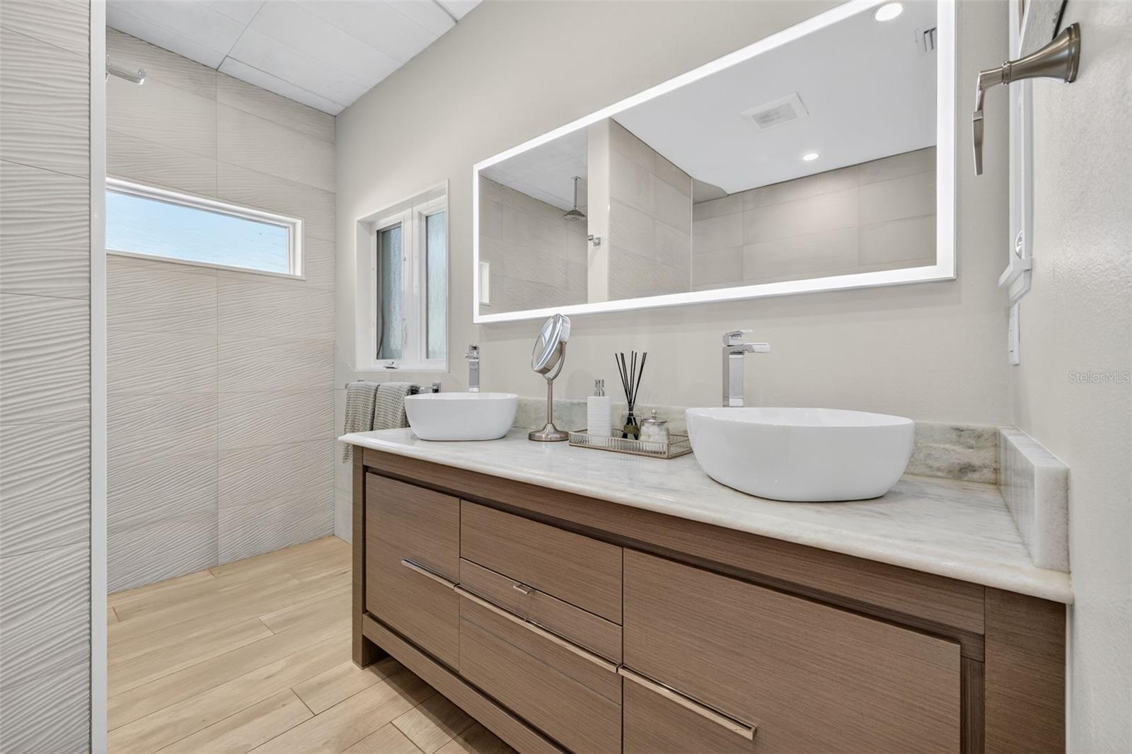 Descubra uma casa moderna de meados do século lindamente redesenhada no coração do histórico e altamente cobiçado Antigo Nordeste - um dos bairros mais procurados de São Petersburgo e de todo o país. Conhecida por suas ruas de tijolos, arquitetura histórica e facilidade de locomoção incomparável, o Old Northeast oferece um estilo de vida que combina charme, comunidade e conveniência como nenhum outro lugar. A apenas dois quarteirões dos parques à beira-mar, você terá acesso diário a quadras de tênis, piscina comunitária, vôlei, espaços verdes sombreados e a pitoresca calçada à beira-mar que o guia diretamente até nosso vibrante centro de St. Pete. Cafés, restaurantes premiados, galerias de arte, o St. Pete Pier e eventos durante todo o ano estão a poucos minutos da sua porta. O Vinoy Golf Club fica a poucos minutos de distância, acrescentando mais uma comodidade de luxo a esta localização excepcional. Entre em um layout de conceito aberto cuidadosamente redesenhado que honra as linhas de meados do século e ao mesmo tempo abraça a vida moderna. A planta dividida oferece privacidade, funcionalidade e fluxo contínuo. A espaçosa cozinha possui uma ilha central com balcão, eletrodomésticos de aço inoxidável e vista para a área de jantar formal - perfeita para entretenimento. Janelas e portas de correr protegidas contra furacões enchem a casa com luz natural e abrem para um quintal sereno com espaço para adicionar uma piscina. A garagem com acesso ao beco e o estacionamento de grandes dimensões proporcionam estacionamento conveniente para vários veículos. A suíte principal privativa inclui closet com prateleiras personalizadas e banheiro privativo lindamente atualizado com pia dupla e box amplo de designer. Dois quartos adicionais são espaçosos e oferecem armários personalizados. Os recursos adicionais incluem lavanderia interna, varanda frontal convidativa, encanamento e eletricidade atualizados, gerador para toda a casa e - o melhor de tudo - não é necessário seguro contra inundações. Esta casa está em uma zona sem inundação e NÃO sofreu nenhum dano ou intrusão de água devido às tempestades recentes. Esta é a sua oportunidade de morar em um dos principais bairros de St. Pete, onde o melhor da vida costeira, da cultura e da comunidade se encontram. Bem-vindo ao Velho Nordeste, vivendo no seu melhor.