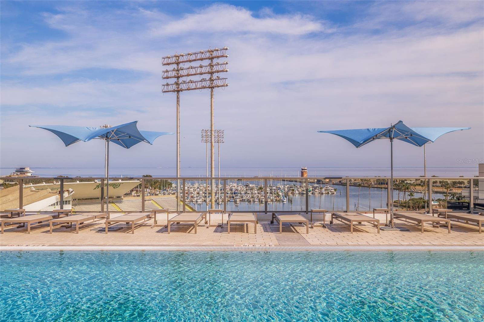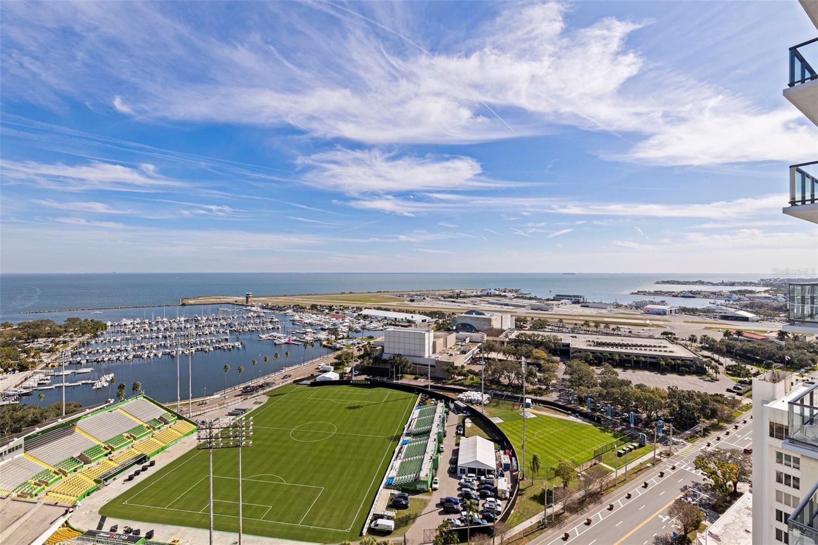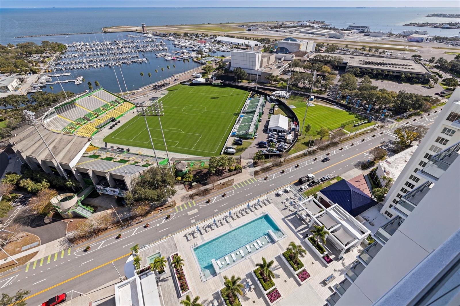Bem-vindo à Residência 2103 em Saltaire. Situada no 21º andar, no canto mais cobiçado da torre, com exposição nordeste, esta residência oferece vistas deslumbrantes e desobstruídas da Baía de Tampa, do St. Pete Pier e do horizonte do centro da cidade. Esta rara casa de 2.712 pés quadrados, três quartos e quatro banheiros combina design refinado, conveniência moderna e comodidades em estilo resort em um dos arranha-céus de luxo mais desejáveis de St. É a maior planta do edifício além da cobertura. O vidro do chão ao teto captura amplas vistas da água e da cidade, desde o nascer do sol sobre a baía até o brilho do centro da cidade ao pôr do sol, enquanto as persianas automatizadas proporcionam conforto sem esforço com o toque de um botão. O layout de conceito aberto é ideal tanto para a vida cotidiana quanto para entretenimento. A cozinha gourmet oferece vistas deslumbrantes e possui eletrodomésticos JennAir, elegantes bancadas de pedra e uma ilha grande com capacidade para quatro pessoas. Os espaços de estar e de jantar adjacentes fluem perfeitamente para um terraço coberto, criando o cenário perfeito para o café da manhã sobre a baía ou para coquetéis à noite enquanto a cidade ganha vida. Uma planta dividida cuidadosamente projetada garante privacidade por toda parte. A suíte principal oferece vistas panorâmicas inspiradoras e um banheiro elevado com pia dupla, banheira de imersão, box amplo separado e dois closets generosos. A ala de hóspedes inclui dois quartos adicionais, cada um com banheiro privativo e closet, além de um banheiro completo e uma lavanderia espaçosa. Um escritório fechado separado com uma janela de popa oferece um espaço ideal para trabalhar em casa ou sala de mídia. Esta residência inclui duas vagas de garagem seguras equipadas com carregador EV, convenientemente localizadas a poucos passos do elevador. O Aire Deck, no sétimo andar do Saltaire, oferece uma verdadeira experiência em estilo resort, com piscina e spa com cabanas, cozinhas externas com churrasqueiras e um bar com uma TV grande para noites de cinema ou dias de jogos à beira da piscina. No mesmo nível, os moradores desfrutam de uma academia de ginástica à beira-mar, um parque privativo para cães, uma sala de clube e vários espaços lounge projetados para relaxamento e conexão. As comodidades adicionais incluem equipe de lobby 24 horas por dia, 7 dias por semana, serviços de concierge e estacionamento com manobrista. Viva no centro de tudo. Observe os veleiros navegando pela baía e pequenos aviões pousando no Aeroporto Albert Whitted da sua varanda. Caminhe até o Saturday Morning Market em Al Lang, assista a um jogo do Rowdies, desfrute de um jantar na Beach Drive, explore The Dali e outros museus de classe mundial ou relaxe no St. Pete Pier - tudo a poucos passos da sua porta da frente. Isto é mais do que uma residência; é o estilo de vida definitivo no centro de St. Pete, oferecido no seu melhor.