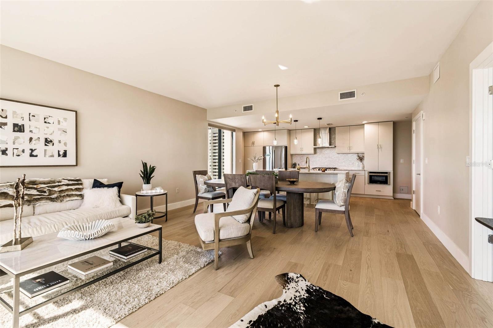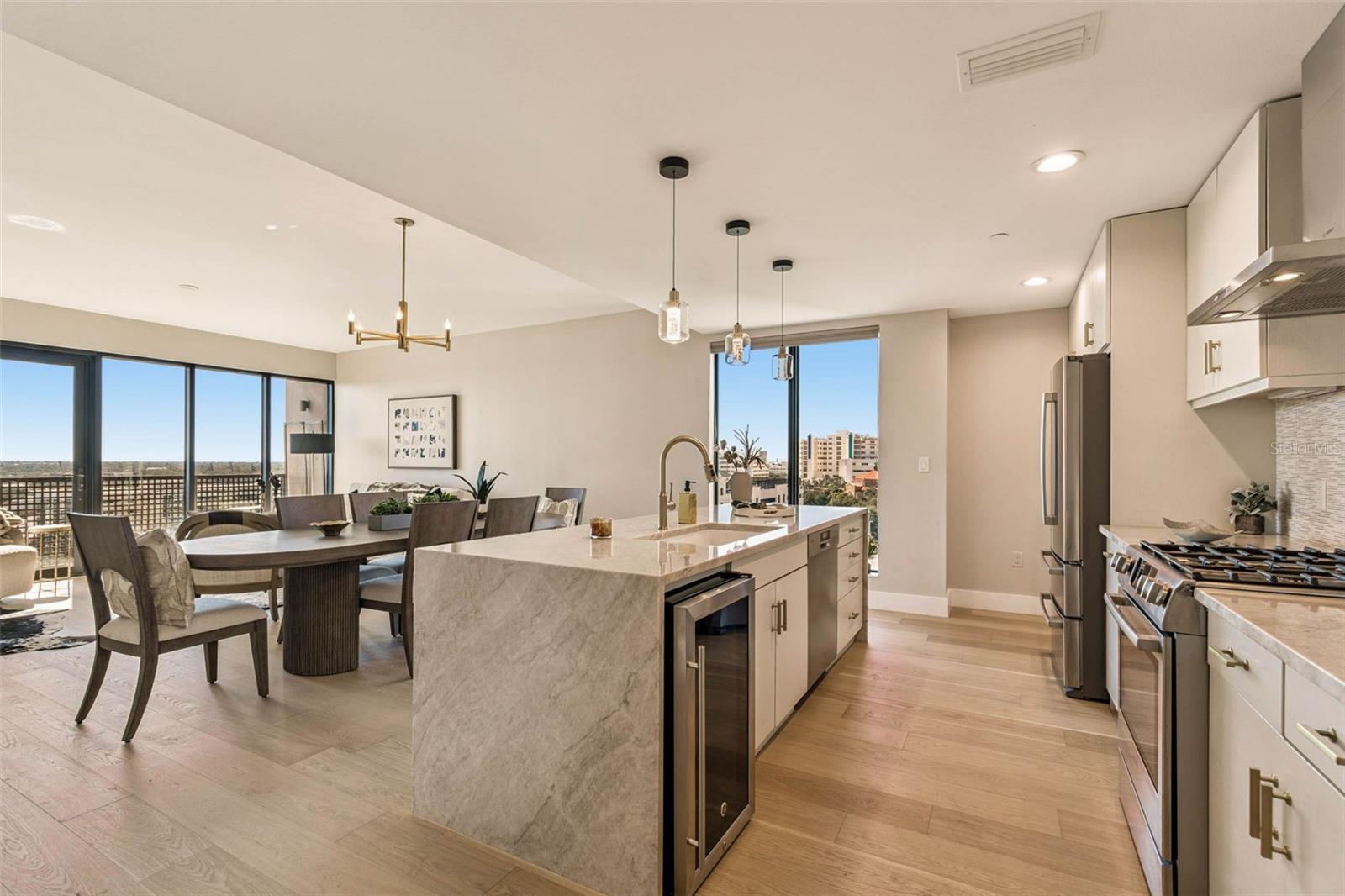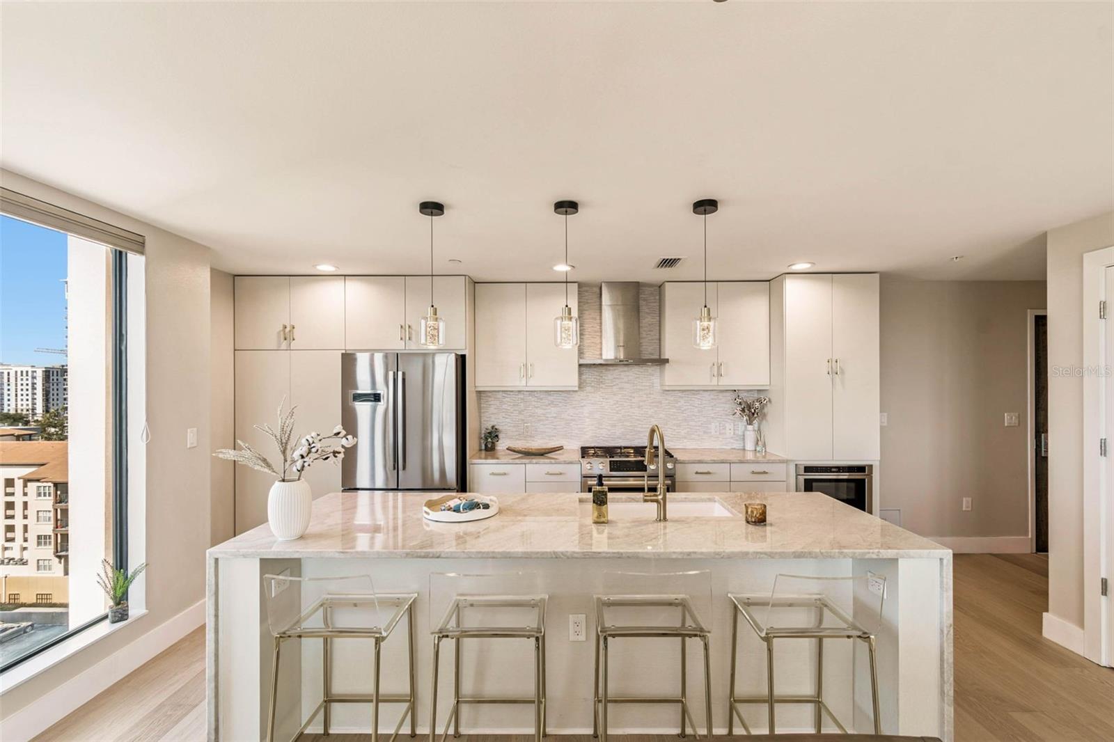 RETIRO DE ALTO ESTILO NO CENTRO DA CIDADE COM VISTAS DESLUMBRANTES PARA A ÁGUA, BELO PÔR DO SOL E NOITE VISTAS ESPUMANTES PARA A CIDADE! Esta espetacular UNIDADE DE CANTO foi EXTENSIVAMENTE RENOVADA e está sendo OFERECIDA TOTALMENTE MOBILIADA com peças de alta qualidade e luxo selecionadas especificamente para o espaço de conceito aberto. Este pied-terre excepcional no 10º andar do The Salvador oferece vistas deslumbrantes da Baía de Tampa, da Marina Bayfront, do Aeroporto Albert Whitted, da icônica ponte Sunshine Skyway e do horizonte cintilante da cidade à noite. Cada elemento de design e mobiliário nesta residência de um quarto e um banheiro e meio foi intencionalmente selecionado para complementar a estética moderna elegante e sofisticada da casa, criando uma experiência de vida coesa e pronta para uso. O Salvador também oferece serviço de concierge e gerenciamento no local com acesso seguro para uma vida ainda melhor no centro da cidade. O vidro do chão ao teto com impacto de furacão captura vistas dramáticas da água e da cidade, enquanto a varanda privativa oferece um cenário ideal para um café ao nascer do sol ou coquetéis ao pôr do sol. Desfrute da culinária gourmet na cozinha inspirada no chef, com eletrodomésticos Bosch de aço inoxidável, incluindo fogão a gás de cinco bocas e refrigerador de vinho, backsplash de azulejos de design, elegante bancada em cascata de mármore Taj Mahal, iluminação pendente de design, armários sofisticados de estilo europeu com amplo armazenamento e uma barra de café da manhã ideal para cozinhar todos os dias ou entretenimento elevado. O quarto principal oferece um retiro sereno com uma janela de impacto do chão ao teto emoldurando vistas amplas. O espaçoso quarto inclui dois armários personalizados, um closet projetado pela California Closets e um segundo armário embutido personalizado para armazenamento adicional. O banheiro privativo recém-atualizado apresenta piso de mármore italiano, uma moderna porta de vidro para box, nova iluminação de design, pia dupla em couro branco fosco de granito Santorini e elegantes acessórios dourados. Os destaques adicionais incluem um lavabo recém-atualizado com novos acessórios, iluminação de designer, nova penteadeira com bancada de couro branco em granito Santorini, novo piso de tábuas largas de madeira em todo o condomínio, rodapés personalizados de marcenaria de 5 polegadas, novo lustre de designer na área de jantar, além de uma nova lavadora e secadora de carregamento frontal em um espaço de lavanderia dedicado na unidade com armazenamento adicional embutido personalizado. O Salvador, uma torre boutique com 74 residências e certificação LEED, oferece comodidades em estilo resort, incluindo piscina aquecida de água salgada, spa, lounge com fogueira com churrasqueira ao ar livre, academia de ginástica de última geração, clubroom bem equipado, parque exclusivo para cães com estação de lavagem e estacionamento seguro em garagem. Este edifício que aceita animais de estimação fica perto do premiado Museu Dali, Teatro Mahaffey, The Pier, Demens Landing, parques à beira-mar e uma grande variedade de restaurantes, galerias de arte, vida noturna e lojas no próspero centro de São Petersburgo.