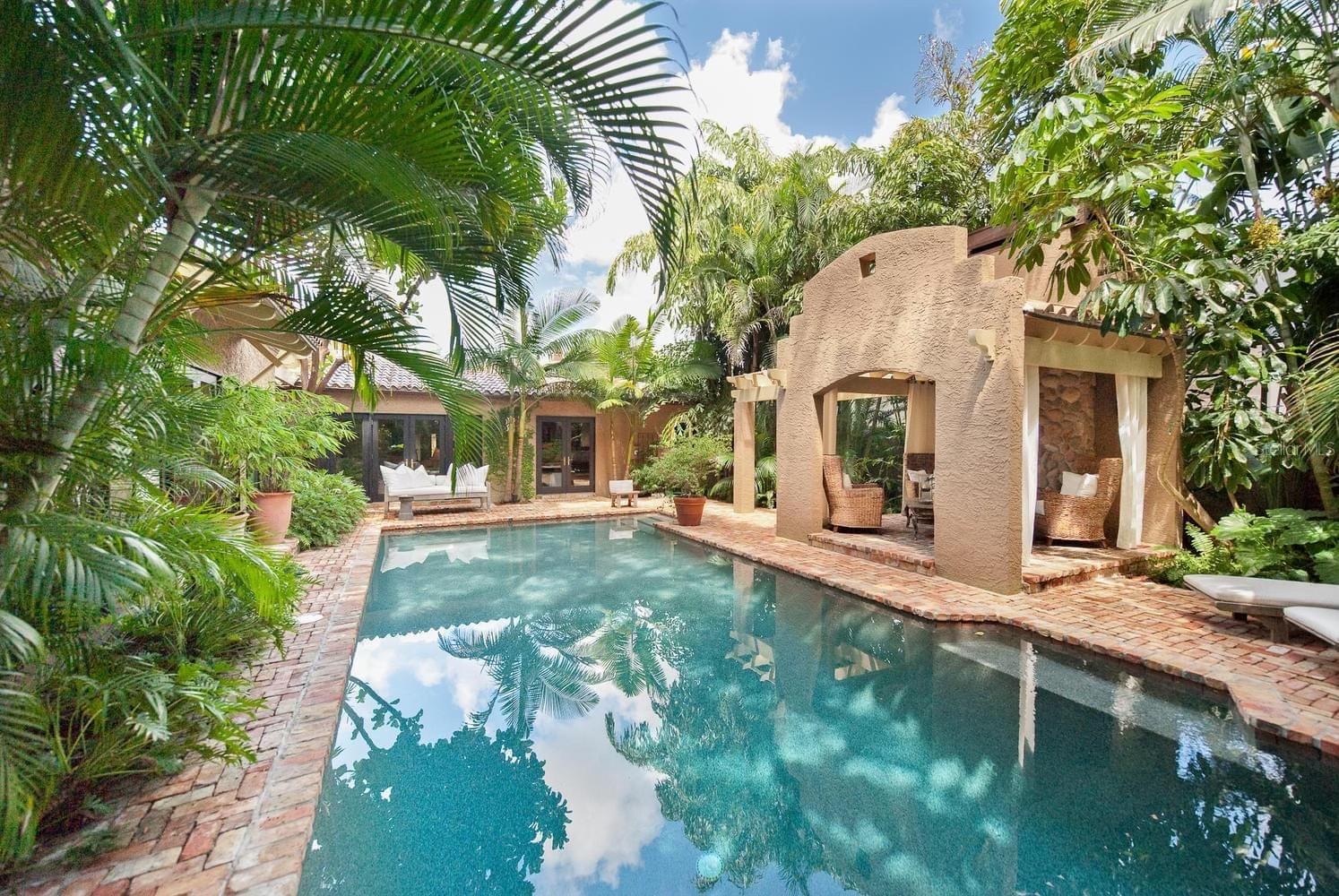 Escondido logo além de uma exuberante paisagem tropical na icônica Brightwaters Blvd NE, este refinado bangalô em estilo pátio de 2.800 pés quadrados revela um santuário sereno inspirado em um resort. Através de dramáticos portões de ferro forjado, um interior lindamente organizado se desdobra - banhado pelo sol, com proporções elegantes e projetado com uma sensação de sofisticação sem esforço. A cozinha reimaginada apresenta um elegante backsplash de azulejos neutros, uma generosa ilha independente, fogão a gás, geladeira Sub-Zero, adega refrigerada e uma impressionante despensa - combinando perfeitamente estilo com funcionalidade de nível de chef. Janelas e portas francesas cuidadosamente posicionadas convidam vistas tranquilas do pátio e o som suave da água entra na casa, criando uma conexão perfeita entre o conforto interno e a serenidade externa. A ampla suíte principal é um retiro privado, situada na parte traseira da residência, com portas francesas que se abrem diretamente para o exuberante oásis no quintal. Do lado de fora, desfrute da tranquilidade de sua cabana isolada com lareira a gás, fontes charmosas e uma grande piscina envolvida por uma paisagem tropical madura - um cenário idílico para noites íntimas e entretenimento elevado. As melhorias adicionais incluem quatro quartos espaçosos e três banheiros de inspiração espanhola com chuveiros grandes, sistemas California Closet personalizados, um sistema de som doméstico completo, uma lareira interna decorativa, um aquecedor de água quente a gás propano e uma nova osmose reversa e sistema de filtragem de água para toda a casa. A casa também vem pré-instalada para sauna infravermelha, oferecendo mais um toque de luxo. Situada em uma das ruas mais cobiçadas do condado de Pinellas, esta excepcional residência com pátio oferece uma combinação extraordinária de privacidade, elegância e vida em estilo resort - que certamente cativará até o comprador mais exigente.