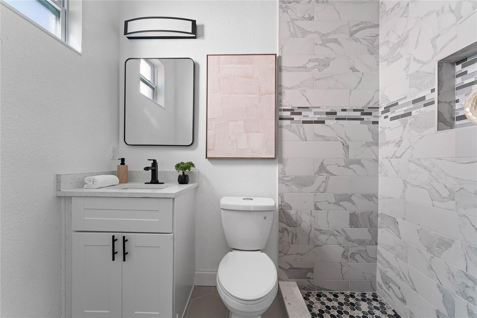 Bem-vindo à mais nova maravilha moderna de Sunny St. Pete! Tudo novo, estilo elegante e uma unidade extra que torna esta casa uma mudança de poder total, olá renda de aluguel ou vida multigeracional! Entre em um espaço luminoso de conceito aberto, perfeito para entretenimento, com um fluxo contínuo entre a sala de estar, a área de jantar e a cozinha. Fora do espaço principal, você encontrará dois quartos arejados e um elegante banheiro de hóspedes. Vá para a parte de trás e descubra a suíte principal dos sonhos com um lindo banheiro privativo e box amplo tipo spa. E o bônus? Uma garagem para dois carros com um ADU lindamente acabado, tão luxuoso quanto a casa principal. Conforto moderno. Flexibilidade. Vibrações totais do sol da Flórida. A única coisa que falta é você.
