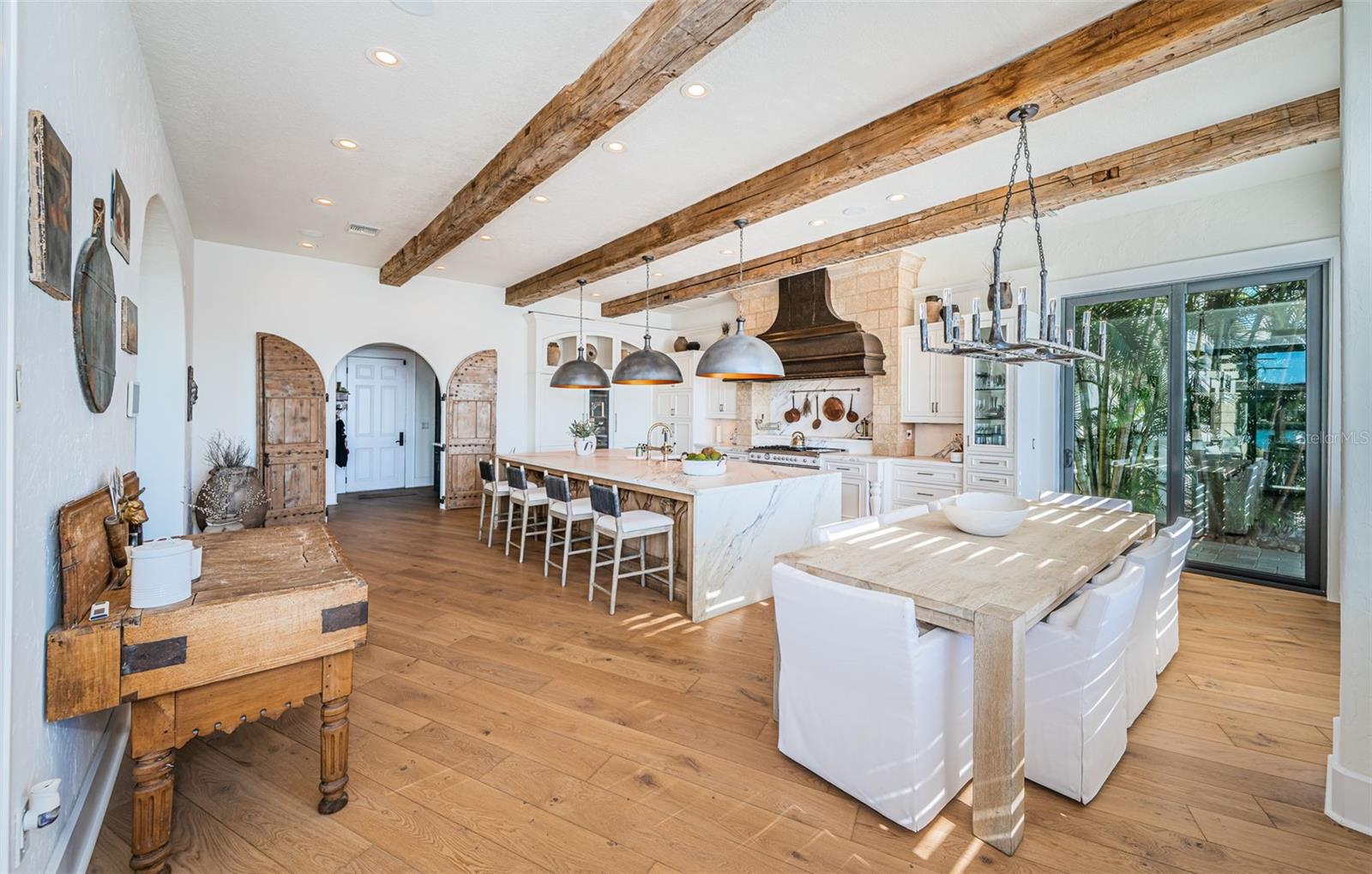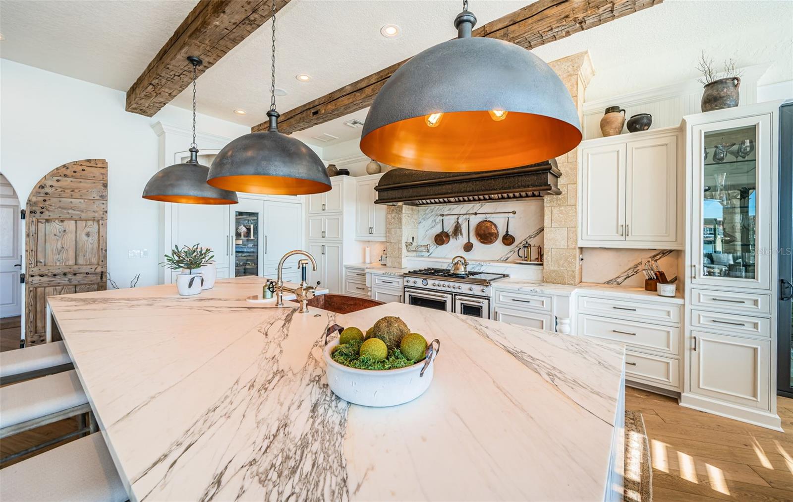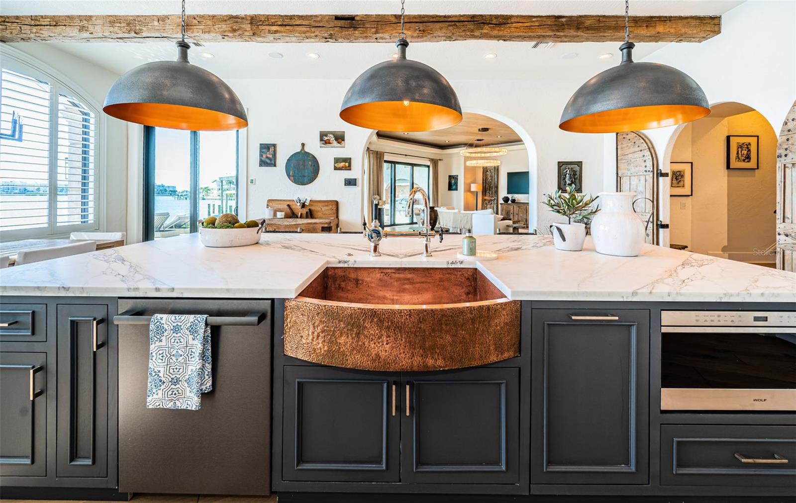 LUXO CONTEMPORÂNEO COSTEIRO COM UM APELO TUSCANO ÚNICO! Entre em uma propriedade à beira-mar que aumentará seus sentidos de visão, audição e tato! Originalmente construído em 1961, mas foi reconstruído em 2006. Acabamentos exteriores requintadamente detalhados apresentam uma imponente entrada coberta de 12 pés de altura com esplêndidas portas duplas de aço em arco. No interior, descubra uma planta baixa espetacular e intrincadamente tecida com arcos dramáticos, acabamentos de parede personalizados brilhantes, piso de madeira elegante, alcovas encantadoras, embutidos soberbos e trabalhos em madeira extraordinários. A ampla sala com seus substanciais tetos de madeira de 11 pés de altura, iluminação radiante e lareira de pedra fundida com embutidos, é definida por uma incrível parede de portas de vidro deslizantes de 9 pés de altura que oferecem vistas inesquecíveis da orla marítima. A suntuosa cozinha de design gourmet de conceito aberto é um banquete de forma e função culinária - com tetos com vigas de madeira envelhecidas, superfícies espessas de mármore italiano, armários de painel elevado em branco costeiro, eletrodomésticos Wolf / Miele, centro de cozinha a gás Bertazzoni, uma parede de refrigeração de 3 unidades, refrigerador de vinho de altura total, enorme exaustor de cobre martelado, iluminação de designer inspirada e um incrível bar de ilha com pia de cobre de casa de fazenda e balcões de mármore italiano em cascata (construídos sobre um altar antigo e resistente!). Você apreciará a excelente despensa do mordomo e a luxuosa banheira de piscina adjacente. A generosa área de jantar à beira-mar possui dois pontos de acesso ao deck da piscina. Com vista para a água e abrindo para um grande deck coberto, a grande suíte do proprietário com área de estar dedicada é uma maneira acolhedora de começar e terminar o seu dia. O banheiro do proprietário possui belas superfícies de mármore italiano, pias duplas, um bar matinal dedicado, um atraente chuveiro com efeito de chuva todo em mármore com controles digitais e um fabuloso closet com embutidos e uma maravilhosa cômoda central. No andar de cima você encontrará uma surpreendente sala de jogos personalizada com um luxuoso bar profissional; ostentando lambris elegantes, ricas superfícies de granito, armários personalizados, ampla refrigeração/refrigeração de bebidas e som surround, esta será a parada favorita de todos para assistir ao jogo de bola. Saia para a varanda coberta de mais de 42 pés de largura e mais de 400 pés quadrados e desfrute de vistas panorâmicas impressionantes da orla. Oferecendo uma experiência alternativa, a sala de fitness à beira-mar e a área de estar casual são um ótimo lugar para se exercitar e relaxar. Dois quartos espaçosos compartilham uma varanda à beira-mar de 20 pés de largura com incríveis vistas para o mar aberto. Um terceiro quarto é unido a uma convidativa área de estar comum, enquanto o resplandecente quarto quarto oferece uma varanda Juliette. Todos os banheiros são luxuosos em seus compromissos. Nos fundos, você será cativado por um cenário deslumbrante à beira-mar - um imponente deck coberto de 13 pés de altura e 400 pés quadrados com espaçosas áreas de estar/jantar e centro de cozinha a gás embutido, transições para uma impressionante piscina/spa Pebbletec e suas deslumbrantes vistas de águas abertas. Impressionantes passarelas de travertino percorrem toda a largura da casa e são complementadas por um exuberante paisagismo subtropical privado. Você vai adorar a área de jantar coberta dedicada à beira-mar – ideal para grandes reuniões. A excepcional doca composta apresenta uma verdadeira raridade, dois elevadores de barco permanentemente cobertos com acesso por passarela a ambos os lados de ambos os elevadores! Automação de iluminação, áudio em toda a casa, energia elétrica solar e bateria reserva e muito mais. Uma casa magnífica e com um valor tremendo por tudo o que tem para oferecer. As dimensões são estimativas, o comprador deve verificar.