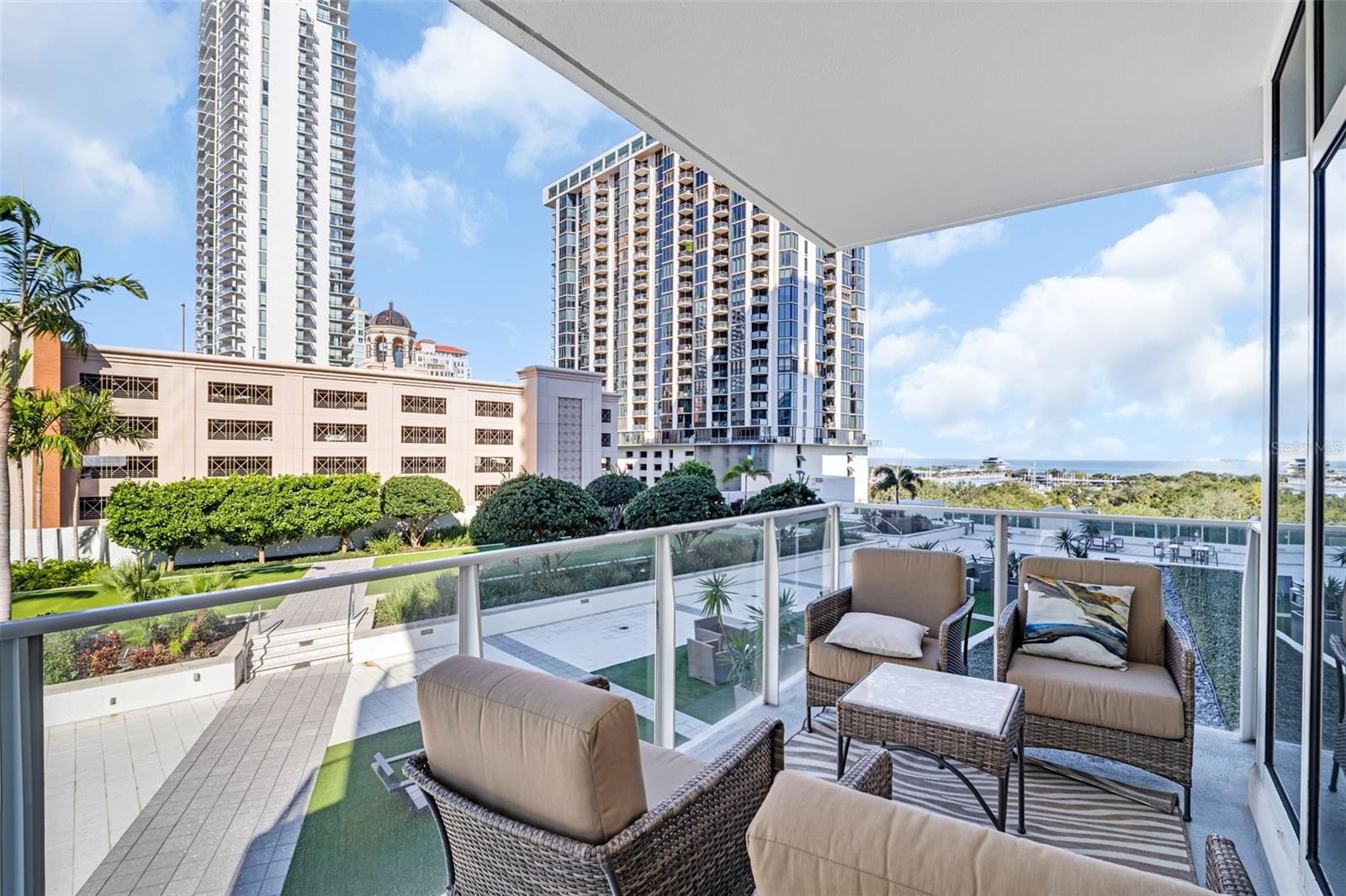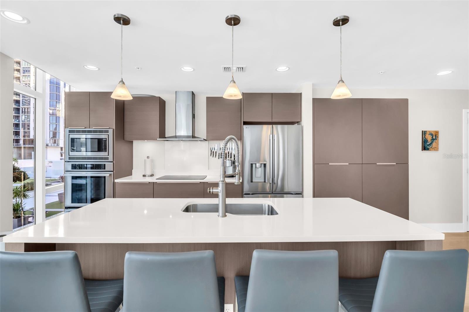 Experimente a vida no centro da cidade nesta residência impecavelmente decorada de 2 quartos e 2,5 banheiros no Signature Place, que oferece 1.465 pés quadrados de espaço interior refinado complementado por uma piscina excepcional, o horizonte da cidade e vistas para o mar de Tampa Bay. Uma graciosa entrada no hall de entrada dá o tom, levando a uma área de estar e jantar aberta e iluminada, projetada para o estilo de vida atual. Janelas do chão ao teto e portas de vidro deslizantes convidam a luz natural enquanto se abrem para uma rara varanda envolvente com dois pontos de acesso - perfeita para momentos de entretenimento ou tranquilidade com vista para o vibrante deck da piscina tropical e a água cintilante além. O vidro exterior reflector proporciona maior privacidade do exterior, permitindo-lhe desfrutar da vista sem compromissos. Churrasqueiras elétricas são permitidas na varanda, melhorando ainda mais a experiência de vida ao ar livre. A cozinha moderna é impressionante e funcional, com armários e gavetas com fechamento suave em estilo europeu, uma ilha generosa com pia grande, assentos de bar e novos eletrodomésticos, incluindo geladeira, lava-louças, micro-ondas e secadora. Destaques adicionais incluem estores elétricos com tecido filtrante de luz e esquentador sem tanque para eficiência e conforto. A espaçosa suíte principal é um verdadeiro retiro, oferecendo acesso à varanda privativa e um banheiro inspirado em spa com banheira de imersão profunda, box amplo com box de vidro, pia dupla e embutidos personalizados, incluindo armários de remédios. O closet foi cuidadosamente projetado com armazenamento embutido personalizado para organização sem esforço. A suíte do segundo quarto oferece flexibilidade para hóspedes ou home office, completa com banheiro privativo, armazenamento personalizado adicional e um armário generoso. Um elegante lavabo no corredor garante privacidade durante o entretenimento. Esta residência possui duas vagas de garagem premium e dois armários climatizados, uma oferta rara e valiosa no centro de São Petersburgo. A mobília é opcional, permitindo uma oportunidade perfeita e pronta para uso, se desejado. Os residentes do Signature Place desfrutam de serviço de concierge 24 horas, piscina aquecida com borda infinita e spa, cozinha externa com churrasqueiras a gás, duas salas club lindamente decoradas e uma academia de ginástica de última geração. Um comitê social ativo promove um verdadeiro senso de comunidade. Perfeitamente posicionado no coração do centro de St. Pete, você está a poucos minutos dos mais novos restaurantes, parques à beira-mar, museus, galerias, teatros, lojas e locais esportivos da cidade. Uma residência imperdível que oferece vistas dinâmicas, espaço ao ar livre excepcional e vida luxuosa em uma das torres mais icônicas do centro de St. Pete.