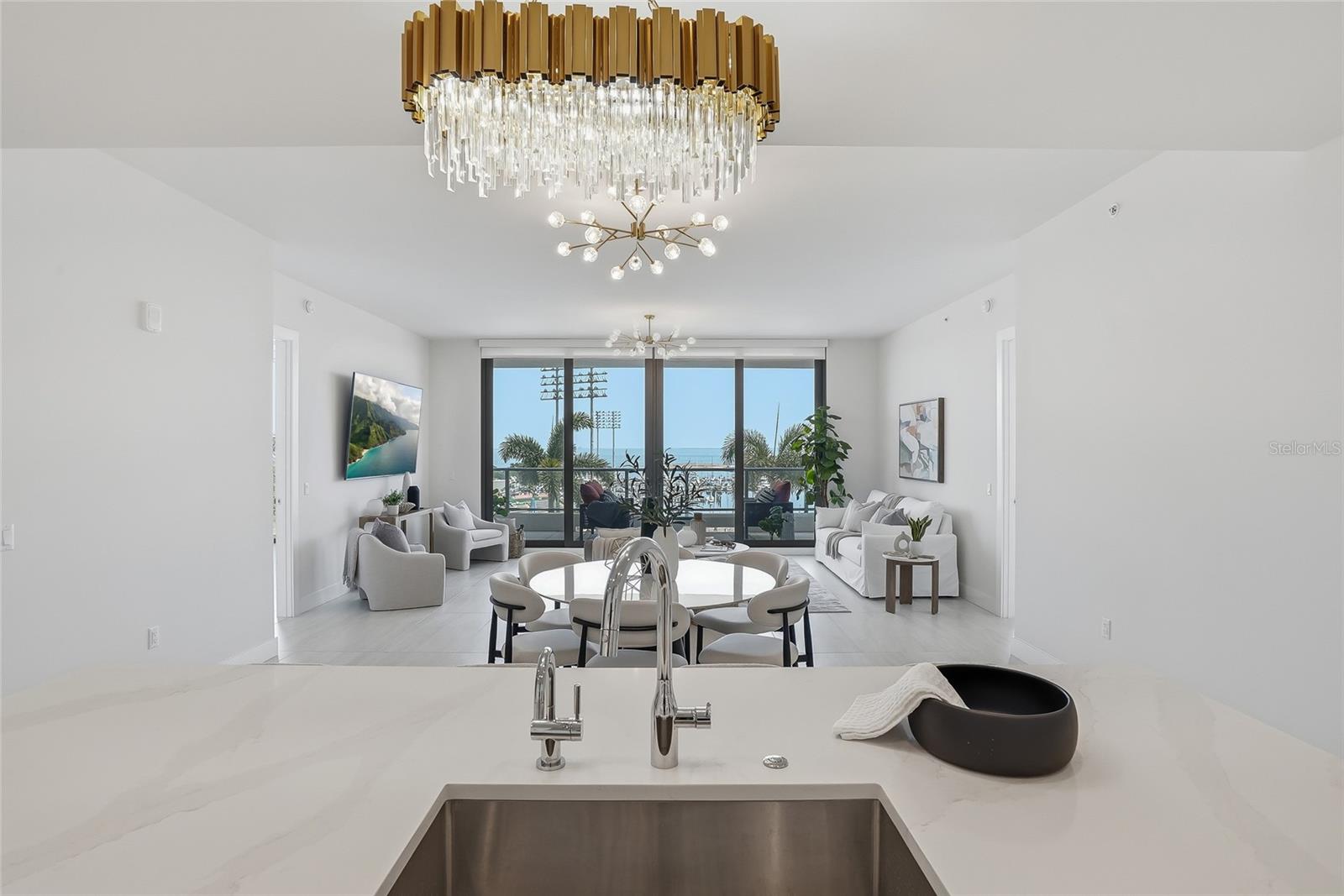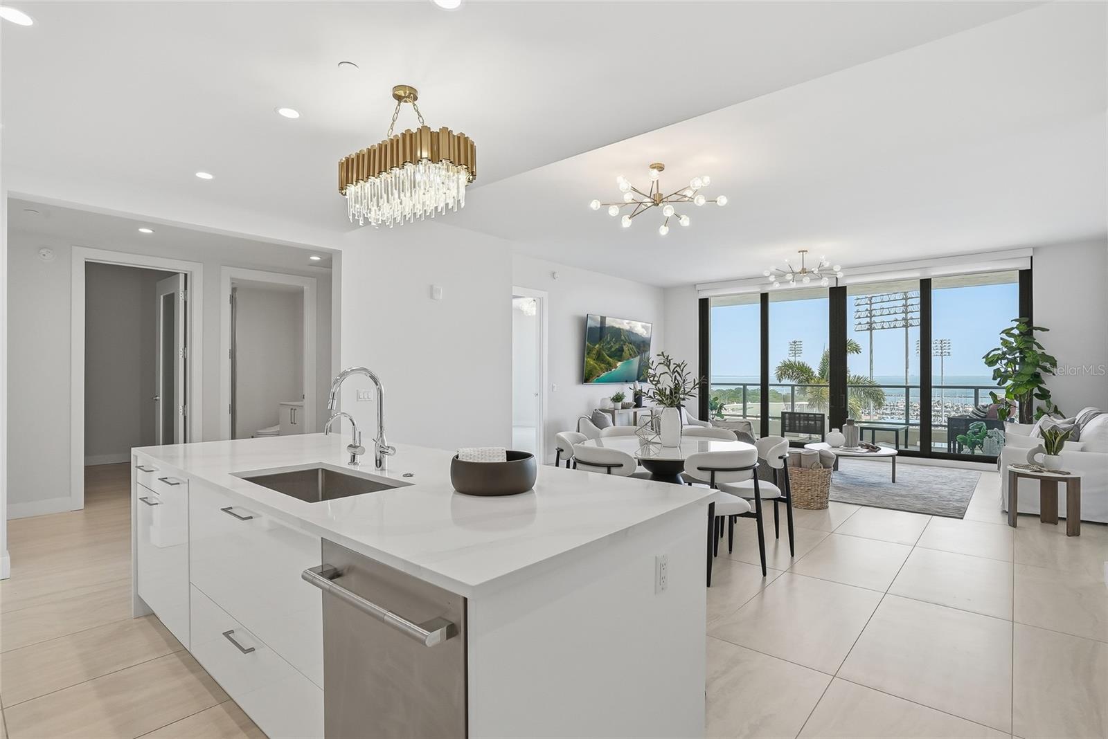 Uma ou mais fotos foram virtualmente encenadas. Bem-vindo ao Saltaire Residence #802, onde vistas deslumbrantes da água e da cidade criam um cenário inesquecível para a vida cotidiana. Perfeitamente posicionada no coração do centro de São Petersburgo, esta residência lindamente projetada de 2 quartos e 3 banheiros com salão oferece uma mistura perfeita de elegância moderna, conforto e a energia vibrante da vida na cidade à beira-mar. O vidro do chão ao teto atrai uma bela luz natural enquanto emoldura vistas deslumbrantes, e o terraço privativo convida você a relaxar acima de tudo com o café da manhã, o pôr do sol e o brilho do centro da cidade abaixo. No interior, a casa apresenta um layout aberto e luminoso, com tetos altos e um design contemporâneo sofisticado. A cozinha gourmet é impressionante e funcional, equipada com eletrodomésticos de aço inoxidável JennAir, incluindo uma geladeira embutida de 42 polegadas, micro-ondas/forno de convecção, fogão de indução e exaustor de aço inoxidável, além de armários europeus importados e elegantes bancadas de quartzo. Atualizações cuidadosas em toda a residência elevam a experiência de vida, incluindo sistemas California Closet, persianas automáticas com carregadores solares, lavatórios Toto, aquecedores de toalhas e uma lavadora e secadora de tamanho normal com carregamento frontal. A sala adiciona flexibilidade para um escritório privado, sala de mídia ou espaço elegante para hóspedes. O nível de comodidades exclusivo do Saltaire oferece um verdadeiro estilo de vida inspirado em resort com piscina e spa Whirlpool, cabanas, fogueiras, áreas de lounge, academia de ginástica, sala social com copa e parque para cães, tudo complementado por serviço de concierge, acesso controlado e segurança 24 horas por dia, 7 dias por semana. Do lado de fora da sua porta, aproveite o que há de melhor no centro de São Petersburgo: parques à beira-mar, o St. Pete Pier, marinas, restaurantes aclamados, boutiques, museus, locais de artes, o Estádio Al Lang e o adorado Mercado de Sábado de Manhã. A residência #802 é mais que uma casa; é um estilo de vida definido pelo luxo, pela facilidade de caminhar e pela beleza de viver no centro de tudo.