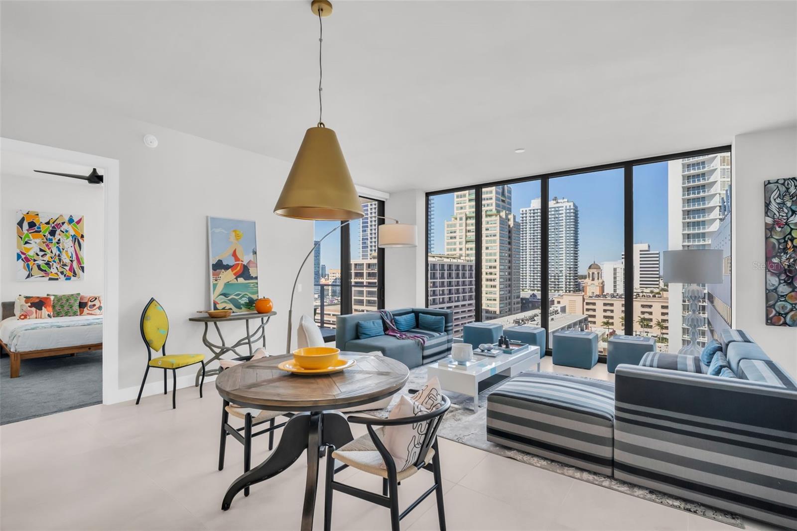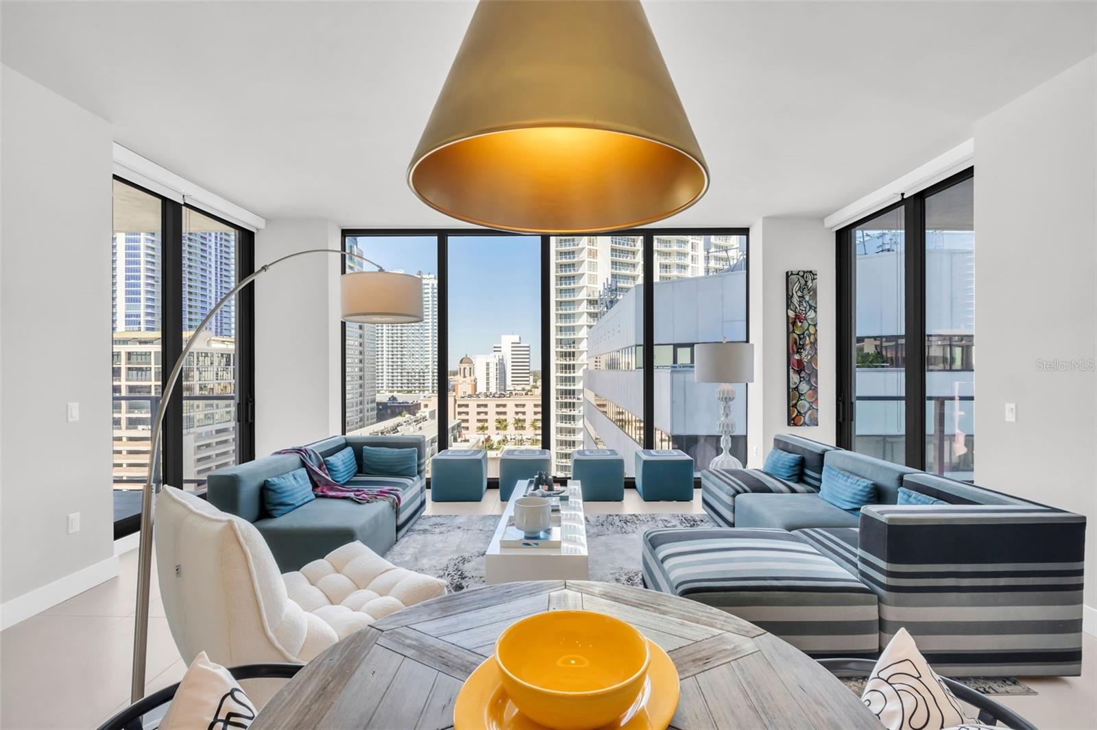 Vistas deslumbrantes para o mar são o centro das atenções nesta sofisticada residência Saltaire no 14º andar, onde o vidro do chão ao teto emoldura um horizonte em constante mudança. Com 2.036 pés quadrados de área de estar cuidadosamente projetada, este layout de 2 quartos, 3 banheiros + sala combina polimento arquitetônico com funcionalidade fácil - ideal para uma vida luxuosa na cidade. A grande sala aberta é ancorada por piso de porcelanato em todas as principais áreas de estar e banheiros, criando uma estética elegante e coesa. Os tratamentos elétricos automatizados das janelas oferecem controle instantâneo sobre a luz e a privacidade, enquanto os vidros amplos mantêm a vista da água e do horizonte na frente e no centro. A cozinha faz uma declaração refinada com um pacote completo de eletrodomésticos de aço inoxidável JennAir, complementado por uma geladeira com porta francesa perfeita e pronta para painel que se integra perfeitamente aos armários para uma aparência simplificada. Projetadas para estender a vida além do interior, duas varandas privadas são acessíveis a partir da sala de estar, da suíte principal e do segundo quarto, oferecendo vistas da primeira fila da Baía de Tampa durante o dia e do horizonte iluminado da cidade à noite. A suíte principal é um retiro privado com closets duplos e uma banheira de spa com banheira de imersão grande. Uma suíte de hóspedes de tamanho generoso com closet próprio garante conforto e privacidade, enquanto o escritório dedicado adiciona flexibilidade para um escritório doméstico ou espaço de mídia. Esta residência inclui duas vagas de estacionamento seguras e uma arrecadação adjacente, agregando comodidade e valor em uma das torres mais procuradas do centro da cidade. Como residente de Saltaire, aproveite o acesso a comodidades de classe mundial, incluindo serviços de concierge, uma academia de ginástica de última geração e um espetacular deck de comodidades que oferece algumas das vistas mais deslumbrantes da cidade. Perfeitamente posicionado no coração do centro de São Petersburgo, você está a poucos minutos de restaurantes aclamados, locais culturais vibrantes, parques à beira-mar e toda a energia que define a vida urbana luxuosa. Uma rara oportunidade de possuir uma residência de design altíssimo que combina perfeitamente a beleza da beira-mar com a emoção do centro de St. Pete.