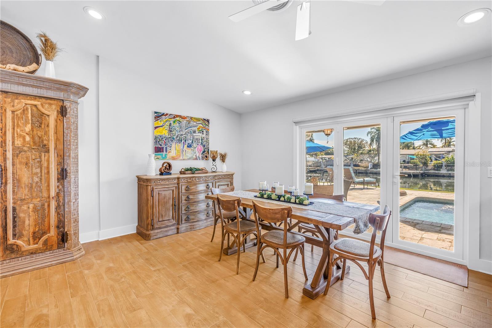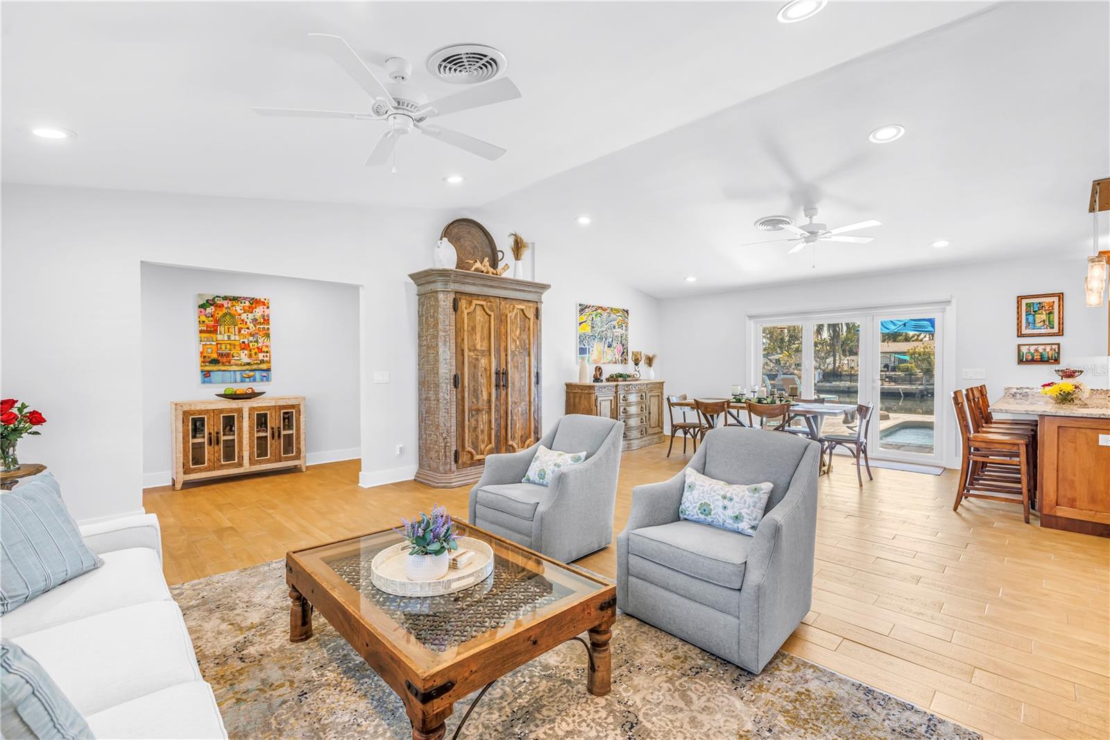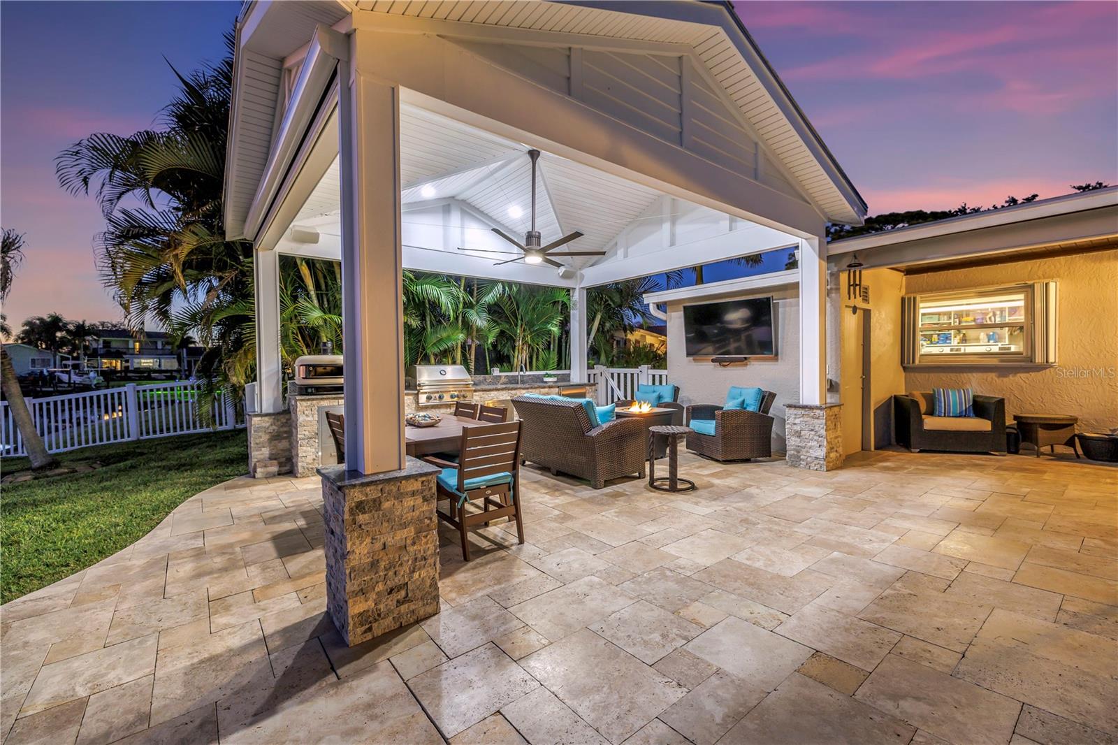 Escondida em um beco sem saída tranquilo, esta residência excepcional à beira-mar oferece 125 pés de fachada e possui quatro quartos e três banheiros completos, combinando conforto, funcionalidade e atualizações atenciosas por toda parte. Os tetos abobadados melhoram a sensação de abertura e arejamento, complementados por piso de cerâmica e ventiladores de teto em toda a casa. Persianas também são encontradas por toda parte e são combinadas com persianas retráteis automatizadas na sala de jantar, cozinha e cozinha externa. A espaçosa cozinha do chef foi projetada para ser tão prática quanto convidativa, com bancadas de granito, fogão Thermador a gás natural, armários de bordo personalizados com gavetas extraíveis e um armário de despensa completo, e eletrodomésticos mais recentes de aço inoxidável, incluindo uma máquina de lavar louça Miele, geladeira LG, gaveta de aquecimento Wolf, forno de parede de convecção embutido Dacor e micro-ondas, exaustor Zephyr e refrigerador de vinho. A conveniente janela de passagem da cozinha também emoldura uma vista serena e tranquila. As portas duplas de impacto Origin abrem-se totalmente a partir da sala de jantar para criar uma experiência de vida interna e externa perfeita. Ao sair, você descobre onde esta casa realmente se distingue, com uma piscina Gunite de água salgada, spa elevado com cascata, aquecedor de spa mais recente e motor de bomba de piscina, e uma varanda coberta com teto de madeira. O amplo quintal privado é ancorado por uma impressionante cozinha ao ar livre situada sob um gazebo de quatro águas com telhado inclinado, teto com contas de vinil e ventilador de grandes dimensões. A cozinha externa possui 14 pés de armários de concreto com folheado de pedra elegante e oferece armazenamento de aço inoxidável, bancadas de granito, uma churrasqueira a gás natural TrueFlame de 32 "de quatro bocas com queimador lateral, forno de pizza a gás natural Gozney, geladeira para uso externo, lixo removível e reciclagem e pia de aço inoxidável. Os alto-falantes Sonos são montados na cozinha externa, área da piscina e pátio com amplificadores separados e controle de volume personalizado. Este espaço foi projetado para entretenimento sem esforço enquanto aproveita a vida na água - desde tardes casuais para reuniões noturnas sob as luzes. Todos os banheiros foram atualizados com armários personalizados, bancadas em granito e quartzo na banheira da piscina, com pias duplas nos banheiros principal e de hóspedes. Janelas de furacão PGT com classificação de impacto foram instaladas na sala de estar, na sala de estar e no quarto principal, junto com as portas sanfonadas de impacto Origin na sala de jantar, uma porta de banho de piscina de impacto, uma porta frontal de impacto de furacão, venezianas nas janelas restantes e comportas Dam Easy para todas as aberturas de portas externas, incluindo garagem. A ampla garagem para dois carros inclui ar condicionado split, sótão isolado e piso revestido de epóxi, enquanto a lavanderia possui armários embutidos sob medida com estantes abertas. Outras melhorias recentes incluem pavimentos de entrada de automóveis mais novos, uma varanda frontal atualizada com novos azulejos e novas portas e acabamentos em toda a casa. Recursos externos adicionais incluem ventiladores externos mais novos, TV montada na parede, sistema de alarme Ring, armário de piscina e dois galpões de armazenamento Wally Watt. Cuidadosamente atualizada, bem conservada e idealmente localizada a poucos minutos do centro de São Petersburgo, esta residência à beira-mar oferece uma excelente oportunidade para desfrutar do melhor espaço, estilo e vida ao ar livre!