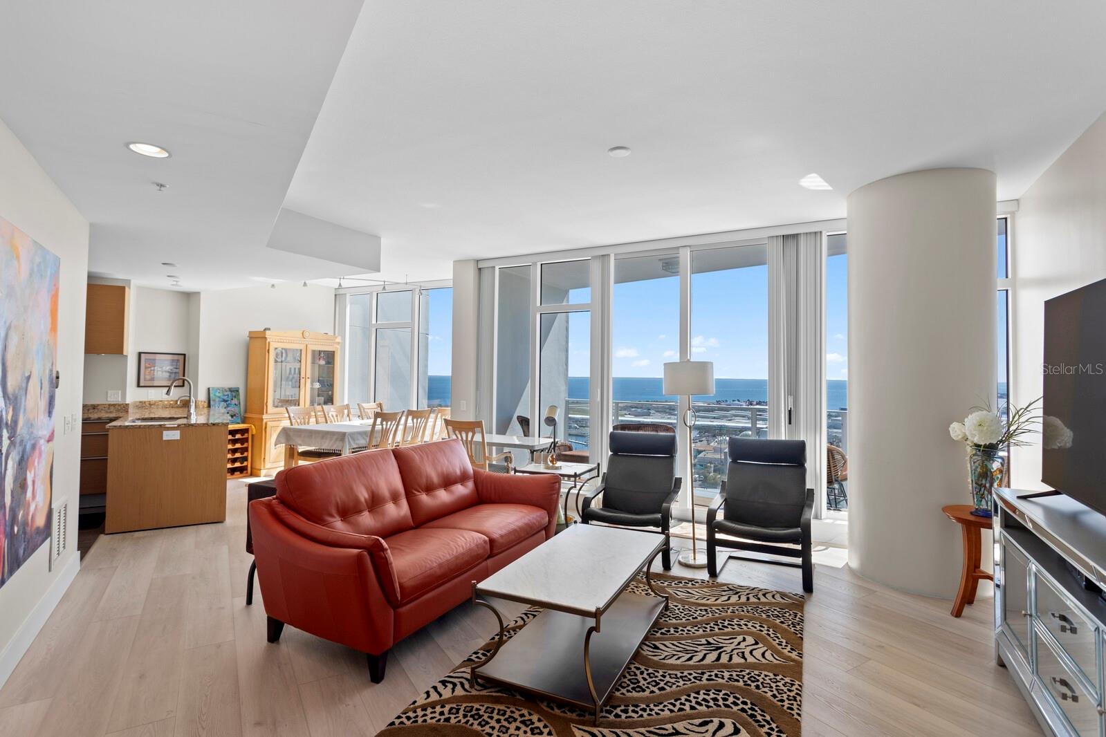 Situada no 21º andar, esta luxuosa residência no Signature Place oferece vistas panorâmicas espetaculares da Baía de Tampa e do centro de São Petersburgo. Aproveite seu café da manhã enquanto observa os aviões decolando e pousando no Aeroporto Albert Whitted, com vistas deslumbrantes adicionais do Estádio Al Lang, da marina e das águas cristalinas da Baía de Tampa, criando um cenário dinâmico e em constante mudança. Esta residência de dois quartos e dois banheiros apresenta um layout de conceito aberto envolto em janelas do chão ao teto, preenchendo a casa com luz natural e criando um fluxo contínuo entre as áreas de estar, jantar e cozinha. O interior apresenta luxuoso piso de pranchas de vinil COREtec em todas as principais áreas de estar, com piso de cerâmica na cozinha, banheiros, hall de entrada e lavanderia. A cozinha moderna está lindamente decorada com finos armários europeus, bancadas de granito e eletrodomésticos de aço inoxidável premium, perfeitos para a vida cotidiana e entretenimento. Os banheiros inspirados em spa oferecem box de vidro sem moldura e acabamentos elegantes e contemporâneos. Para maior tranquilidade e eficiência, a casa está equipada com um sistema de ar condicionado e aquecimento de última geração, bem como um novo esquentador. O Signature Place aprimora o estilo de vida com comodidades em estilo resort, incluindo piscina aquecida e spa, paisagismo tropical exuberante, churrasqueira ao ar livre, academia e recepção 24 horas. As elegantes salas sociais oferecem amplo espaço para reuniões e dispõem de cozinhas, áreas de bar, televisões de tela plana e sala de mídia. Os destaques adicionais incluem dois lugares de estacionamento seguros e uma unidade de armazenamento interior climatizada, proporcionando comodidade e tranquilidade. O Urban Plaza no nível da rua do Signature Place cria um oásis semelhante a um parque no coração da cidade, completo com áreas de jantar sombreadas, um espaço inclinado para observação do gramado e uma impressionante cachoeira de seis andares, oferecendo um refúgio tranquilo no vibrante ambiente do centro da cidade. Idealmente localizada no coração do centro de São Petersburgo, esta residência coloca você a poucos passos dos melhores restaurantes, lojas, parques à beira-mar e atrações culturais. Caminhe até Publix, CVS e Sundial e desfrute da proximidade da Universidade do Sul da Flórida, do Aeroporto Albert Whitted, do Bayfront Hospital e do Johns Hopkins All Children’s Hospital. São Petersburgo é conhecida por seu clima ensolarado e estilo de vida ativo à beira-mar, tornando-a ideal para passeios de barco, pesca, golfe e praia, enquanto pontos de referência próximos, como o Museu Dali, o Museu de Belas Artes e o Teatro Mahaffey, enriquecem a vibrante cena artística da cidade.