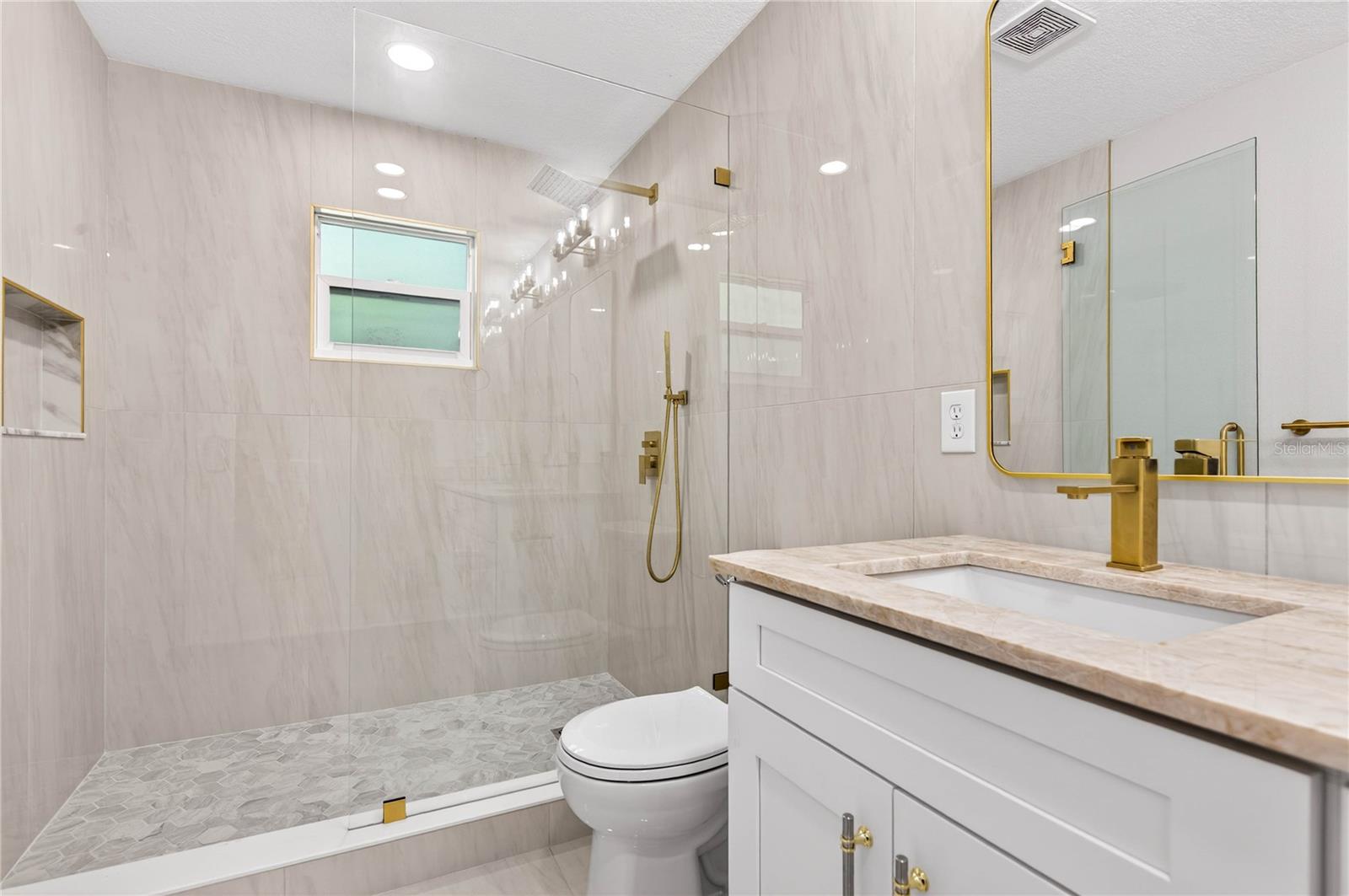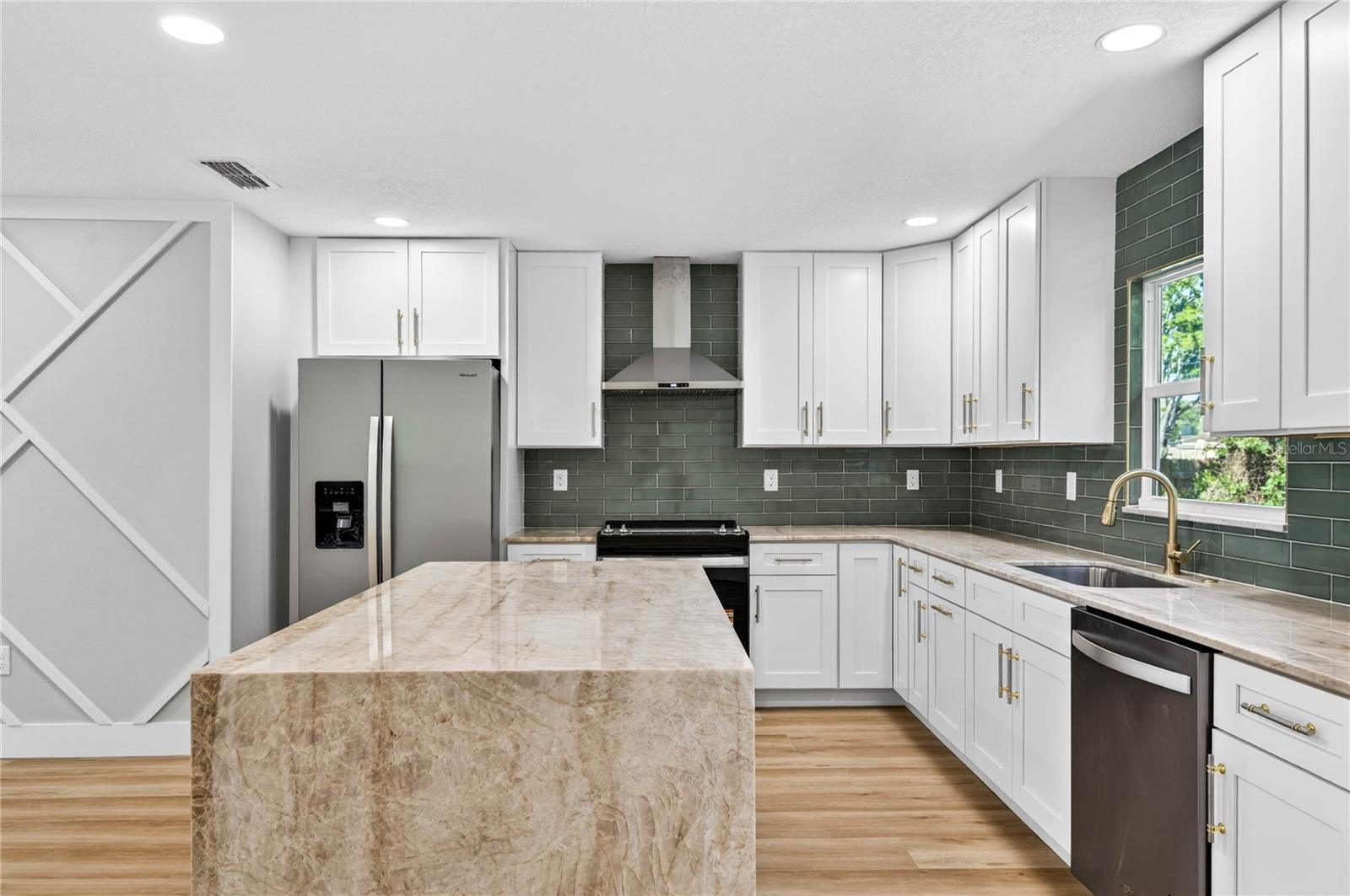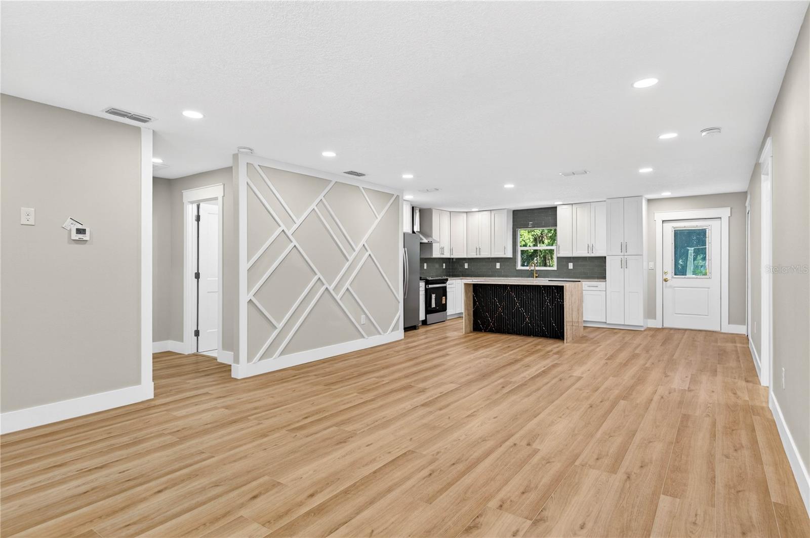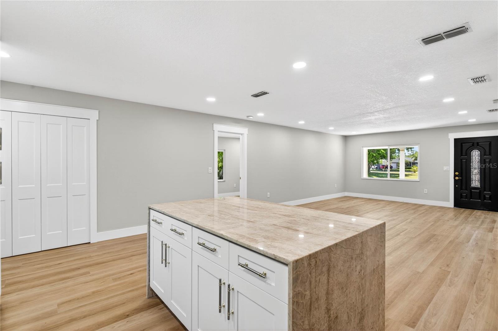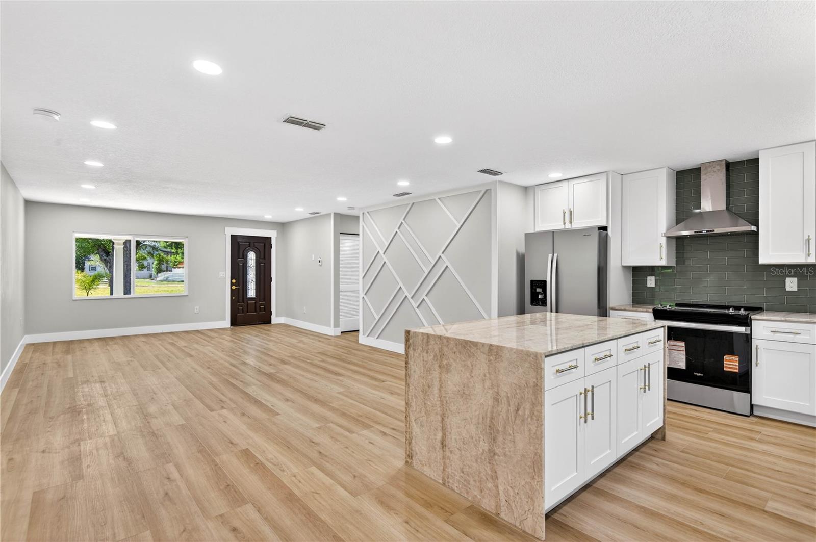Casa totalmente renovada com 3 quartos e 2 banheiros em Kenwood, St. Pete - Cozinha em conceito aberto, área de estar e jantar ideal para entretenimento. A cozinha totalmente nova apresenta bancadas de quartzito Taj Mahal, backsplash elegante, armários novos e eletrodomésticos de aço inoxidável. Suíte principal espaçosa com closet e banheiro privativo com pia dupla. As principais atualizações incluem novo telhado, novo A/C, janelas de impacto, novo aquecedor de água, novo painel elétrico e religação completa, novo estuque e nova pintura interna/externa. Nenhuma despesa poupada - completamente pronto para morar