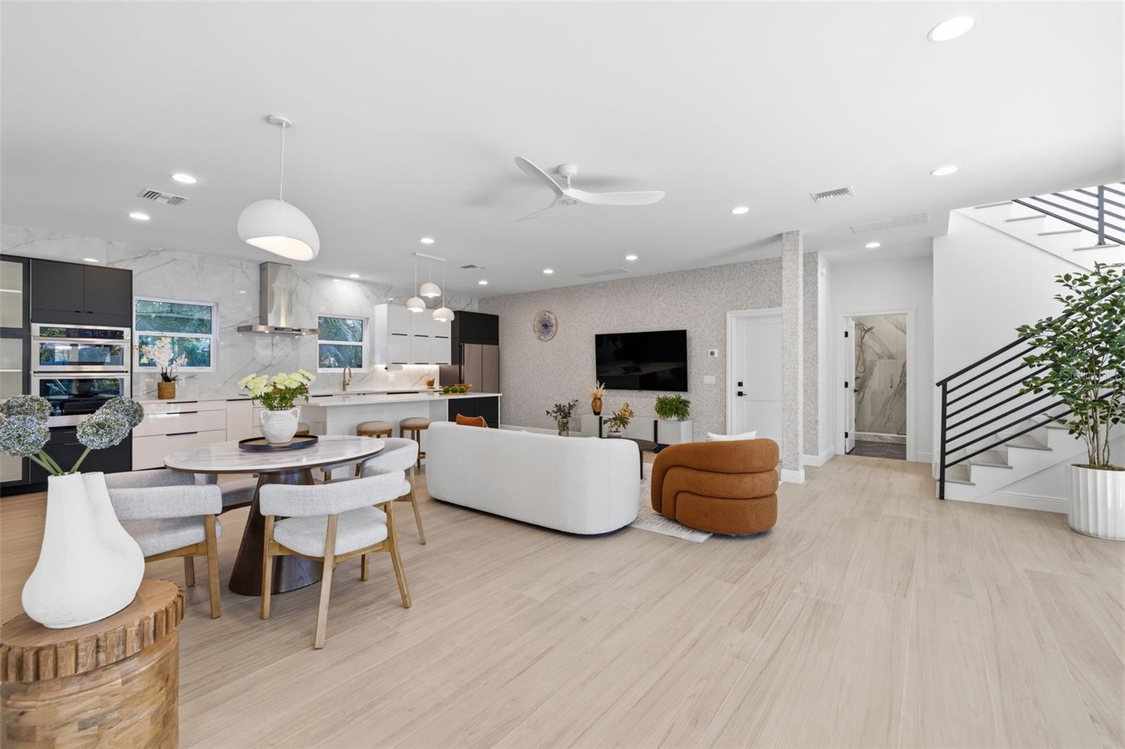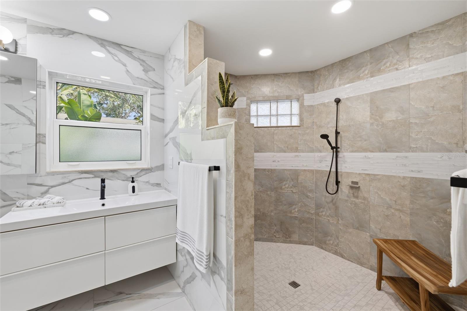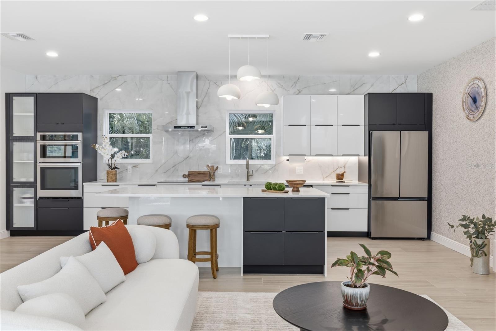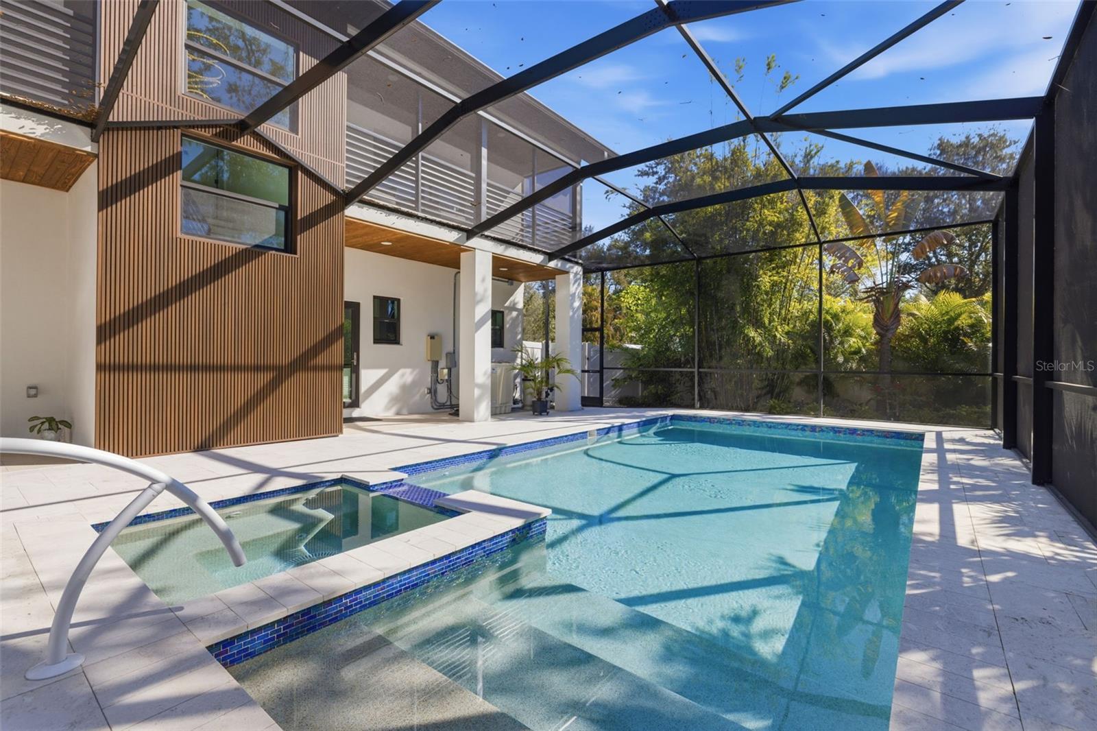 Você não encontrou o paraíso até entrar na 639 43rd Avenue North, em São Petersburgo. Localizada no tranquilo e cobiçado bairro de Allendale Terrace, a apenas cinco minutos do vibrante centro de São Petersburgo e a apenas 15 minutos das praias, esta extraordinária propriedade multigeracional oferece luxo, privacidade e design atencioso por toda parte. A casa original foi totalmente remodelada em 2021, combinando um carácter intemporal com uma elegância moderna. Ao chegar pela encantadora passarela circular e entrar na residência original, você será recebido em uma cozinha espaçosa e totalmente atualizada e uma sala de estar projetada para conforto e entretenimento. Dois quartos estão posicionados à direita, ideais para hóspedes ou familiares. Além da cozinha fica uma lavanderia enorme e, em frente a ela, um retiro principal deslumbrante com um banheiro totalmente remodelado com azulejos personalizados e um quarto enorme com área de estar privativa - um refúgio tranquilo dentro de casa. A casa original e a nova adição são conectadas por uma passagem fechada com portas francesas que fornecem entradas para os lados norte e sul da propriedade. Passando pela passagem aberta, você entra na nova adição de 2.821 pés quadrados concluída em agosto de 2024. Este espaço parece uma casa totalmente nova com uma linda cozinha moderna dentro de uma impressionante sala de 820 pés quadrados, perfeita para reuniões de entretenimento de qualquer tamanho. Grandes portas de vidro deslizantes com vários painéis abrem para a varanda de 1.500 pés quadrados e para a área da piscina. A piscina e a varanda em estilo oásis, concluídas em setembro de 2024, criam uma experiência de resort em seu próprio quintal. A piscina aquecida de 30 pés por 14 pés é acentuada com azulejos azuis iridescentes e complementada por uma área de banheira de hidromassagem separada, cercada por uma exuberante paisagem tropical, palmeiras e carvalhos maduros que oferecem privacidade e serenidade. Uma impressionante escadaria com lustre contemporâneo e grade de metal leva ao andar de cima para uma planta dividida cuidadosamente projetada com duas amplas suítes master posicionadas em lados opostos para máxima privacidade. Cada suíte tem aproximadamente 650 pés quadrados e inclui um quarto grande, espaço adicional ideal para um escritório ou lounge, banheiro completo com azulejos personalizados, amplo closet e varanda com tela - perfeita para café da manhã ou coquetéis à noite. No total, a casa oferece 4.518 pés quadrados de espaço com ar condicionado, cinco quartos, três dos quais são verdadeiras suítes master, cinco banheiros completos com azulejos personalizados e duas cozinhas completas – ideal para uma vida multigeracional, mantendo a privacidade. Existem duas lavanderias, incluindo uma com lavadora e secadora de grandes dimensões para maior comodidade. A qualidade da água é mantida por um sistema de filtragem de água e osmose reversa. A casa também possui uma grande garagem anexa para dois carros com piso de epóxi com padrão “aveia” e um galpão de jardim separado para armazenamento adicional. Situada em um lote duplo totalizando 12.197 pés quadrados, a propriedade é cercada por uma exuberante paisagem tropical e uma cerca com fechadura para privacidade e segurança. Um sistema de irrigação Rain Bird de sete zonas com um poço profundo no local mantém o terreno durante todo o ano. Toda a casa recebeu um telhado totalmente novo em janeiro de 2024, e todas as janelas e portas externas são resistentes a tempestades e estão em conformidade com o código. Não é necessário seguro contra inundações, pois a propriedade está localizada em uma zona de risco mínimo de inundação. Isto é mais do que apenas uma casa – é um complexo privado projetado com visão e estilo. Com espaço, sofisticação e localização trabalhando em harmonia