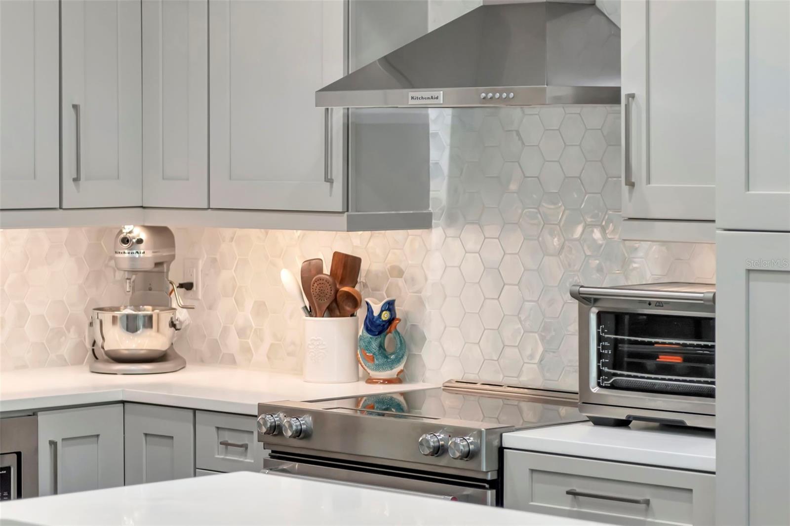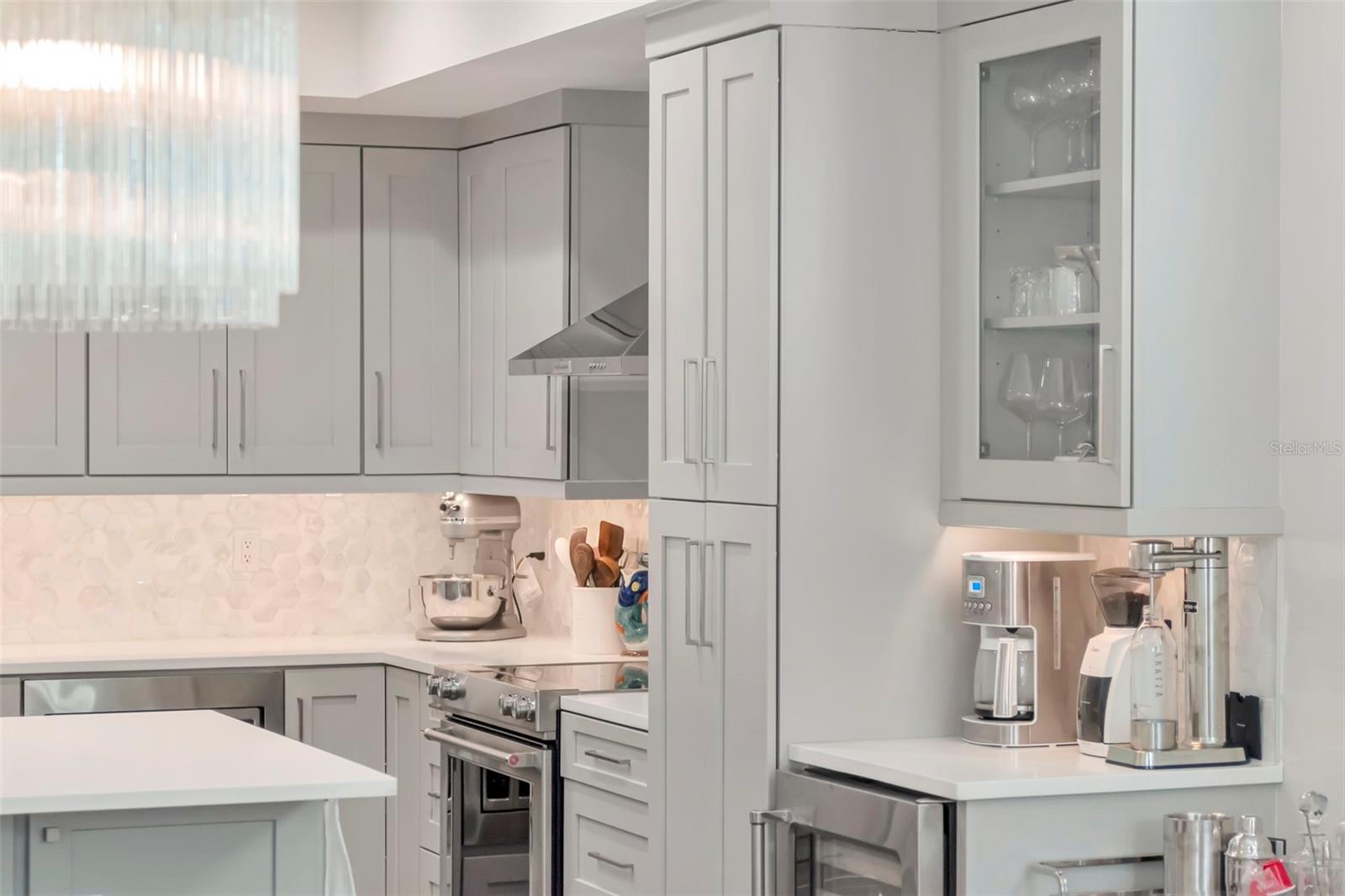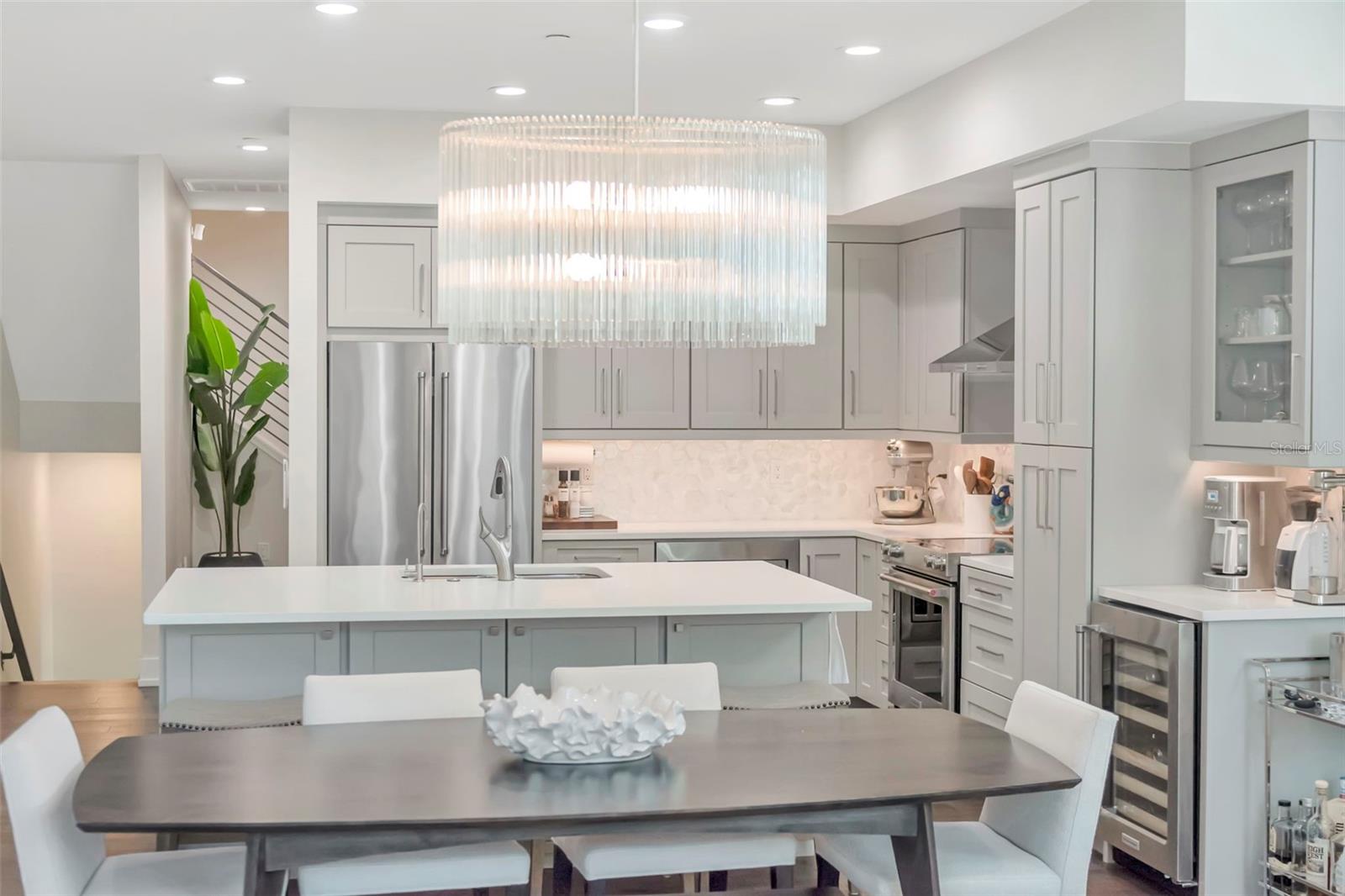 Geladeira, forno de convecção, máquina de lavar louça, descarte, secadora, exaustor, freezer, máquina de fazer gelo, sistema de osmose reversa de cozinha, micro-ondas, fogão, exaustor, geladeira, torneira sem toque, lavadora